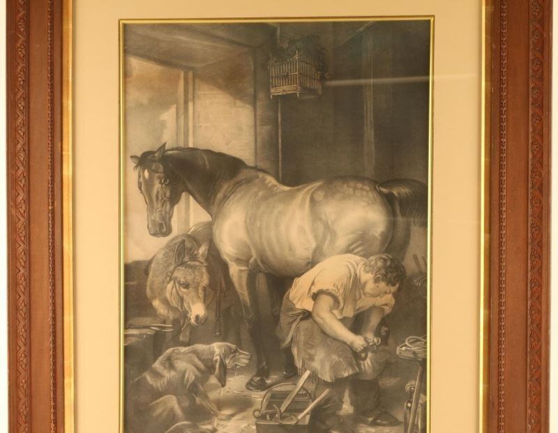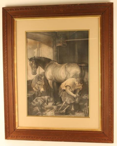 Depicting a Farrier Shoeing A Horse, Measures 22"x15" In Period Frame.