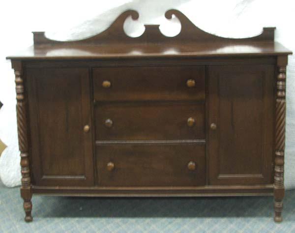 Antique Mahogany Buffet. MUST BE PICKED UP 3 drawers and 2 side cabinets. Measures approx. 38 1/4''H x 60''L x 21''D. MUST BE PICKED UP! Matches lot # 1499A the China Cabinet.