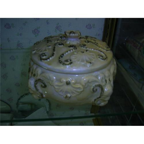 <tr><td>Title:Antique Majloica Covered Soap Box</td></tr>