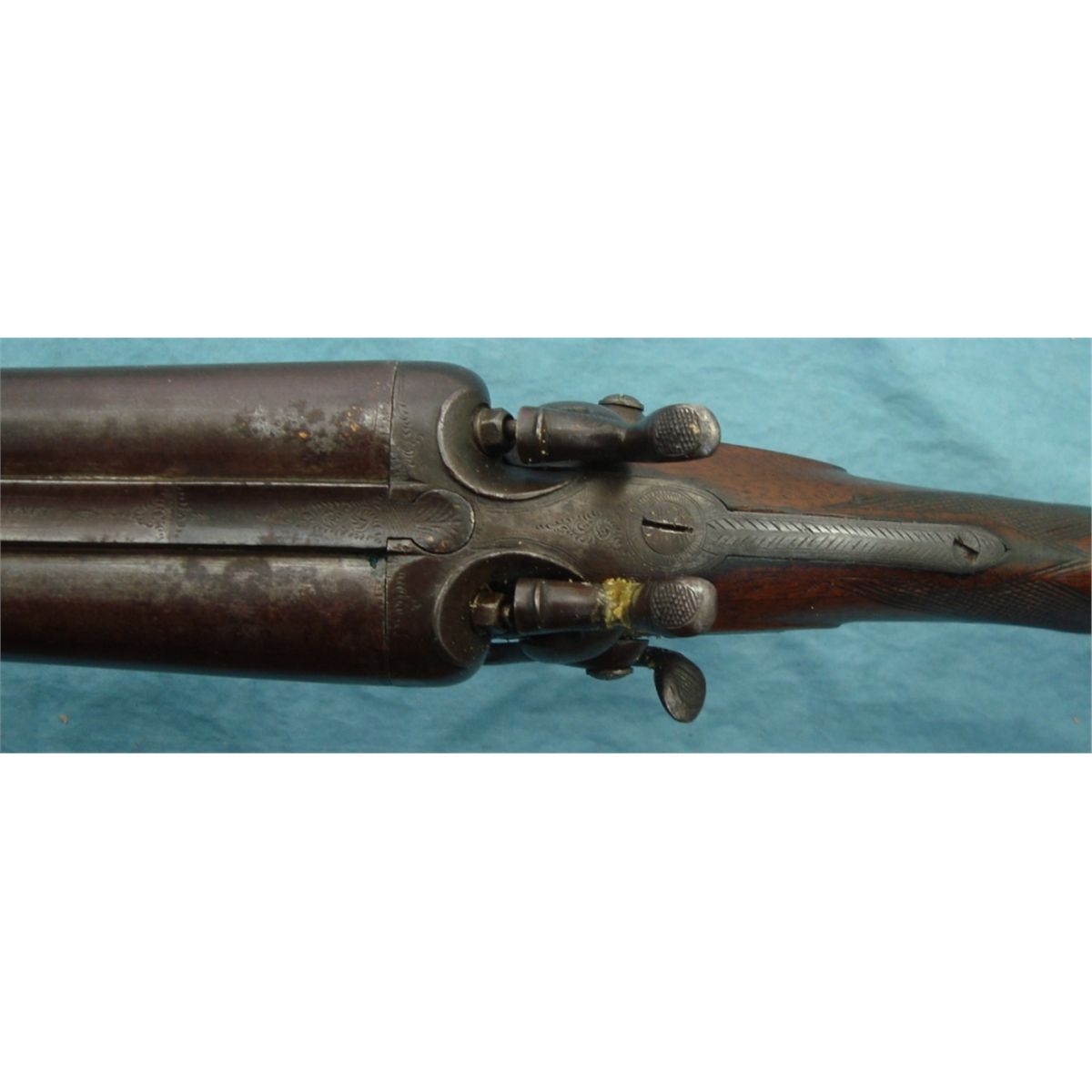 #2901; Antique. 10 ga. w/32" bbls. Side lever spring is broken. Otherwise gun is in good overall condition.