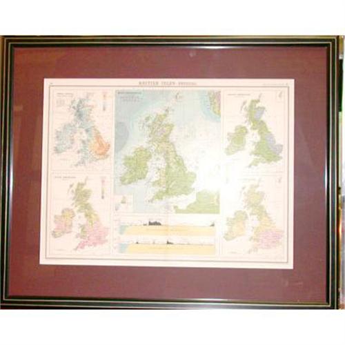 Beautiful color vintage map from the 1890's. From the "Citizen's Atlas" This is a physical map of the British Isles Circa 1890's. The Map is credited to John Batholomew & Sons, Ltd using information provided by The Endinburg Geographical Institute. Map is 13" x 17" and frame is 19.5" 23". Map is in excellent shape with only a minor crease down the middle which in no way detracts from the beauty of this map. Framed and matted on acid free paper under glass. Appraisal priced at $475.00.
