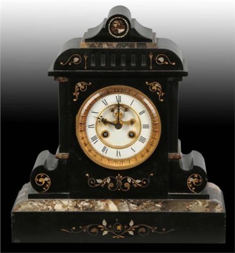 Description Marble with inlay work. Key and pendulum are not included. Condition (Excellent). Size 13" T.