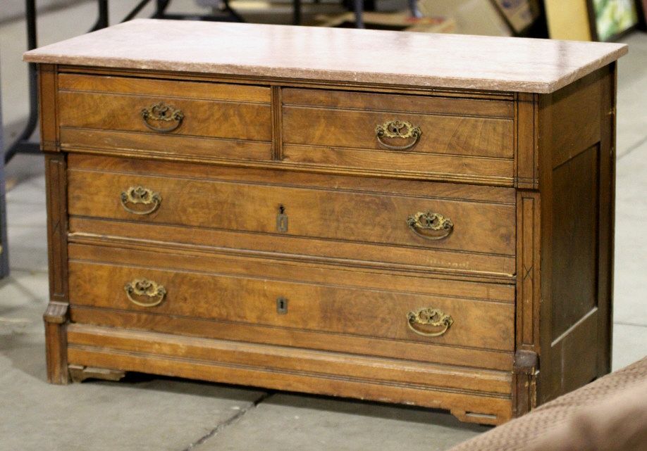 Antique Marble Top Maple Dresser Measures 20.5"dx29"h46"w.