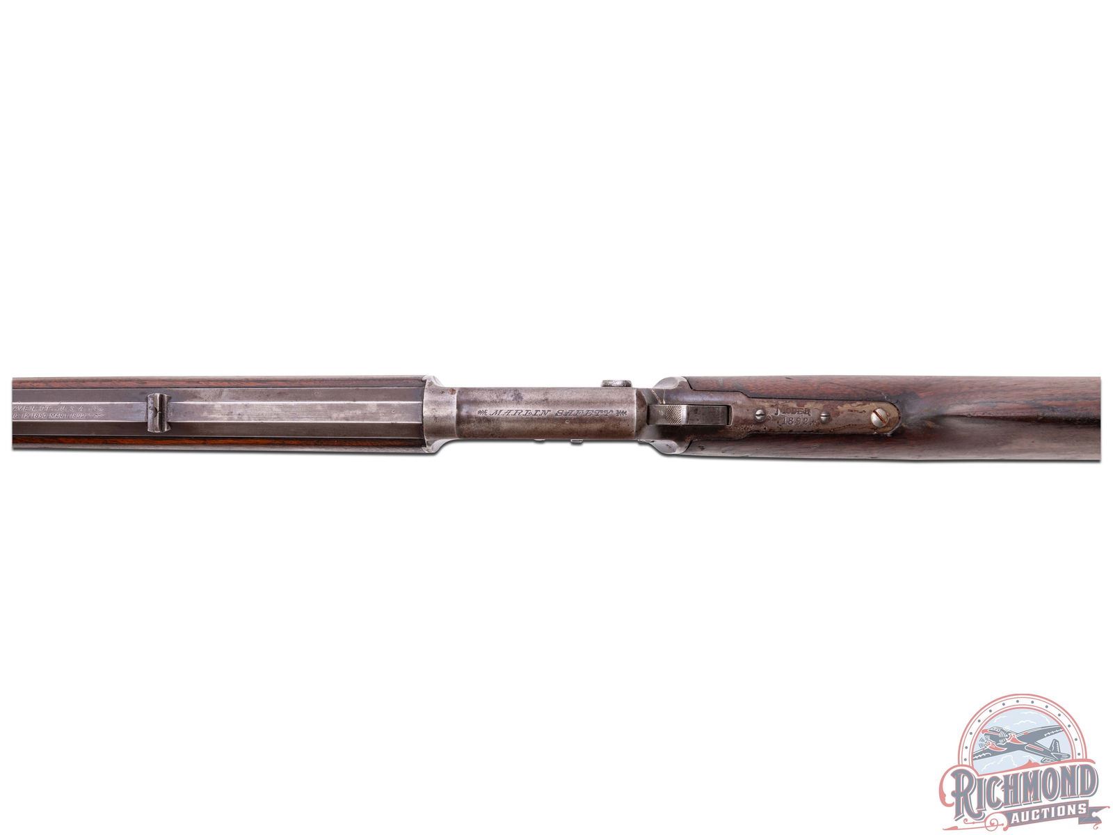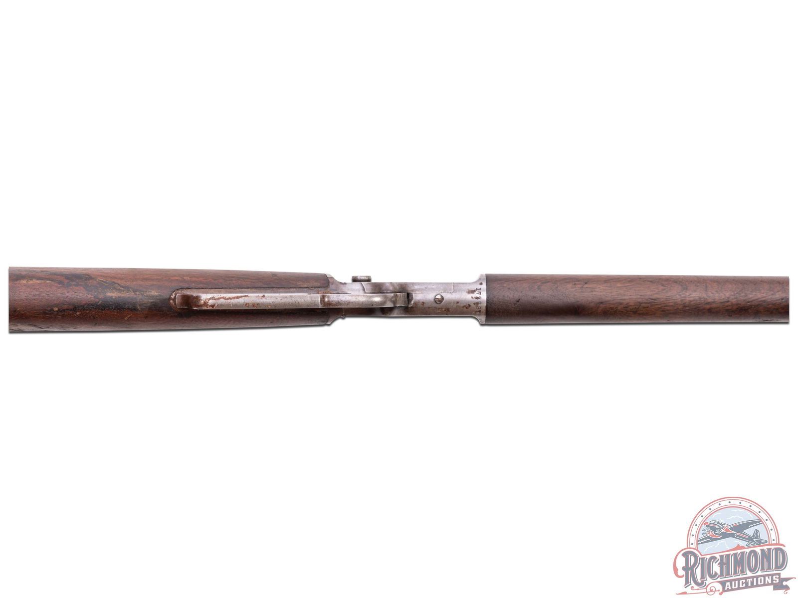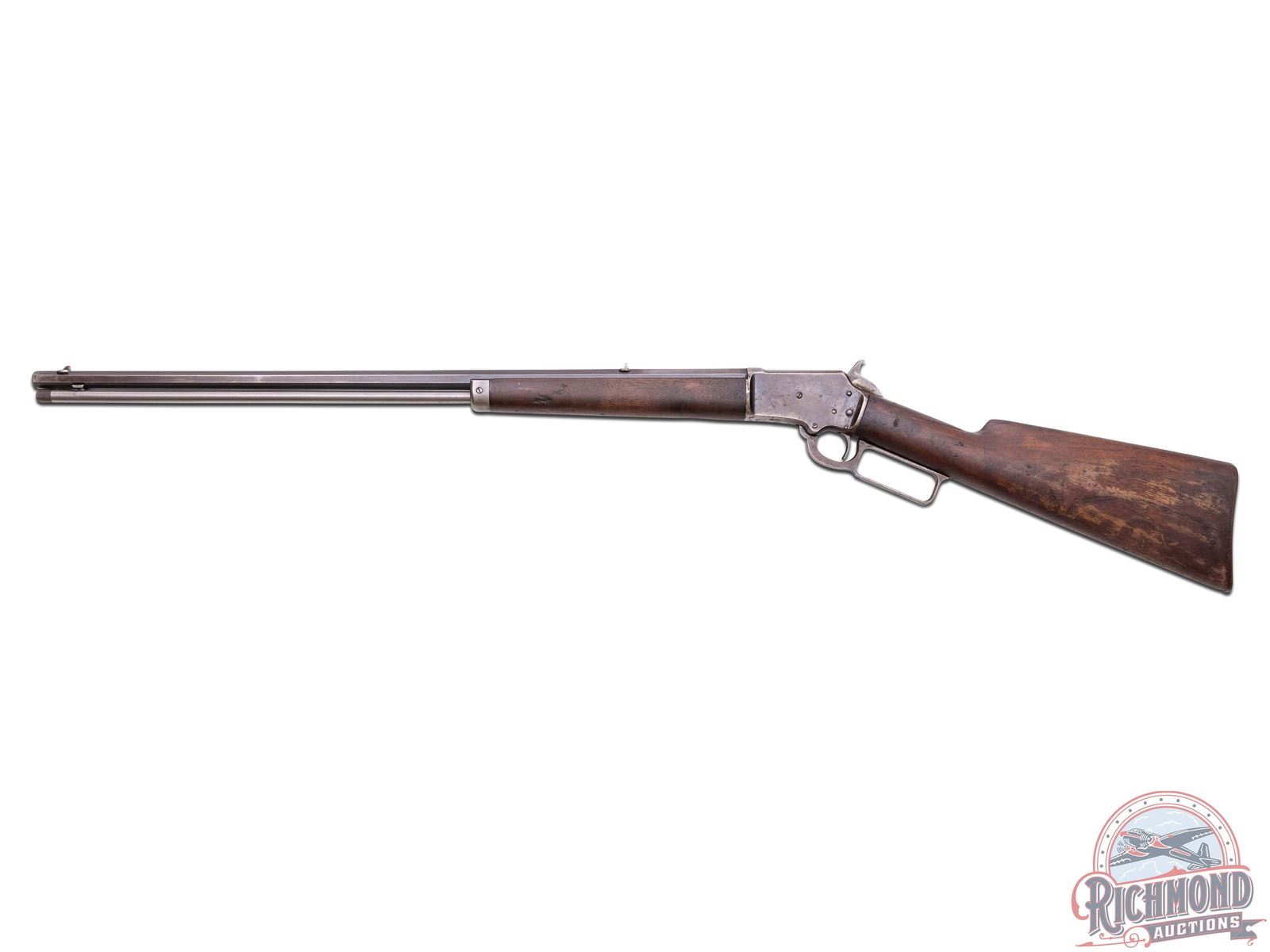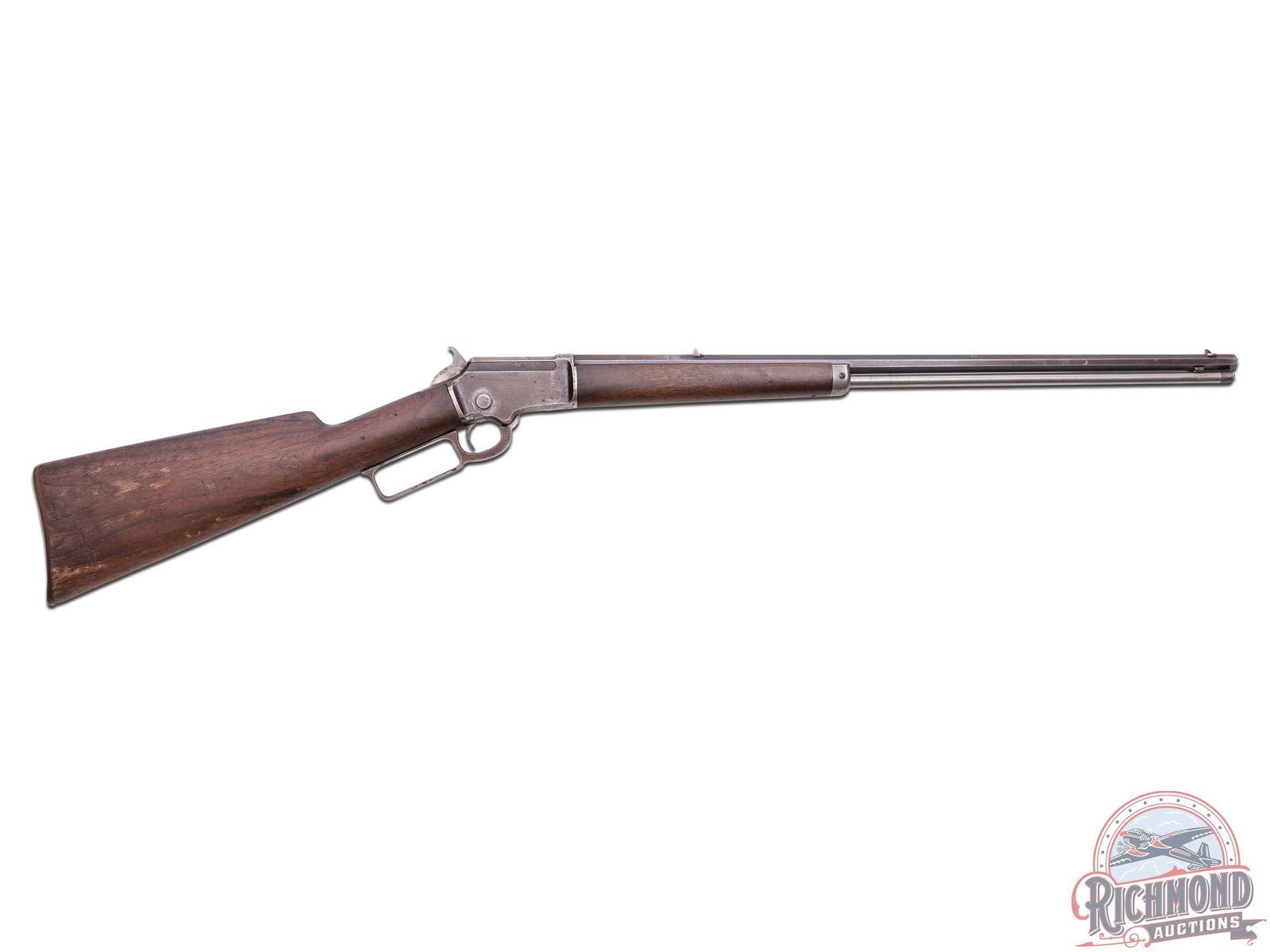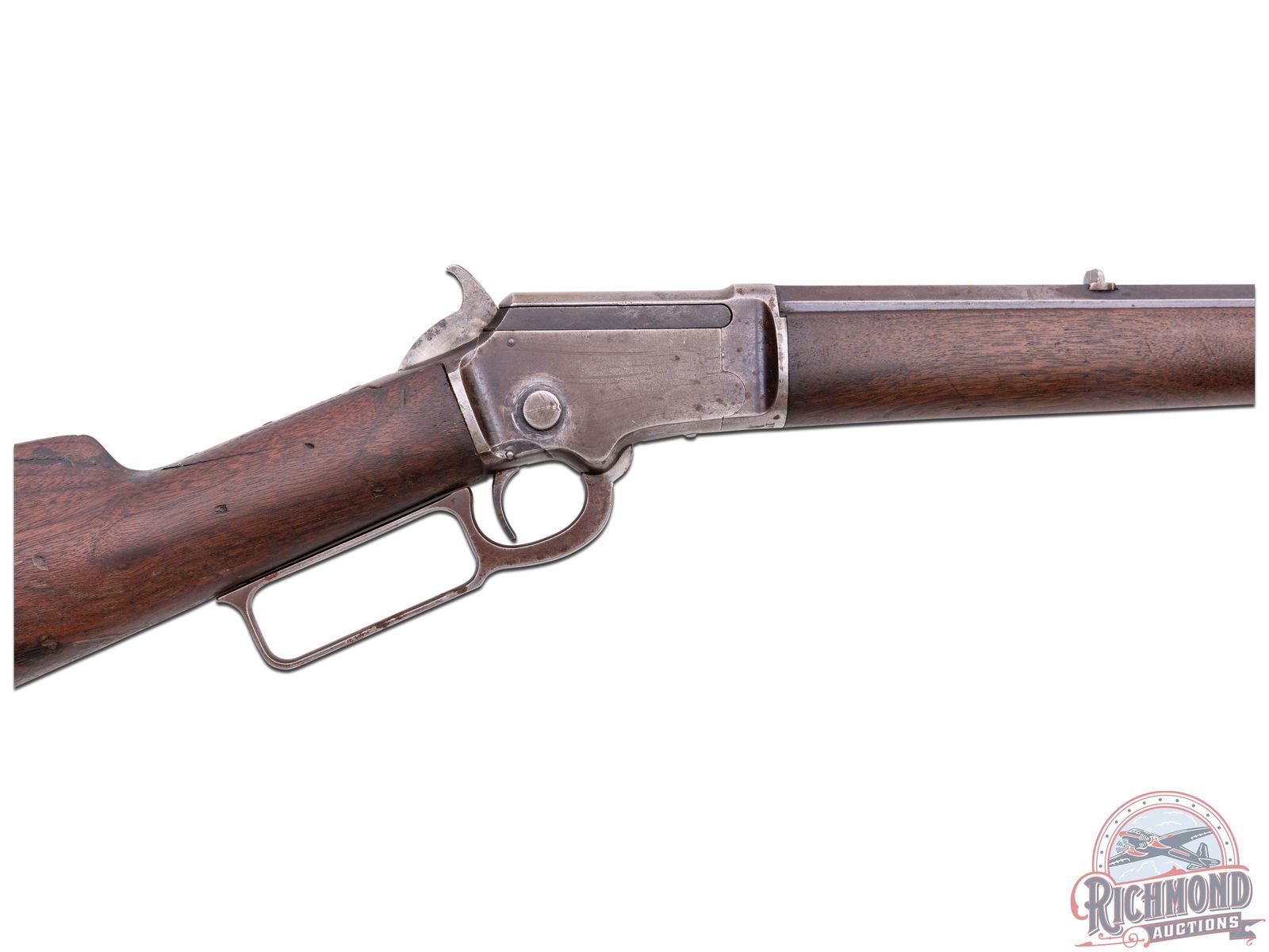 Made by Marlin Firearms Company in 1898 with a serial number of 172887. Made until the onset of the Model 1897 in 22 Rimfire. 24" blued octagon 22 caliber barrel with rifle sights and Marlin two-line address. Case-hardened takedown frame with plain trigger full blued tubular magazine, "Model 1892" tang marking and top of receiver marked "Marlin Safety". Standard plain walnut stocks with Marlin hard rubber butt plate. CALIBER: 22 Rimfire. S/N: 172887. FFL STATUS: Antique.