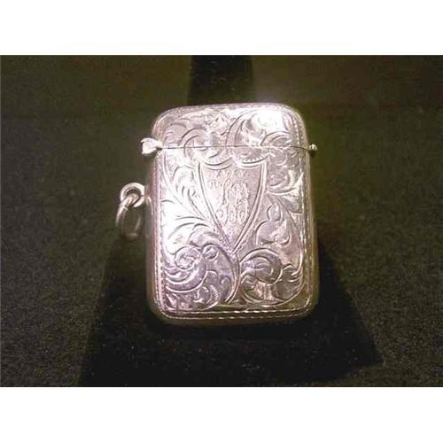 </font></strong>Here we have a wonderful Antique Match Safe. It is Sterling Silver with beautiful etched filagree engravings on both sides. The front has initials and the date 1913. On the inside lip are the artists marks. The bottom of the safe is the striker. The condition is mint. It can also be worn around the neck with chain. The safe measures 1 3/4 inches high and 1 1/4 inches wide.</font>