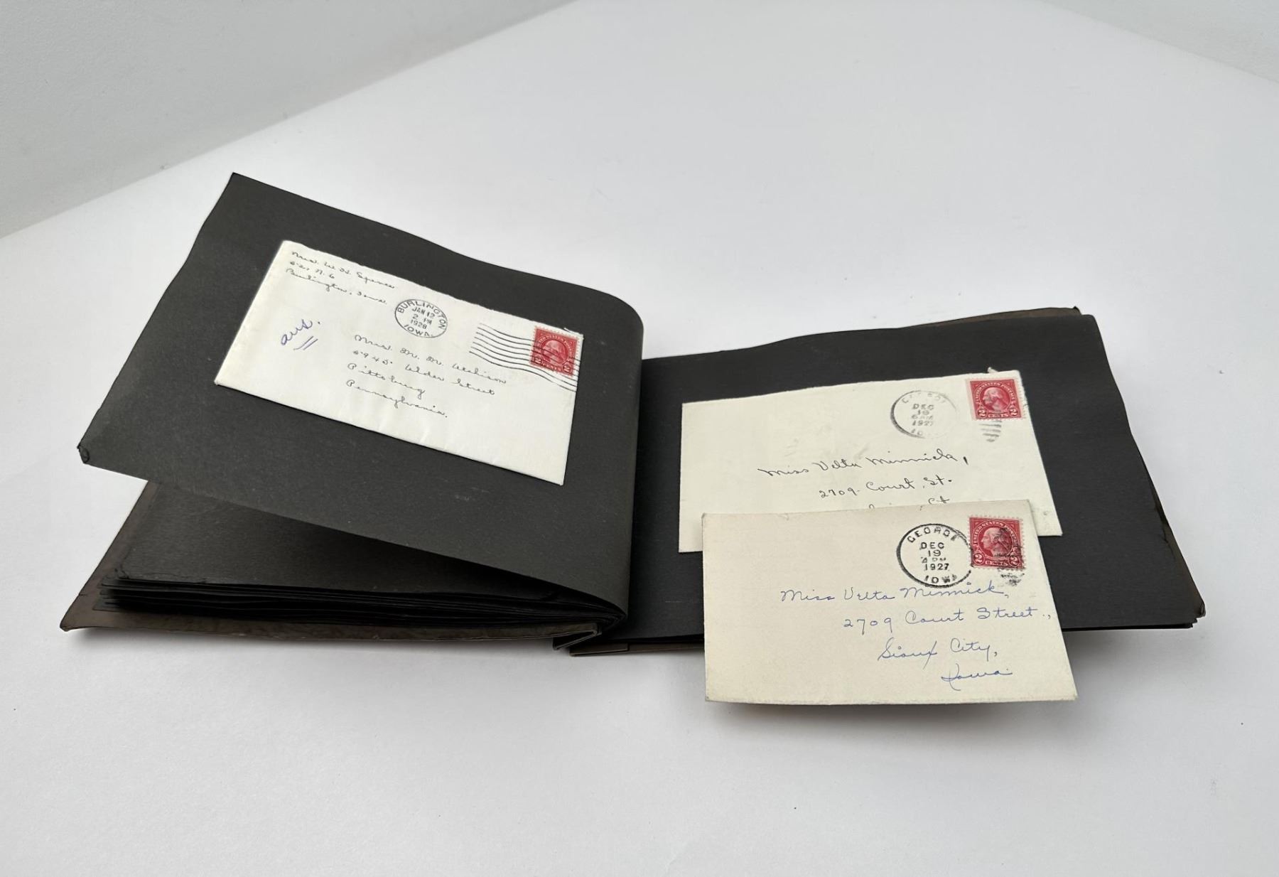 28 pages of memories gathered by a lady who lived in Iowa and mid-west. Primarily cards and correspondence.