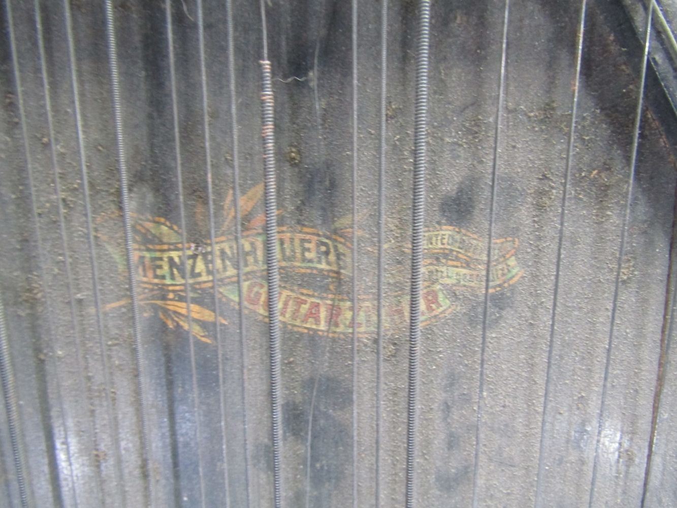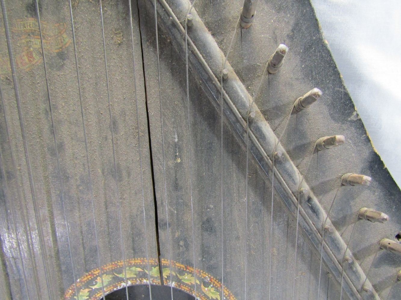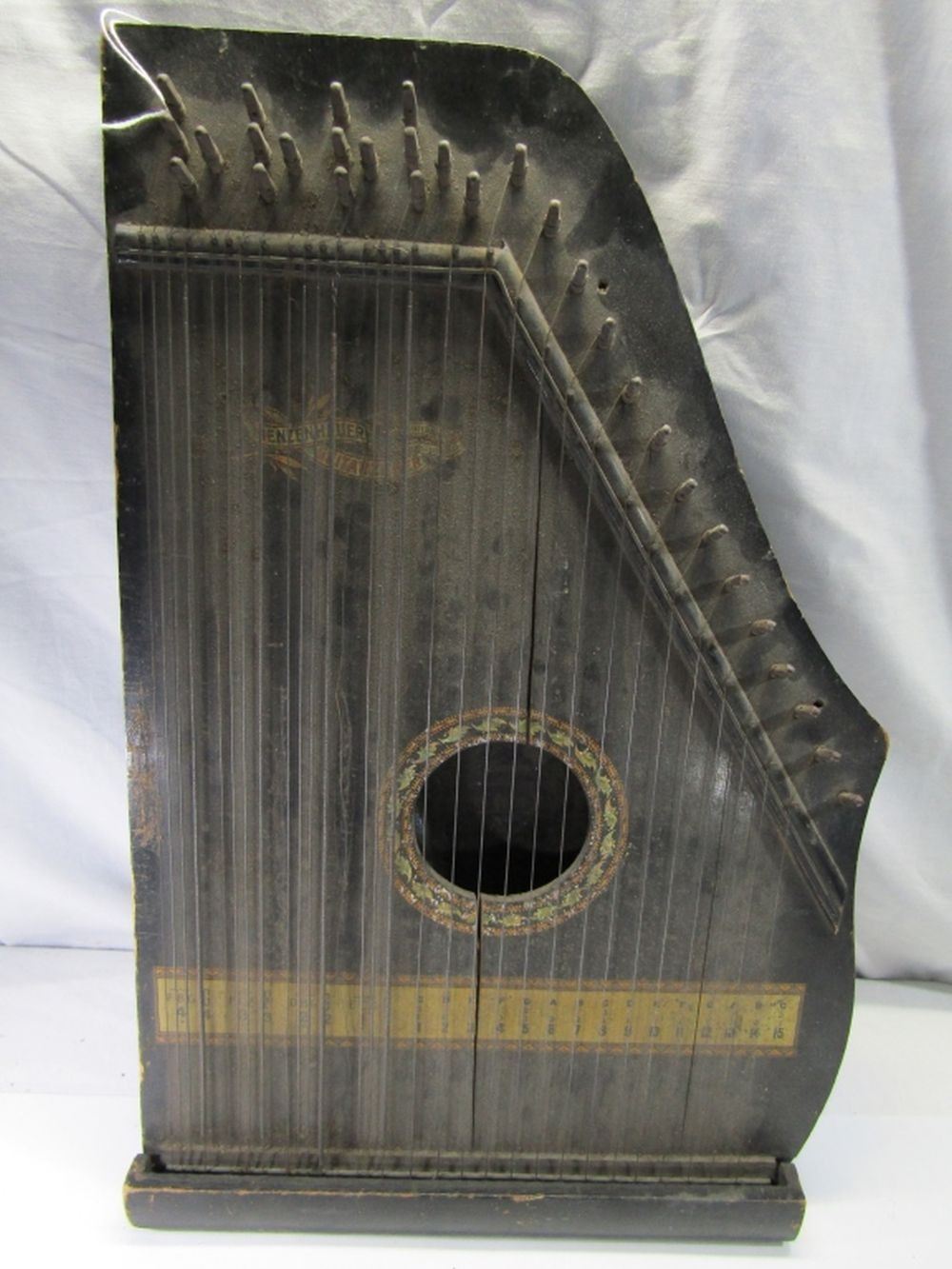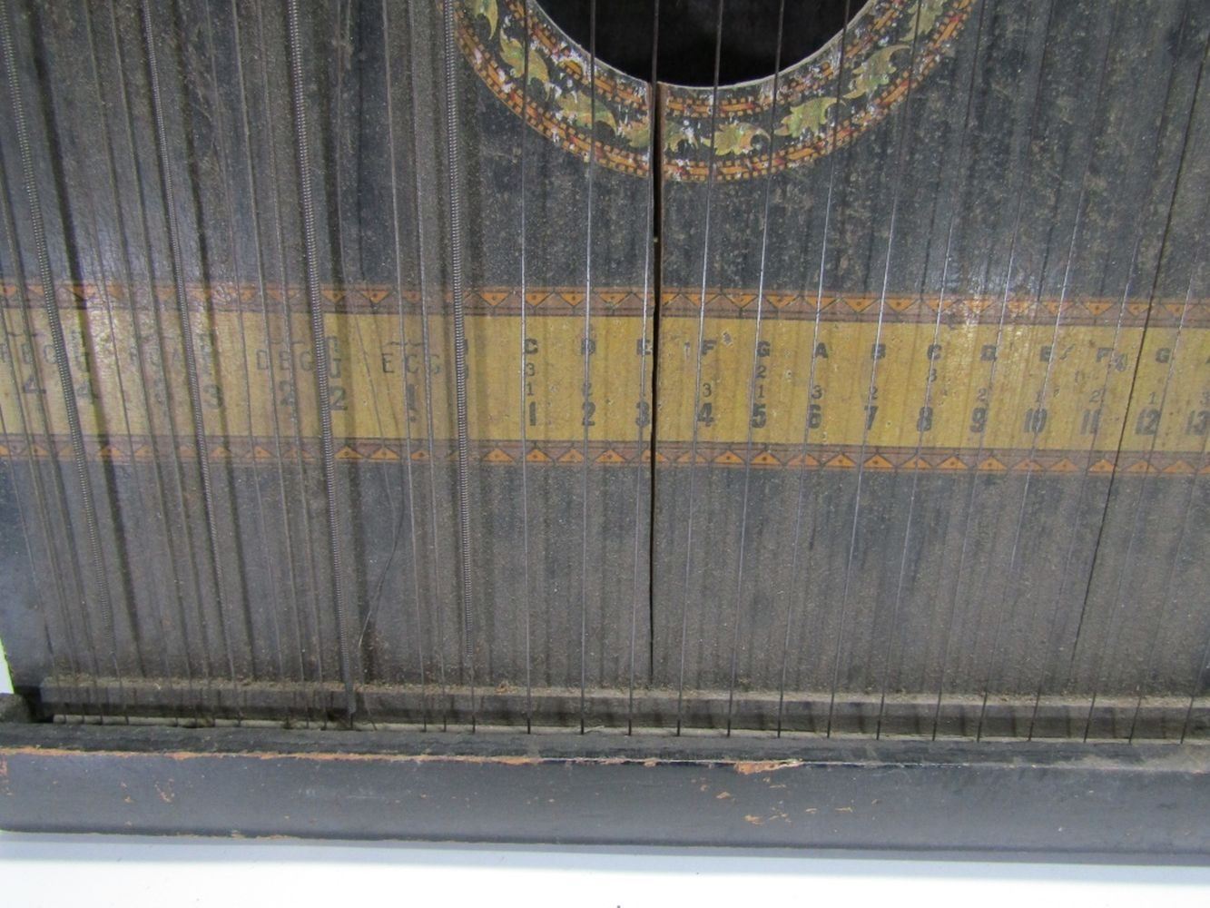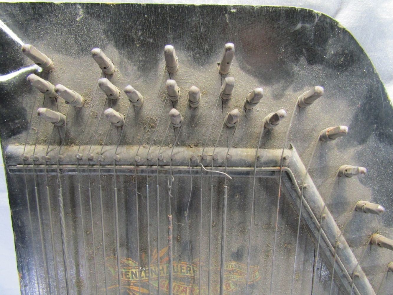 Strings may need tightened/replaced. Needs a good cleaning. Some cracks in the wood on the back.