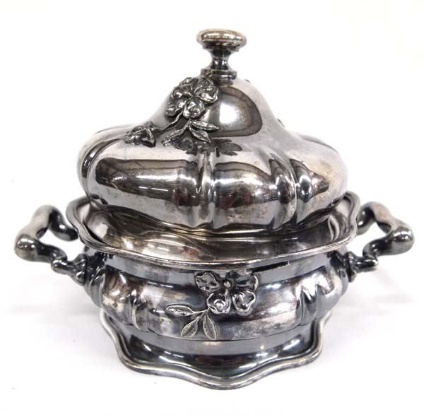 Antique Meriden Silver Plate Butter or Cheese Dish, hallmarked #198 Rogers Bros. U.S.A., measures 5.75''H x 7.5''D