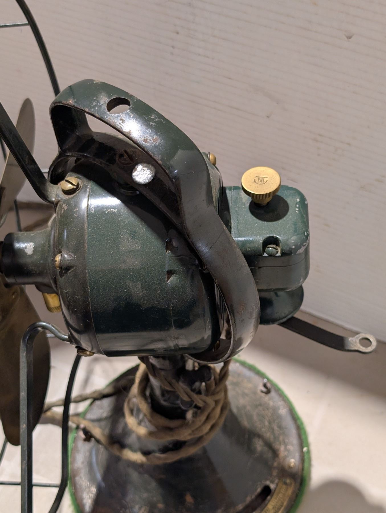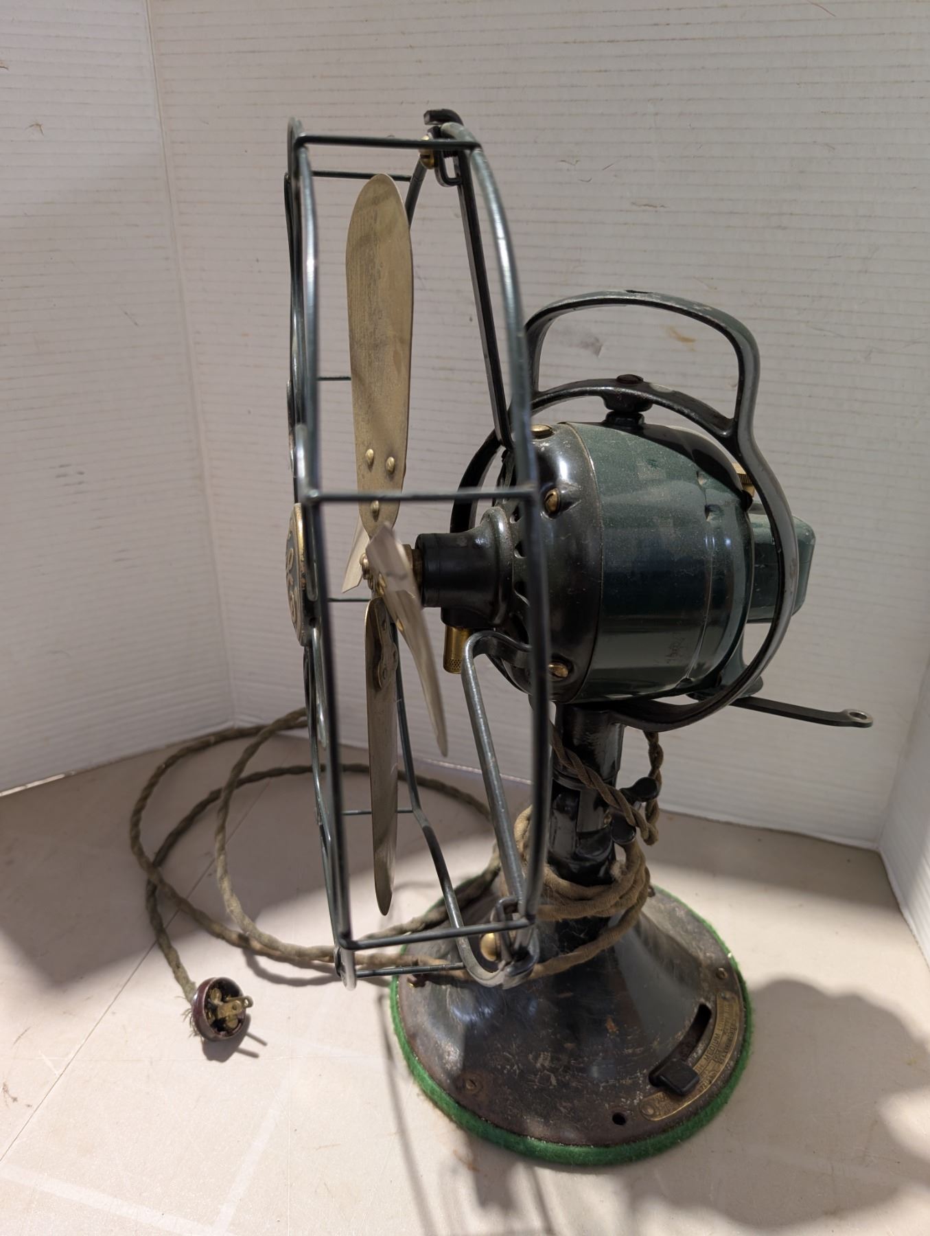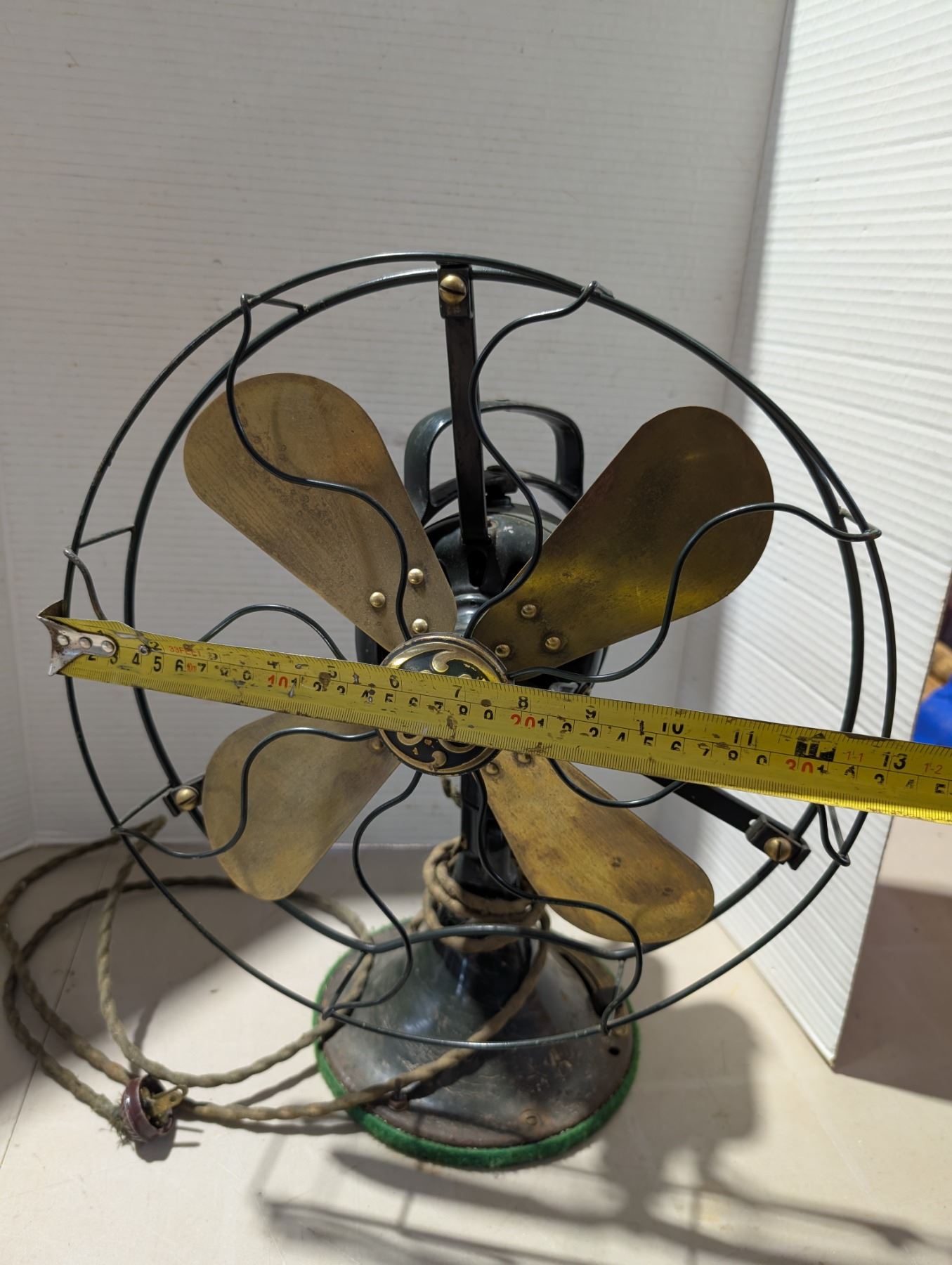 Antique Metal Oscillating Desk Fan w/ Brass Blade 17"x13"