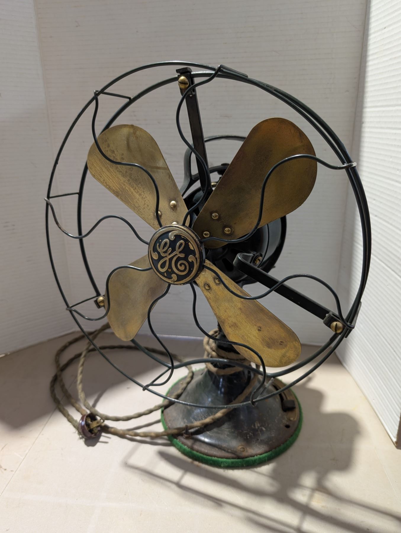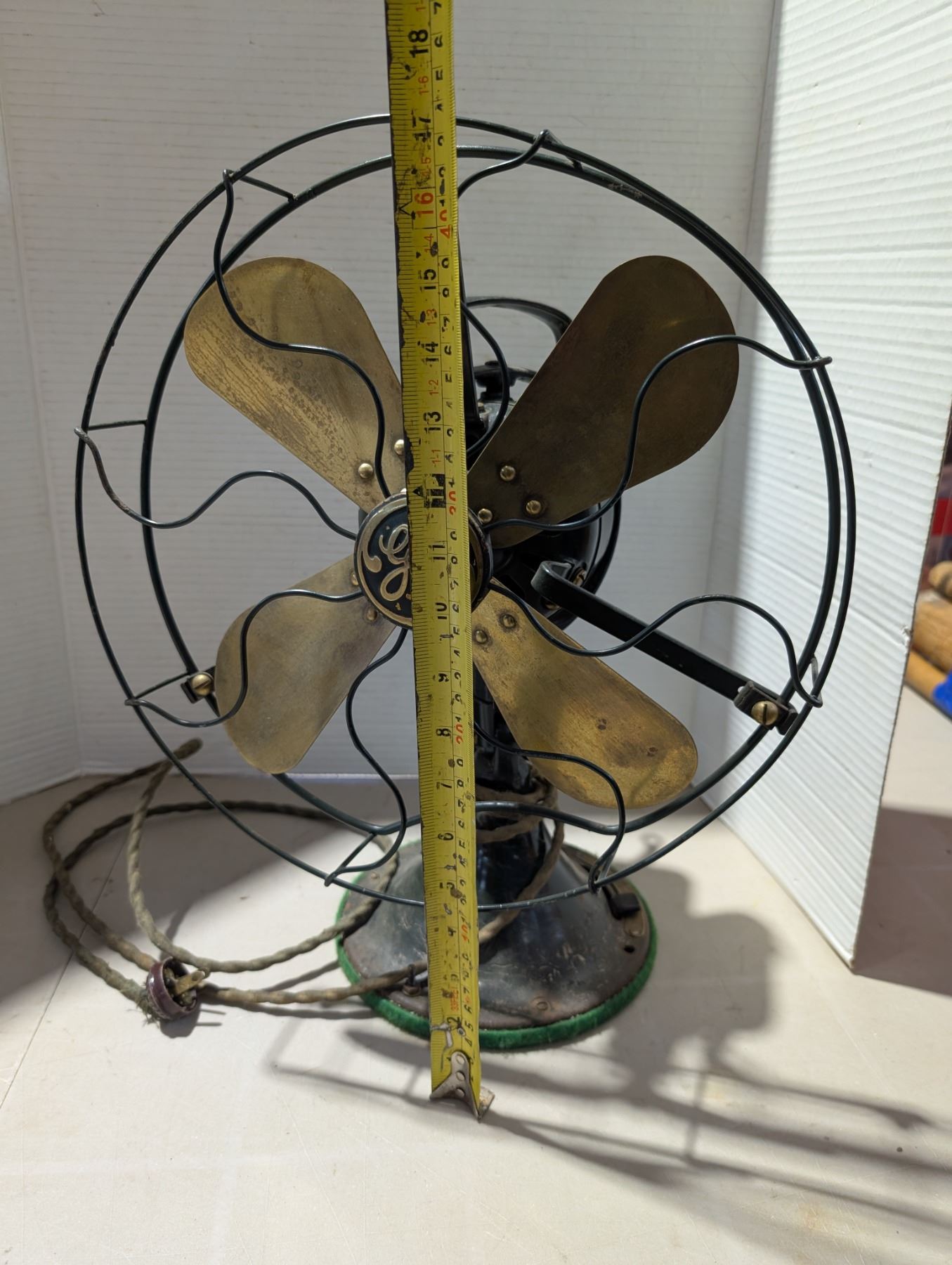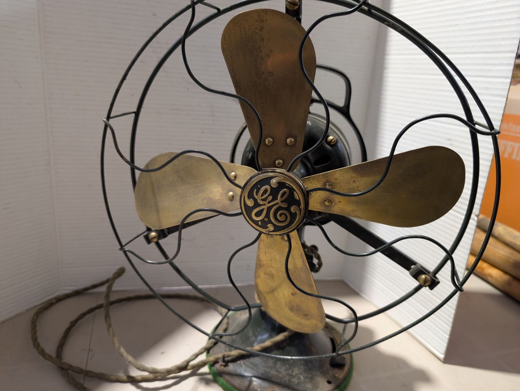Antique Metal Oscillating Desk Fan w/ Brass Blade 17"x13"