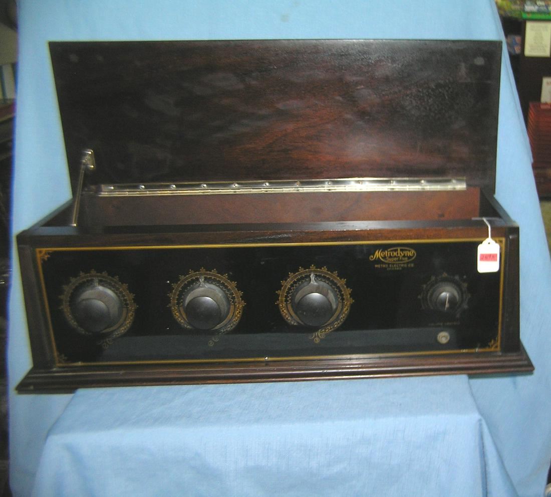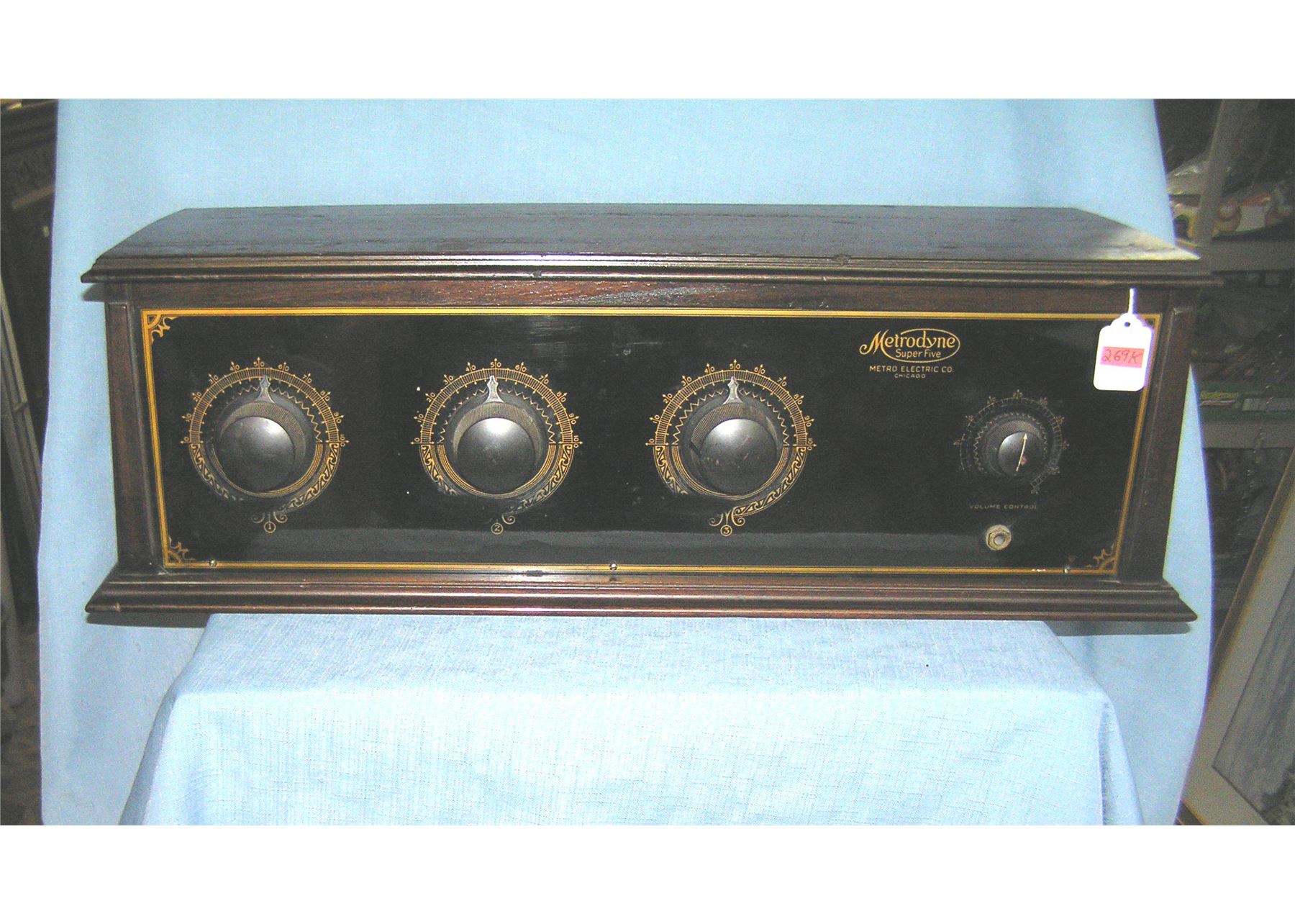 Antique Metrodyne Super Five table top radio rare four dial tube set in beautiful wood case by Metro Electric Co. of Chicago circa 1920's excellent condition est. value $650.00-$700.00