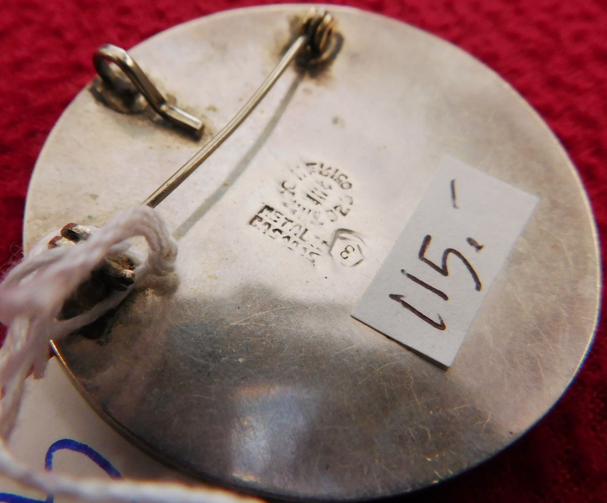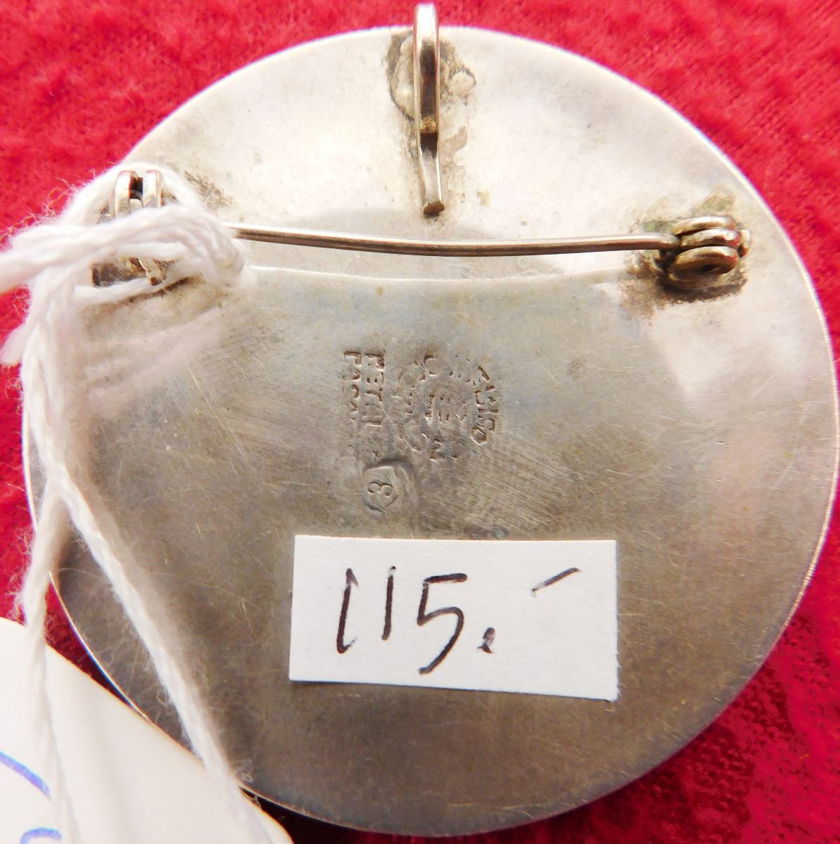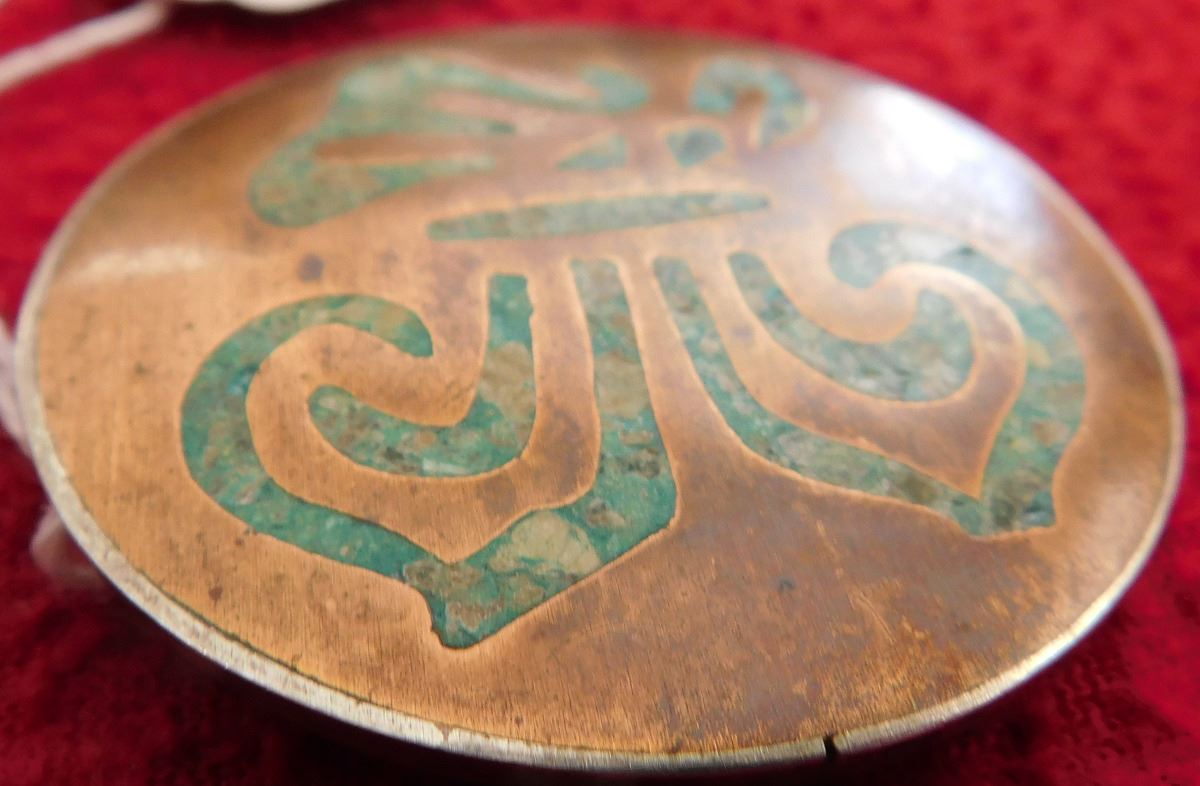 Antique Mexican Pin or Pendant, circa 1940s. Made of sterling silver, copper and greenstone, this item measures 1.75" x 1.75". Taxco, Metales Casados. Beautiful mixed media modernist pin or pendant. Weighs approx. 19.9 grams. Condition: Minor scratches, see images. Shipping: $18.50 w/insurance and signature.