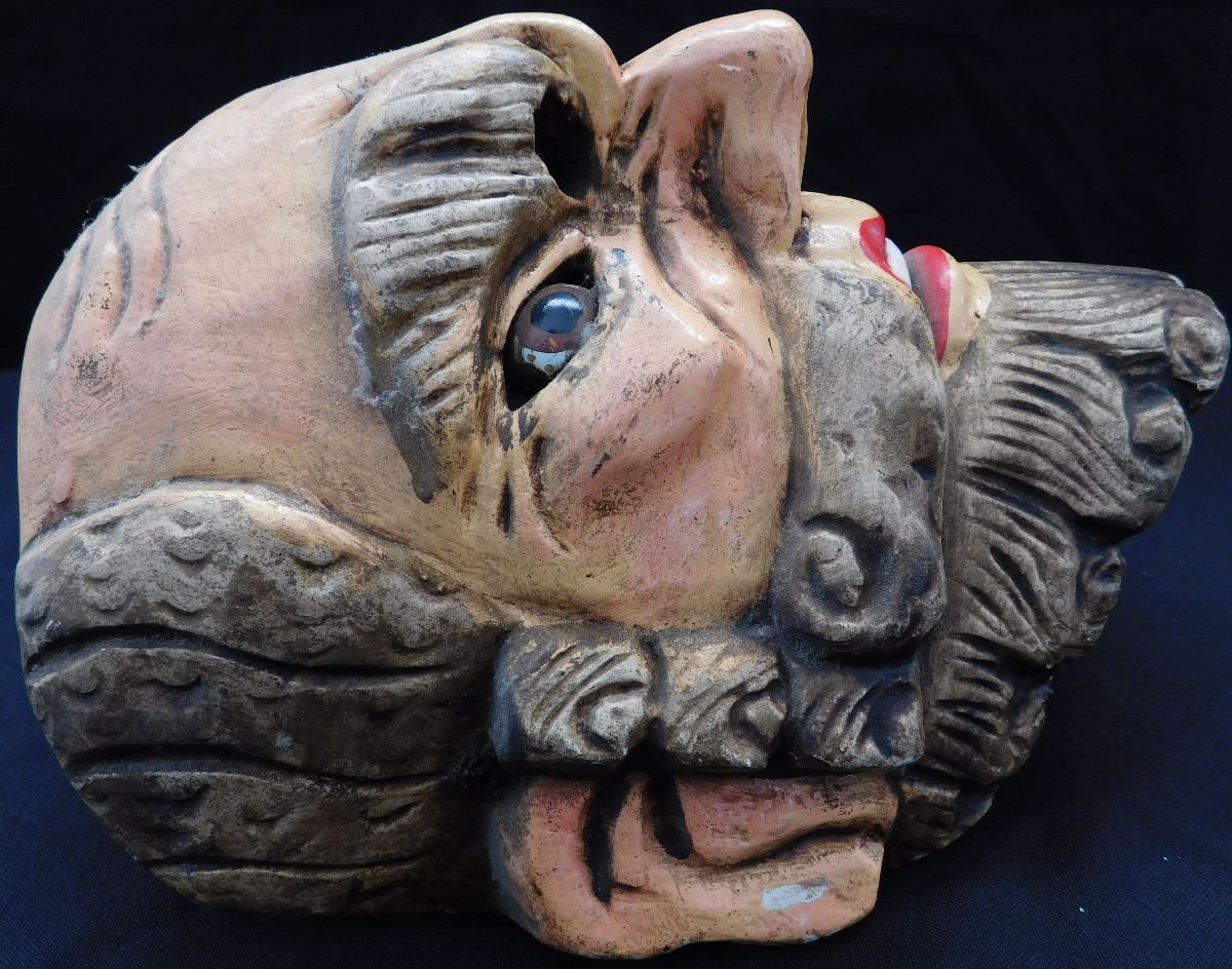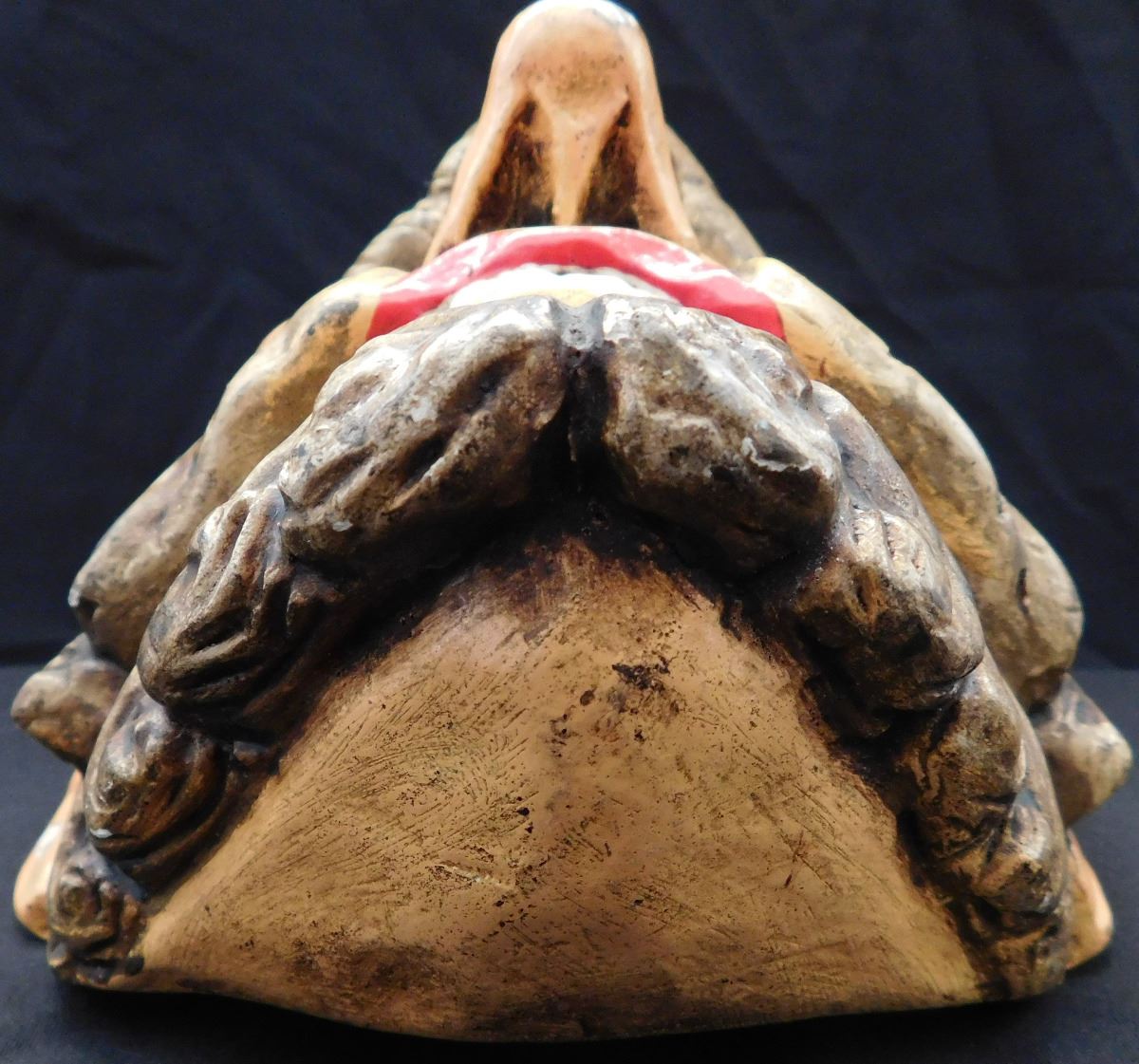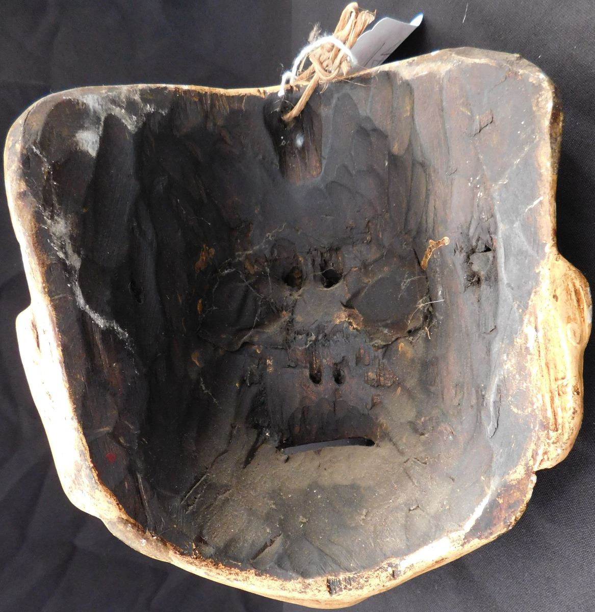 Antique Mexican Santo Mask, circa 1930s. Made of wood, paint. Item measures 7.5" x 10" x 7". Mexican, from Mexico City, MX. The figure depicted could be a Spaniard. Condition: One eyeball cracked, mask needs cleaning, see images. Shipping: $18.00.