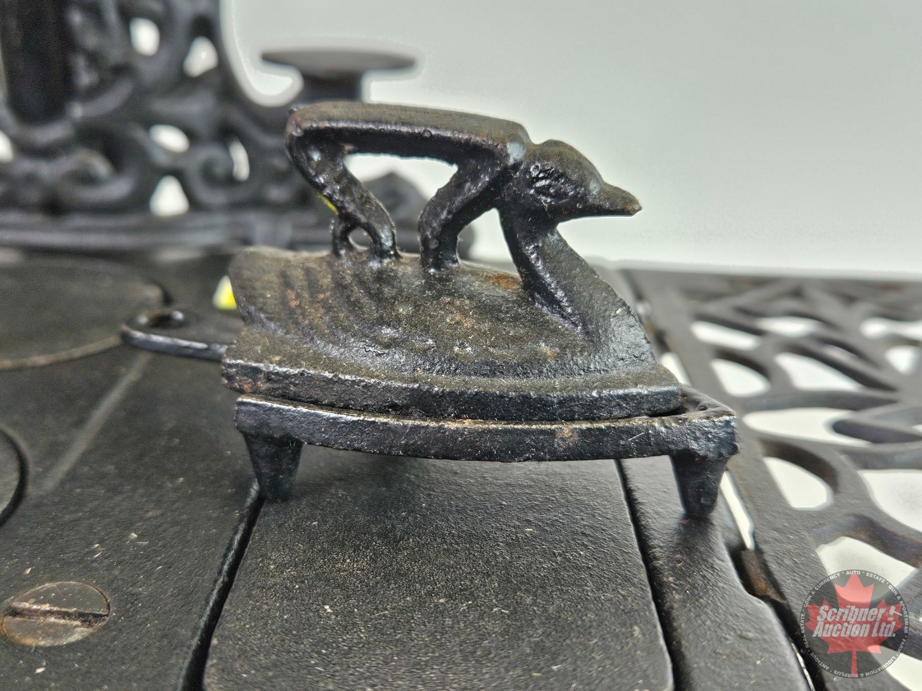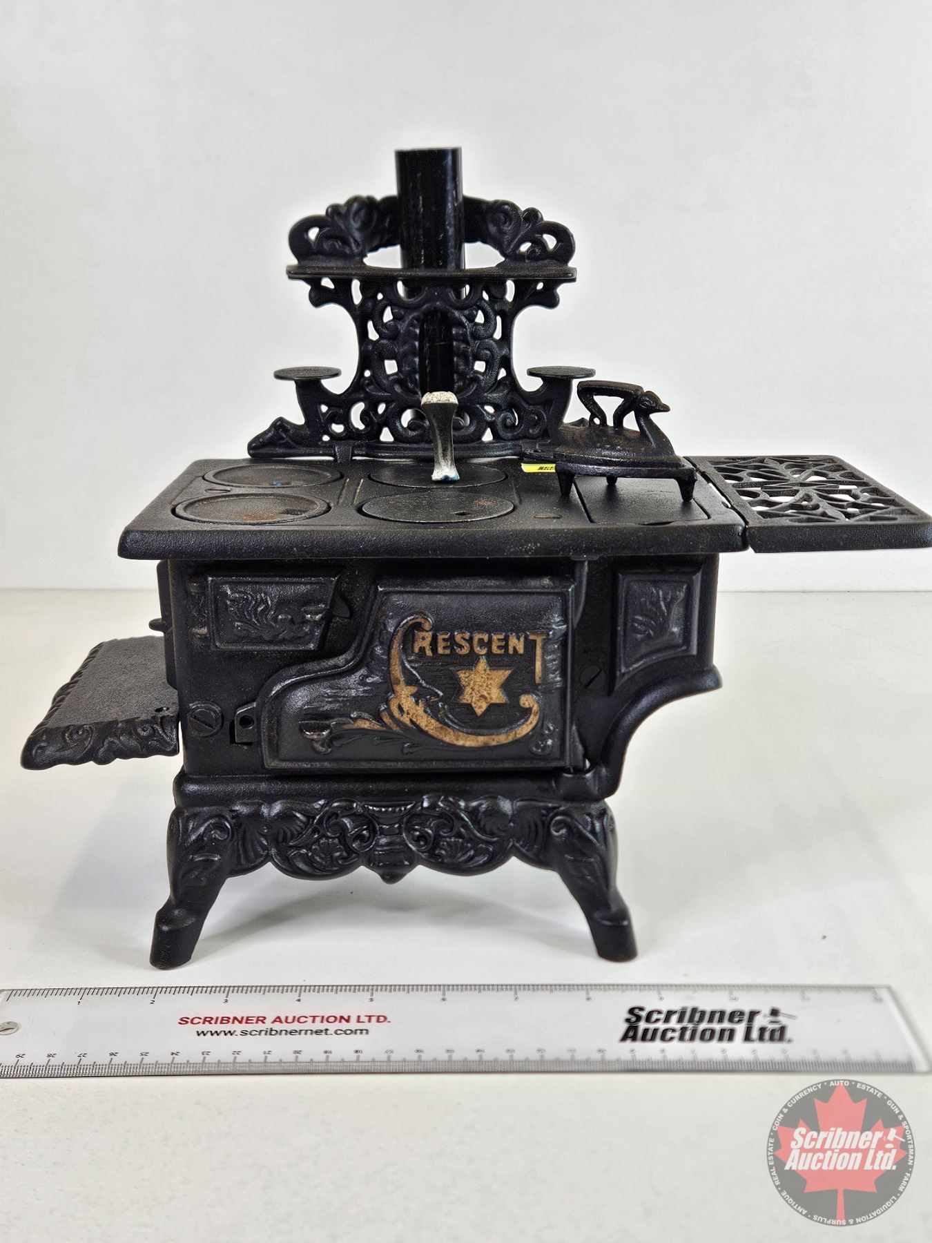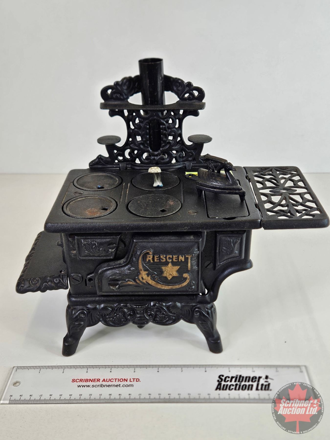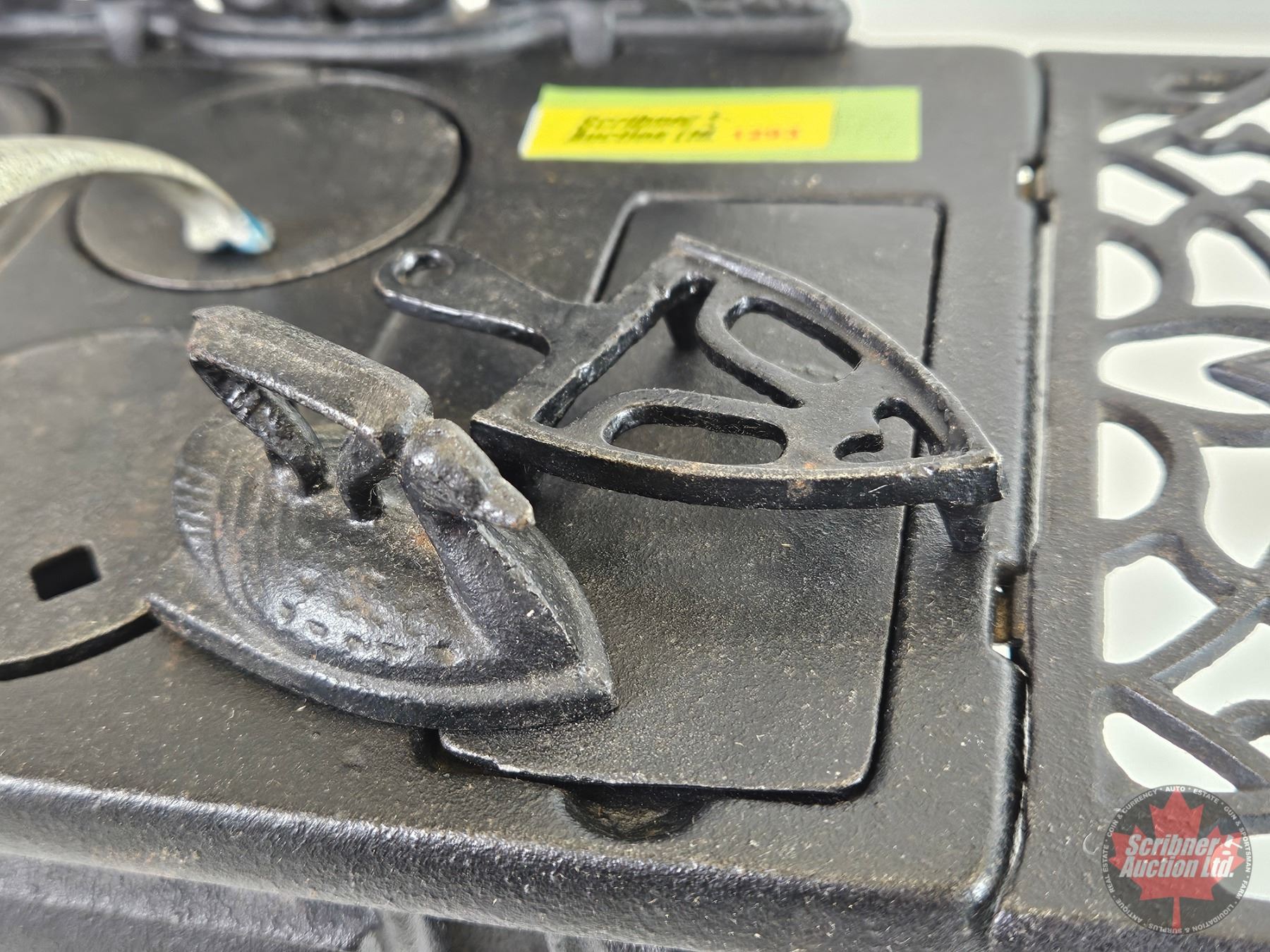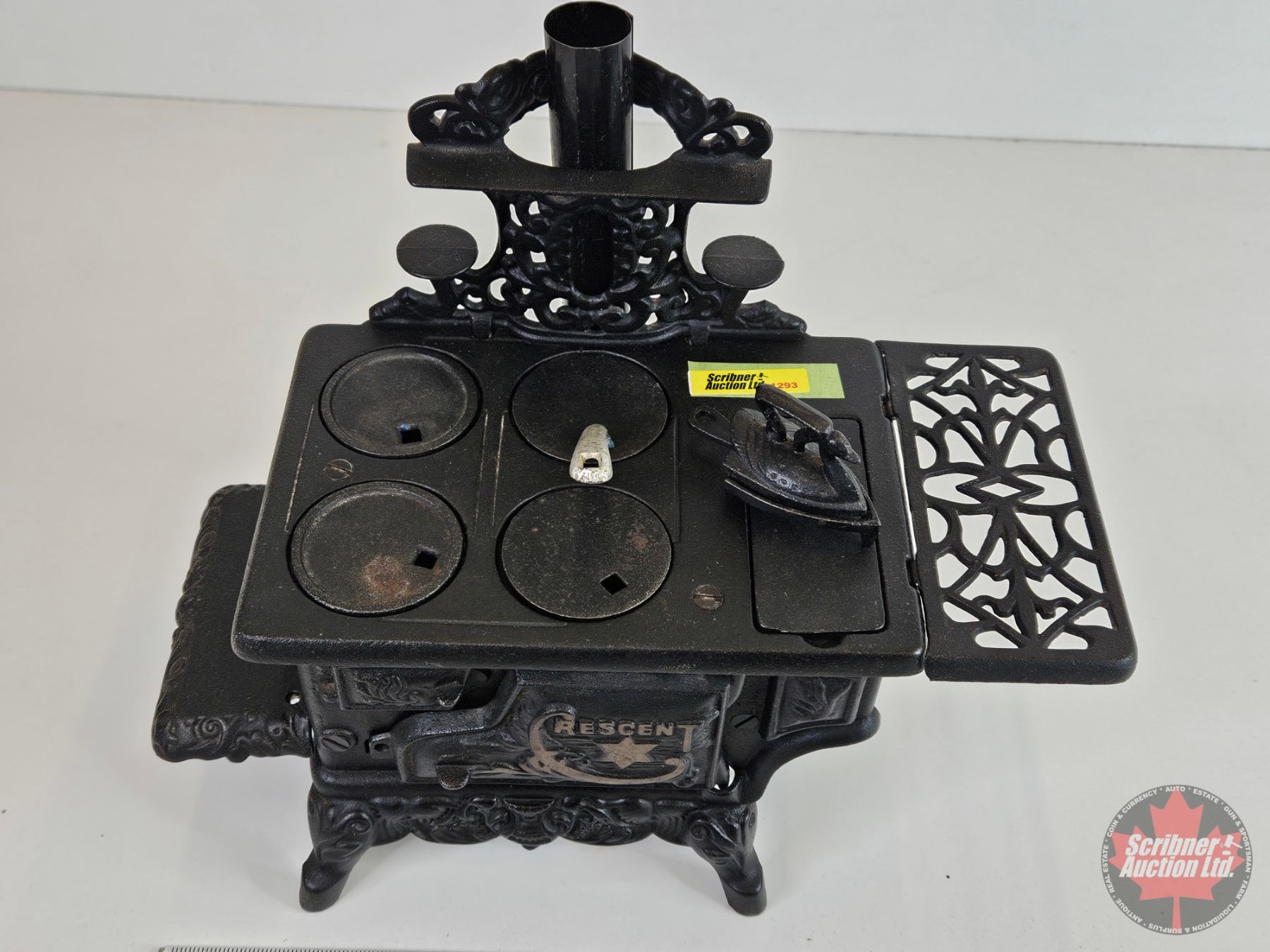 Antique Miniature Cast Iron Toy Stove "Crescent " w/Iron/Trivet/Lifter