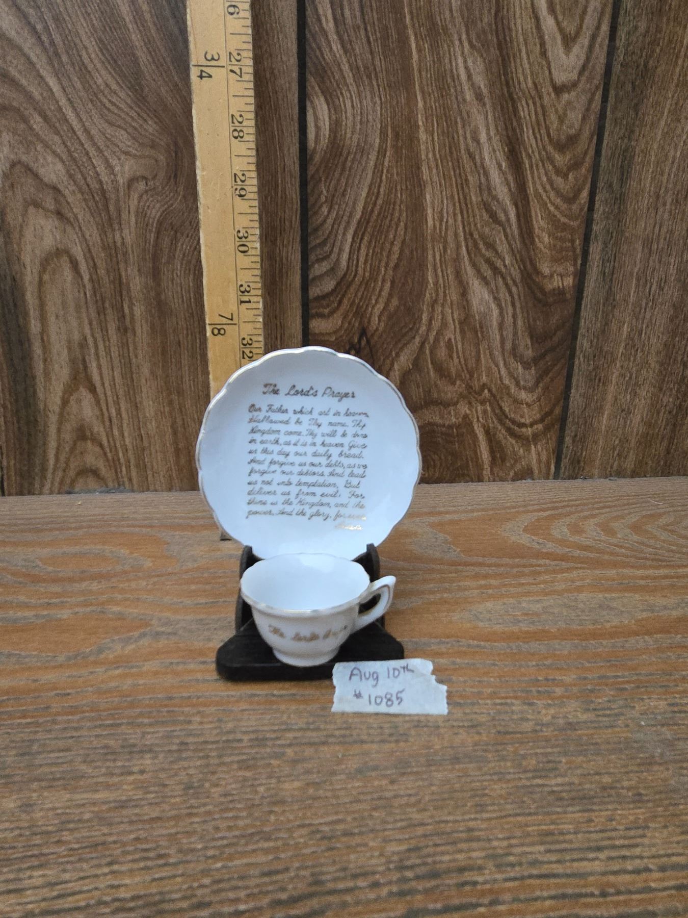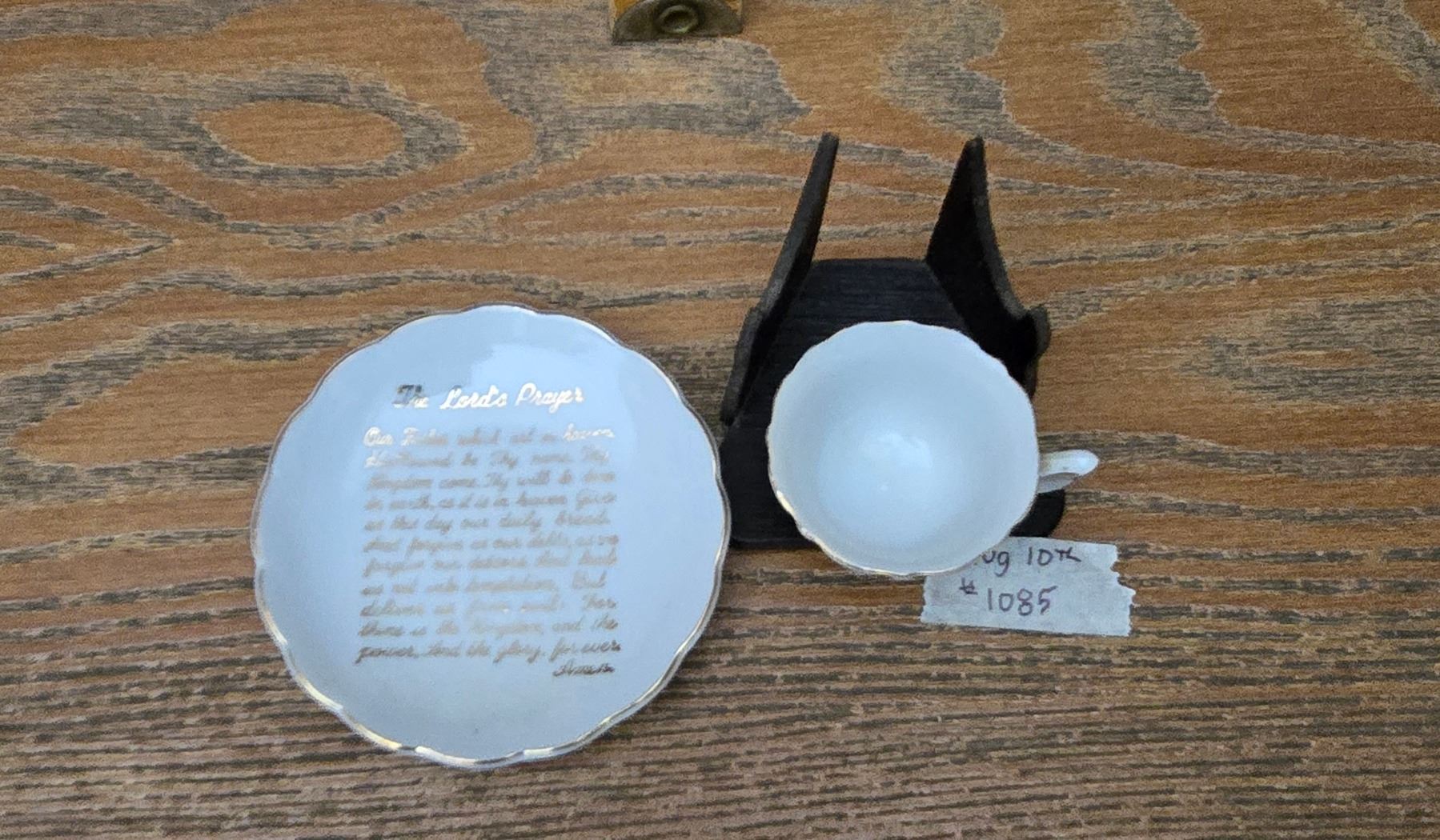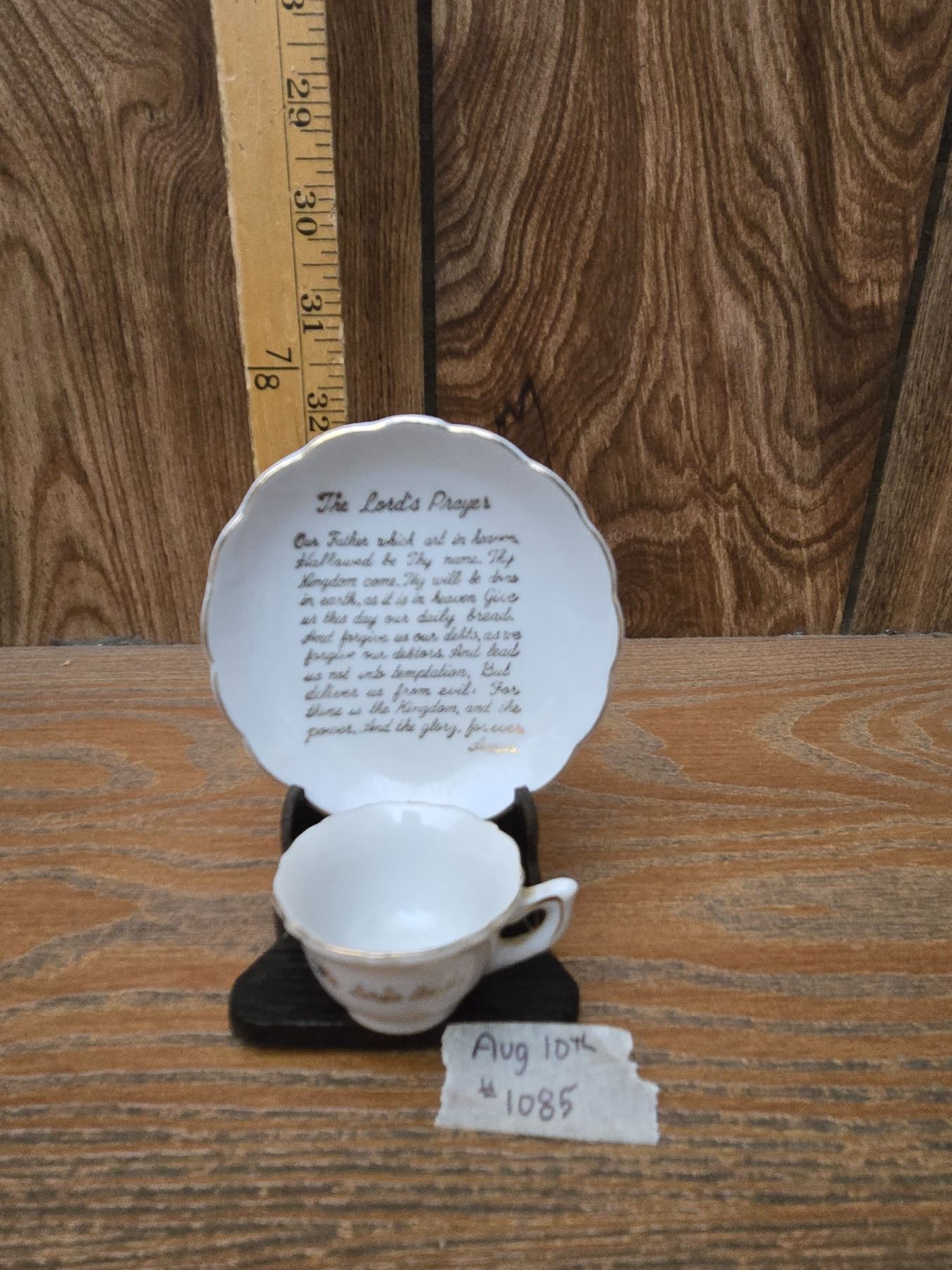 Antique Miniature Cup and Saucer with The Lord's Prayer - Made in Japan