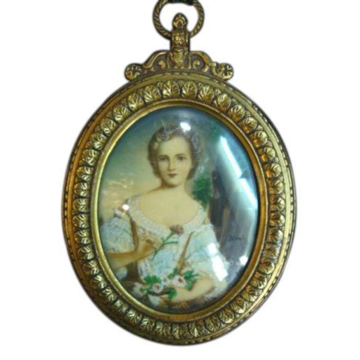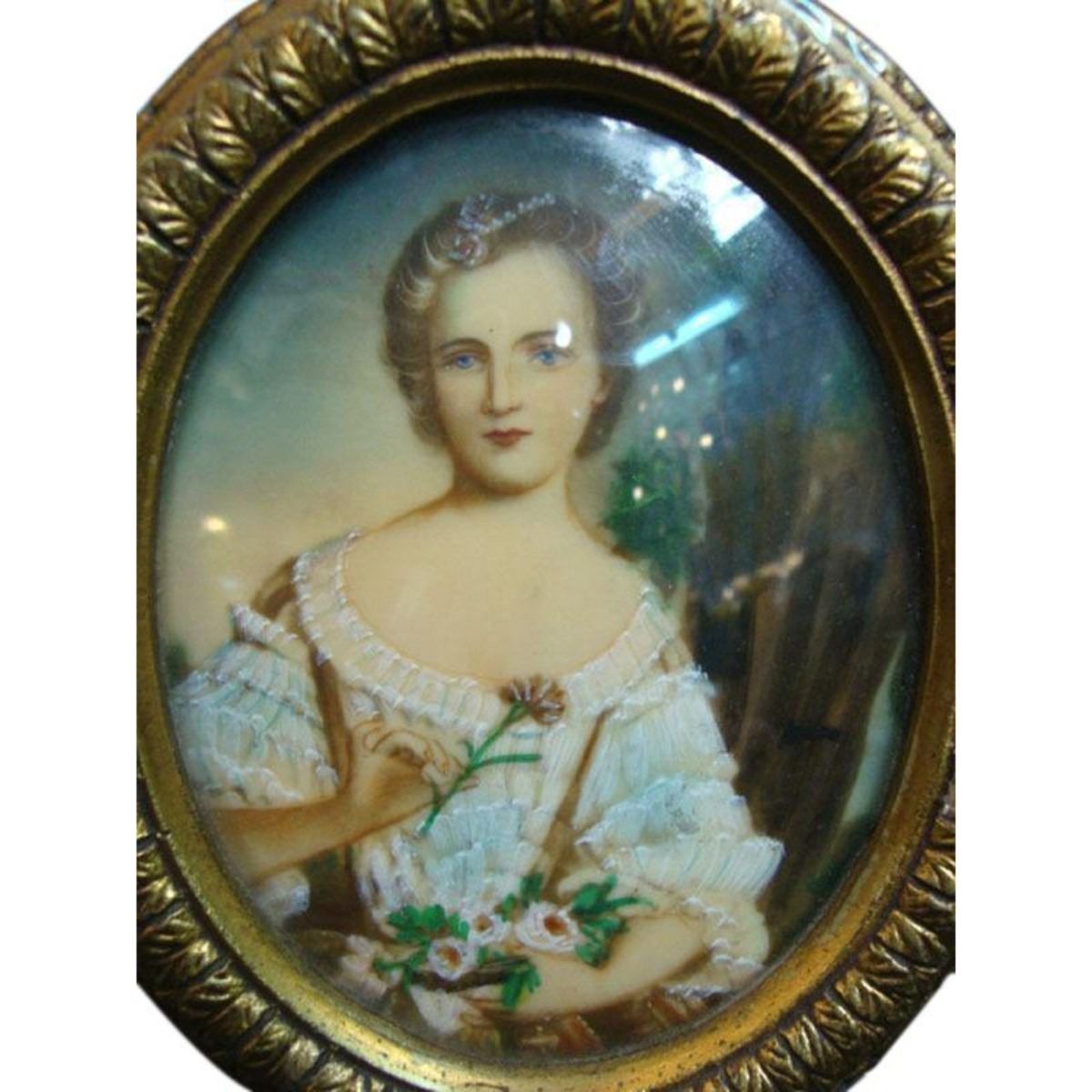 Antique Miniature Painting, Young Lady Portrait FRAME ; 5,90" ( 15CM ) HEIGH by 3,93" ( 10CM ) WIDE PAINTING : 3,54" ( 9CM )HEIGH by 2,75" ( 7CM ) WIDE Â