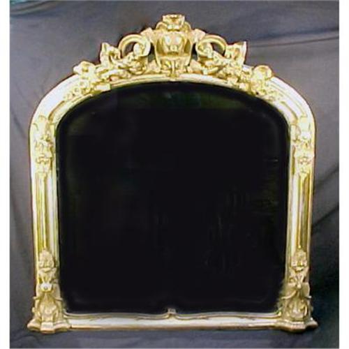 Here is one truly fantastic 19th century rococo over mantel mirror. This looking glass is quite elaborate with graceful swags of carved wood callalillies trailing down from the central crest. It is quite architectural in design being deeply molded. The original mirror is in fantastic condition all things considered ? there are a few little spots that have wear to the silvering but the mirror is original. The all over carvings are deep and rich and life like. The gold gilding is in very good condition having only some mild wear to the typical spots ? where one would dust regularly etc. It is structural very sound and there is no apologize what so ever to be made. It is absolutely stunning and beautiful ? hardcore rococo. It would look absolutely tremendous a top a white marble fireplace. It measures 53? at highest x 49? at widest.