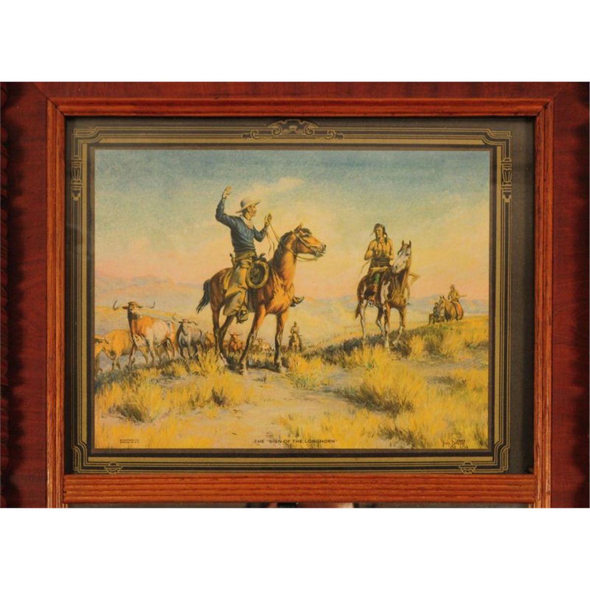 "The Sign Of the Longhorn", Mirror measures 21" x 39". Litho image measures 8 1/2" x 11 1/2".