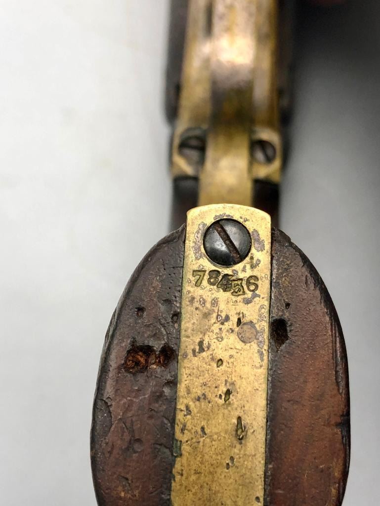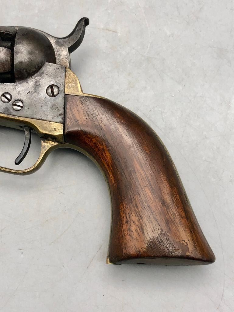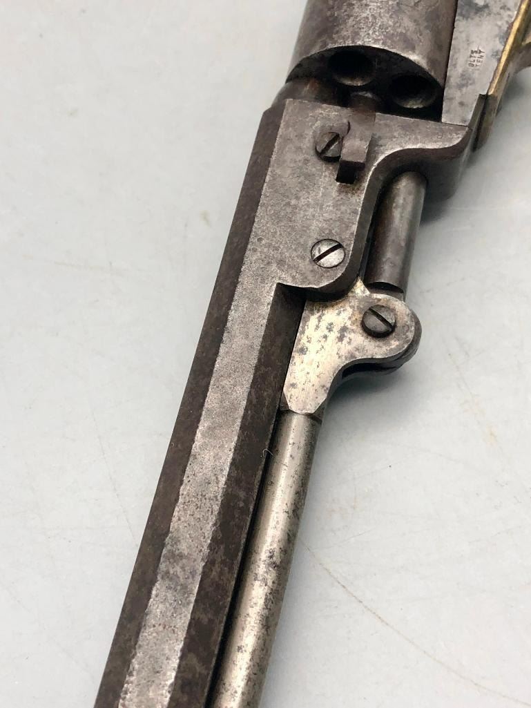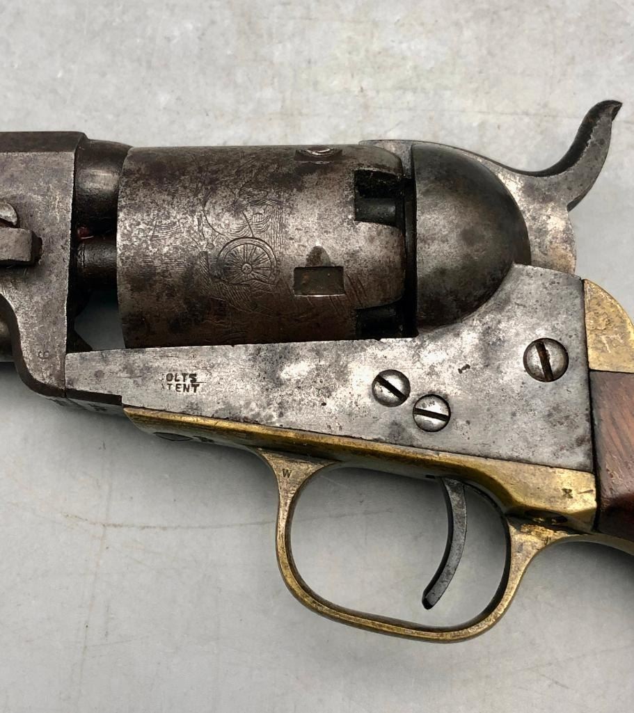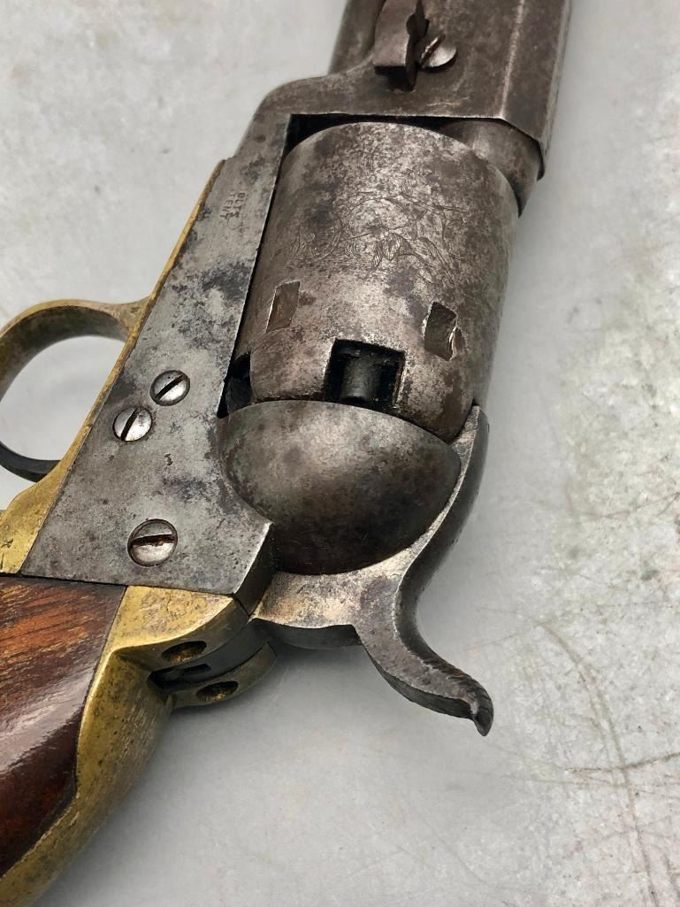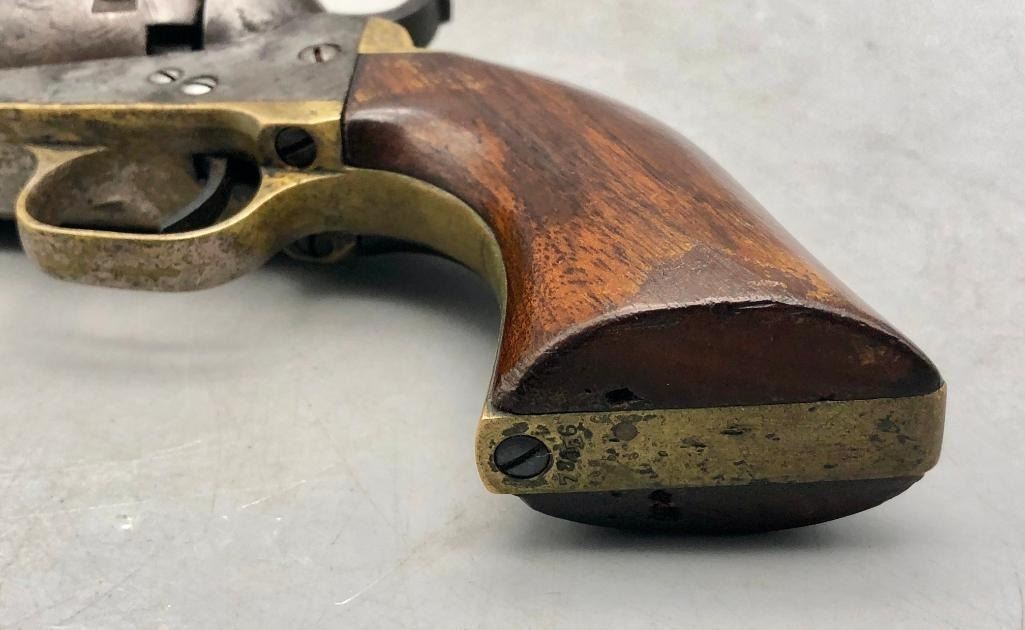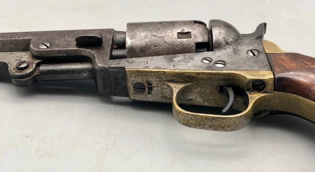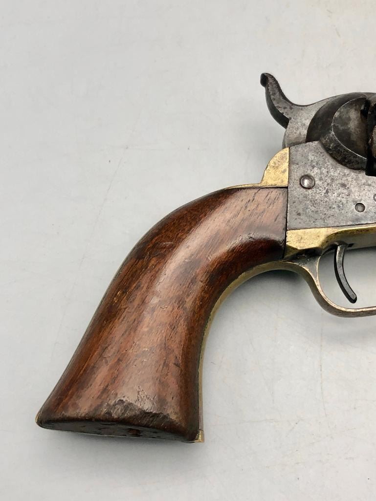 Offered for sale in this lot is an antique model 1849 Colt pocket pistol. This revolver is in decent condition for an antique pistol, showing signs of wear. The finish is nearly gone, there is some pitting, and has some wear to the corners of the wood grips. The serial numbers are all matching, even on the cylinder, and has the original wood grips. There is some of the original engraving still present on the cylinder. It has the two-line New York barrel address. This revolver cycles properly, however we have not fired it. Keep in mind this is an antique and not warranted safe to shoot without the aid of an expert. Maker: Colt. Serial No. 78456. Approx. Age: 1853. Size: Barrel length is 7 inches. Condition: Fair to poor for its age, wear expected. Please look closely at the pictures - they are an important part of our description. Shipping: There will be a $15 handling / packaging fee for shipping this lot. The actual cost of postage will be added on top of that. BUY IT NOW: If you would like to buy this item now without waiting for the auction to end (this option is only available up to 48 hours before the auction starts to close), the “Buy it Now” price is the high estimate of this lot. If you would like to end the auction early and pay the high estimate (plus applicable fees), please contact us by phone or email and reference this lot number. *****ANTIQUE - This firearm DOES NOT REQUIRE an FFL Transfer*****