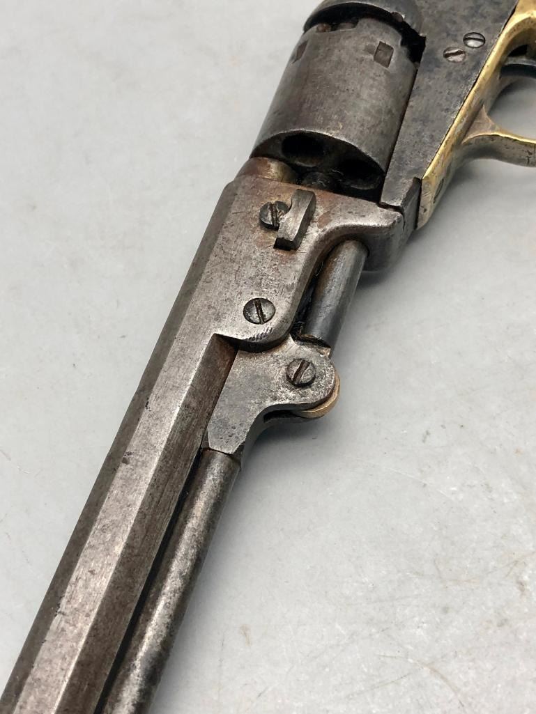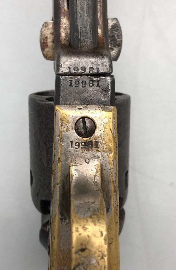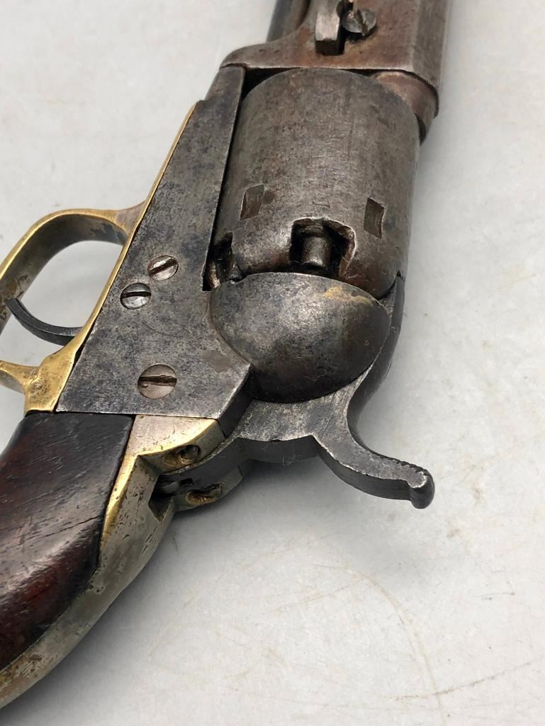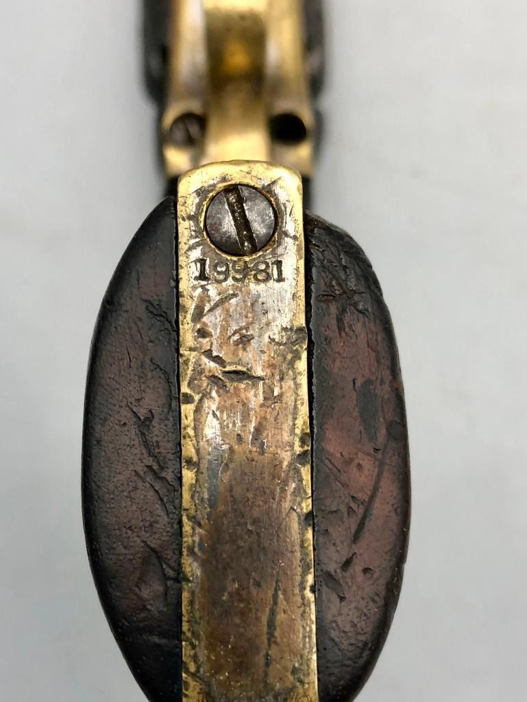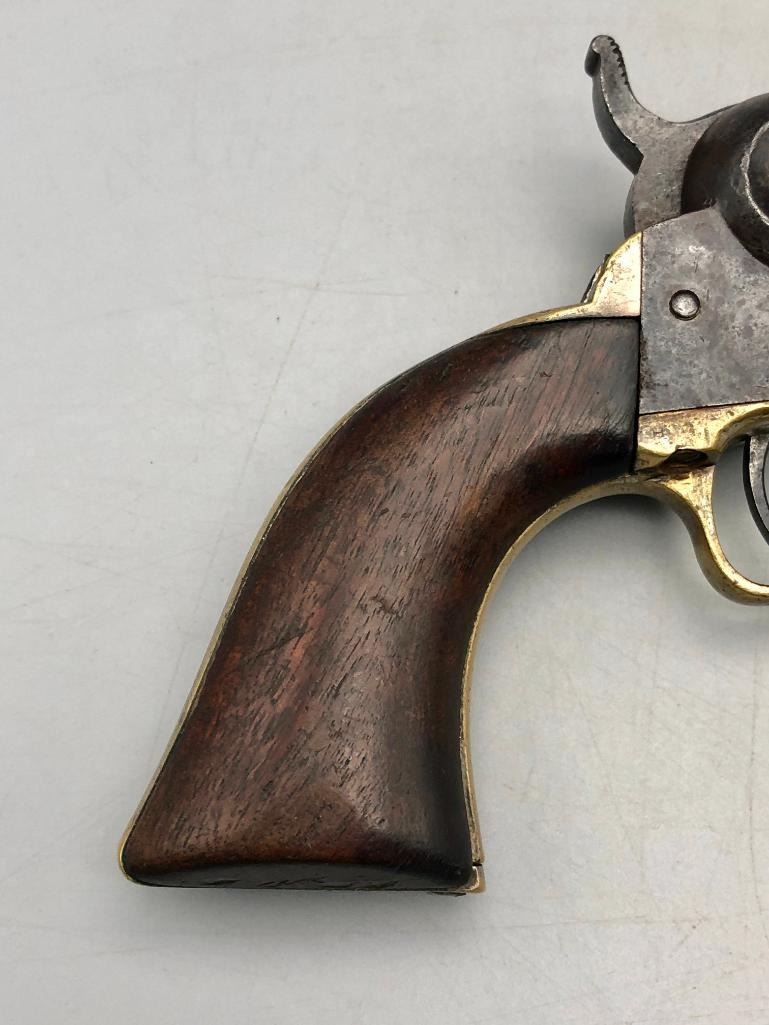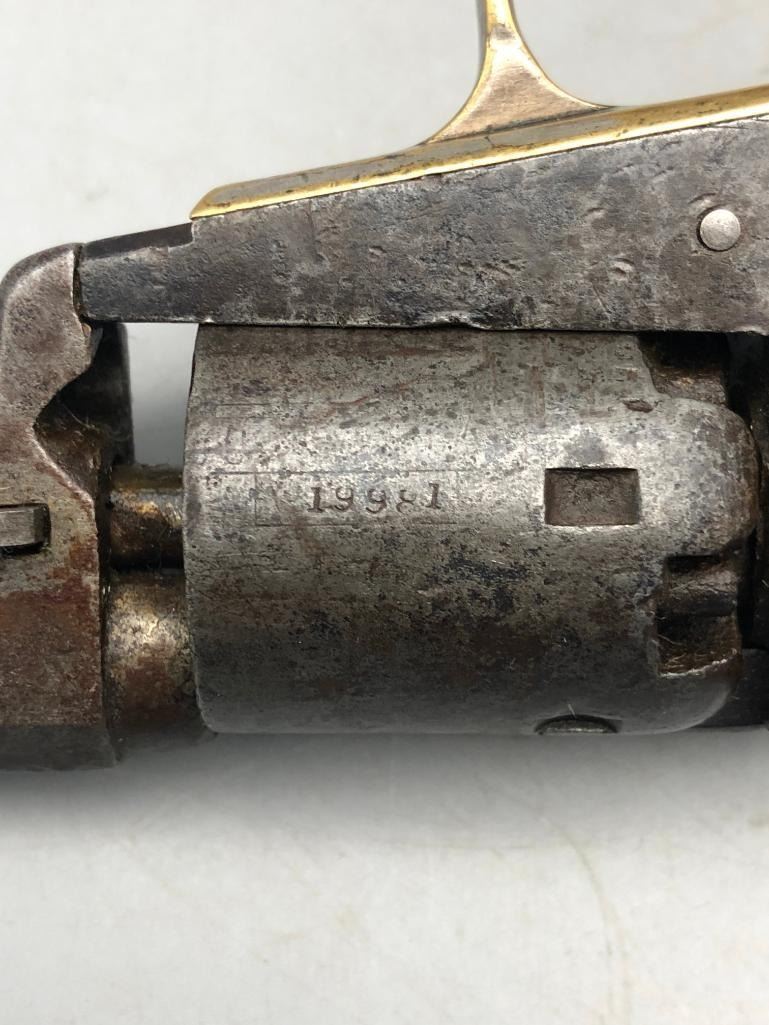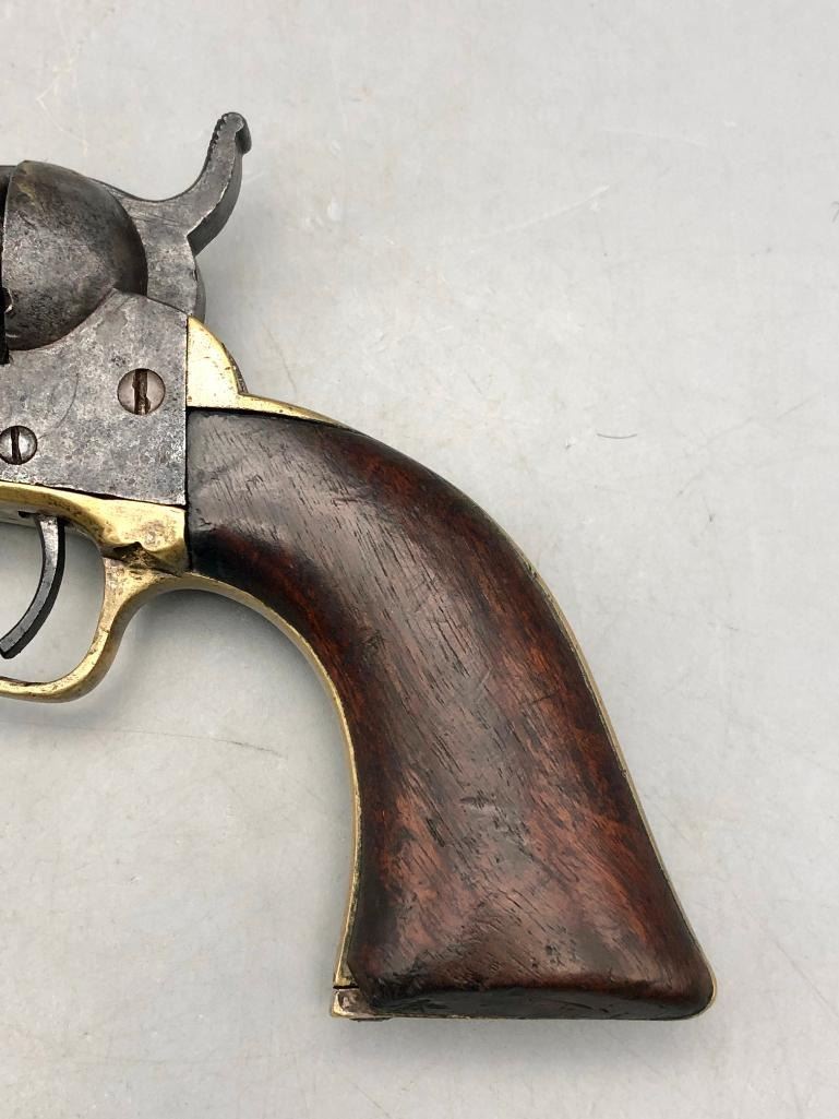 Presented for sale in this lot is an antique Colt pocket pistol. This revolver is in decent condition, showing signs of wear, typical for a pistol this age. The finish is nearly gone, it has some pitting, some minor rust, and some dings throughout. It has original wood grips and matching serial numbers. It has the two-line New York barrel address. It cycles properly, however we have not fired it. Keep in mind this is an antique and not warranted safe to shoot, without the aid of an expert. Maker: Colt. Serial No. 19981. Approx. Age: 1851. Size: Barrel length is 6 inches. Condition: Fair to poor for its age, wear expected. Please look closely at the pictures - they are an important part of our description. Shipping: There will be a $15 handling / packaging fee for shipping this lot. The actual cost of postage will be added on top of that. BUY IT NOW: If you would like to buy this item now without waiting for the auction to end (this option is only available up to 48 hours before the auction starts to close), the “Buy it Now” price is the high estimate of this lot. If you would like to end the auction early and pay the high estimate (plus applicable fees), please contact us by phone or email and reference this lot number. *****ANTIQUE - This firearm DOES NOT REQUIRE an FFL Transfer*****