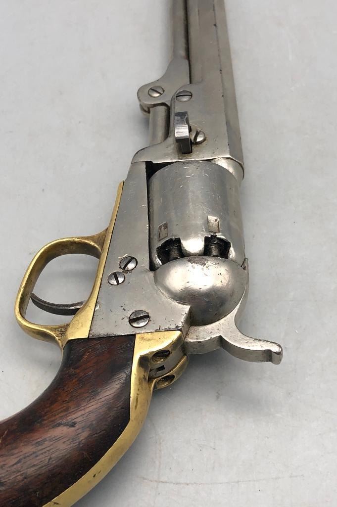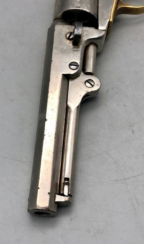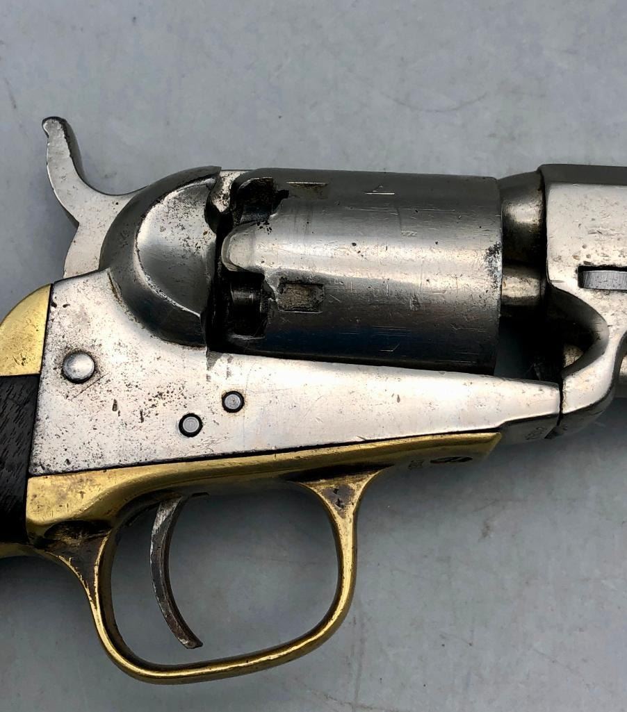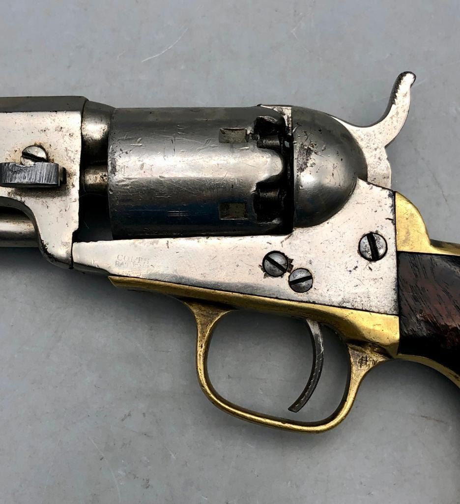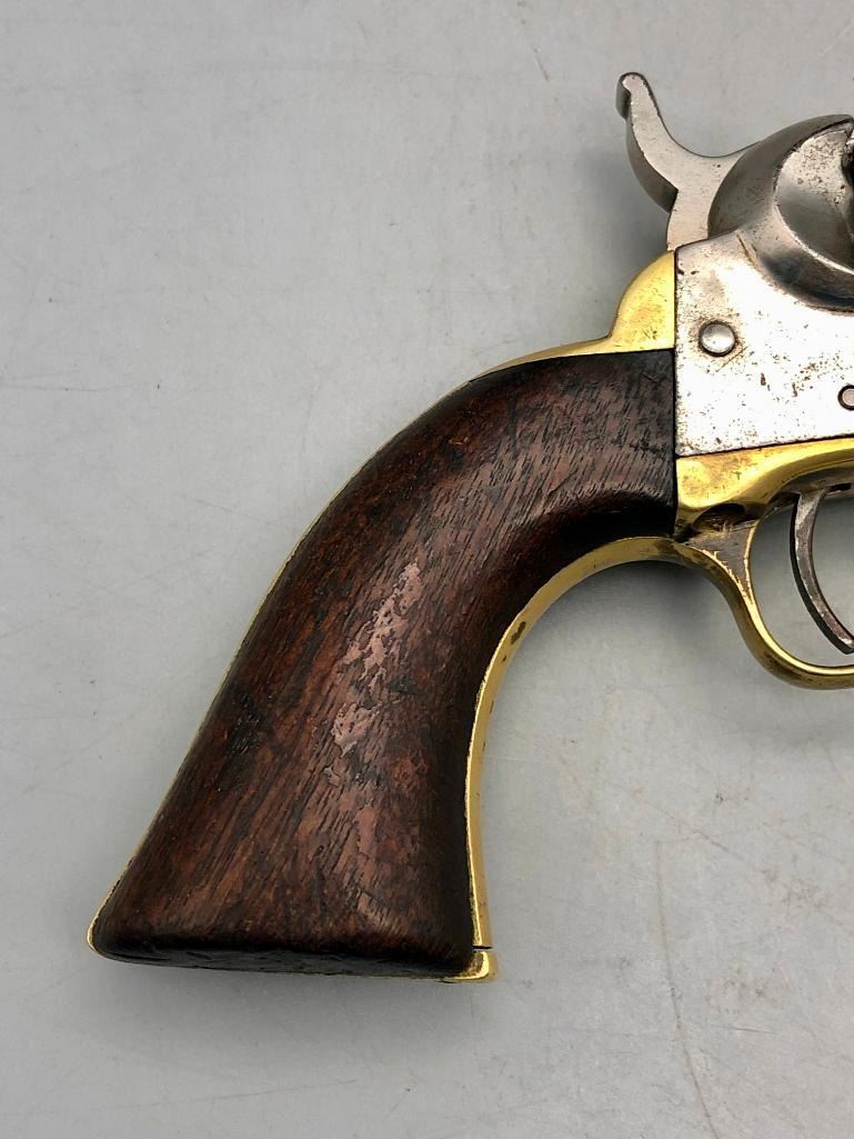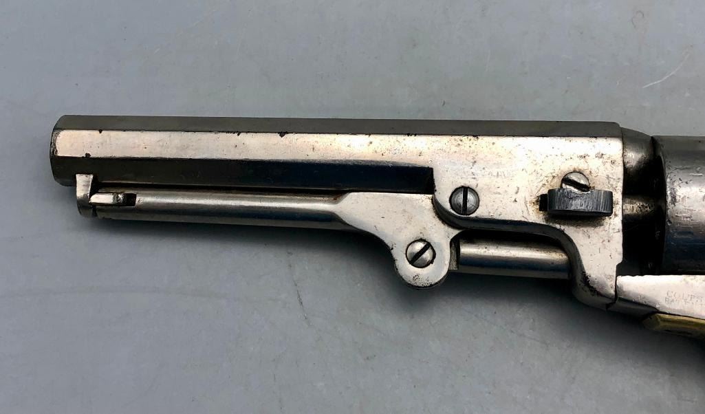 Offered for sale in this lot is an antique model 1849 Colt pocket pistol. This revolver is in decent condition, showing signs of wear, with a nice patina. It is nickel plated and there are some dings on the metal, especially on the butt of the pistol, on the brass and some wear to the wood grips. All the serial numbers are matching and it has the original wood grips. It has the one line New York address. It cycles properly, however we have not fired it. Keep in mind this is an antique, and not warranted safe to shoot, and should not be attempted without the aid of an expert. A nice addition to your collection! Maker: Serial No. 233252. Approx. Age: 1863. Size: Barrel measures 5 inches long. 31 Caliber. Condition: Fair for its age, wear expected. Please look closely at the pictures - they are an important part of our description. Shipping: There will be a $15 handling / packaging fee for shipping this lot. The actual cost of postage will be added on top of that. BUY IT NOW: If you would like to buy this item now without waiting for the auction to end (this option is only available up to 48 hours before the auction starts to close), the “Buy it Now” price is the high estimate of this lot. If you would like to end the auction early and pay the high estimate (plus applicable fees), please contact us by phone or email and reference this lot number. *****ANTIQUE - This firearm DOES NOT REQUIRE an FFL Transfer*****