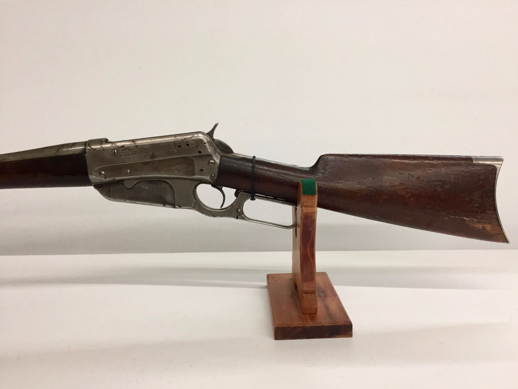 Description: Winchester Model 1895 lever-action repeating rifle. .30 - 06 cal. We are selling this as an antique / curio item and not warranted safe to shoot. No FFL paperwork required on this antique rifle which was made pre-1898. We will only ship this item to the United States and only where it is legal to do so. Please know your local/state laws before buying. Maker: Winchester Repeating Arms Company. Approx. Age: Circa 1895. Size: Measures approx. 41 3/4” l x 4”. Condition: Fair for its age, wear expected. Had an aftermarket rear sight at one time, which has been removed, leaving the screw hole empty. Please look closely at the pictures - they are an important part of our description. Shipping: There will be a $10 handling / packaging fee for shipping this lot. The actual cost of postage will be added on top of that.