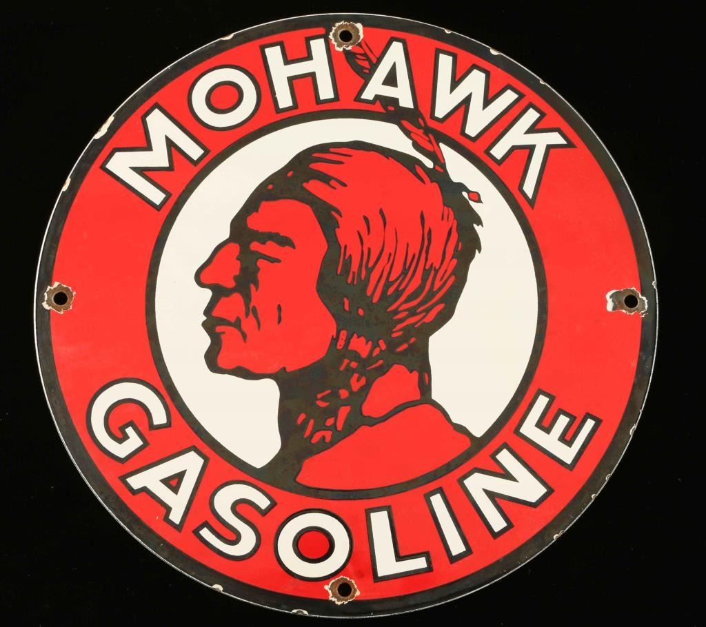 Advertising Gas Pump Sign. Measures 11 3/4" in diameter. Has smooth porcelain on both sides.