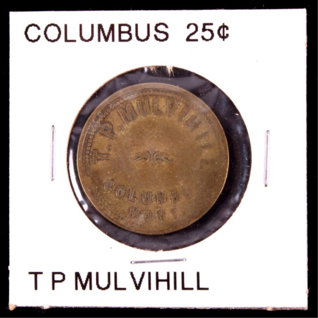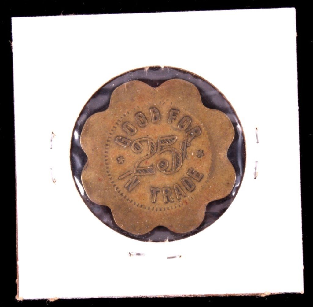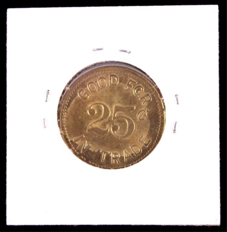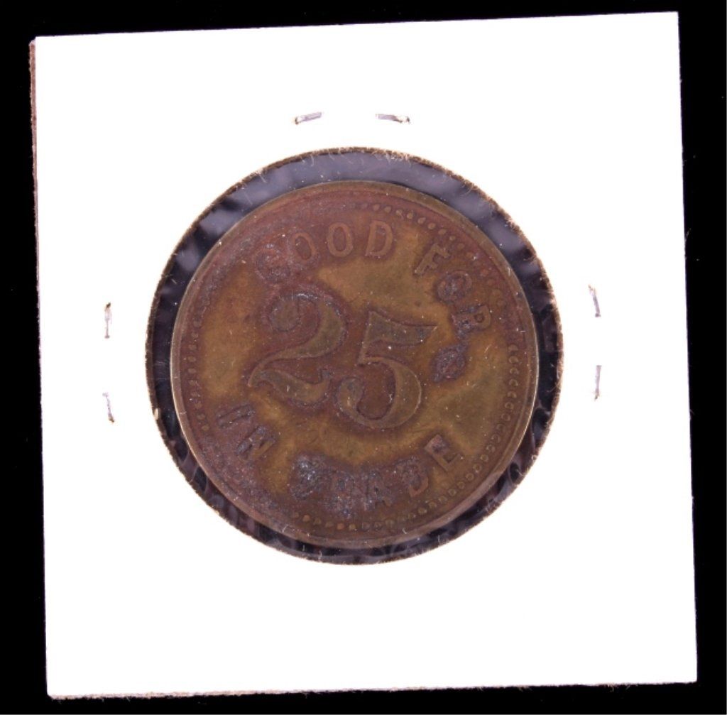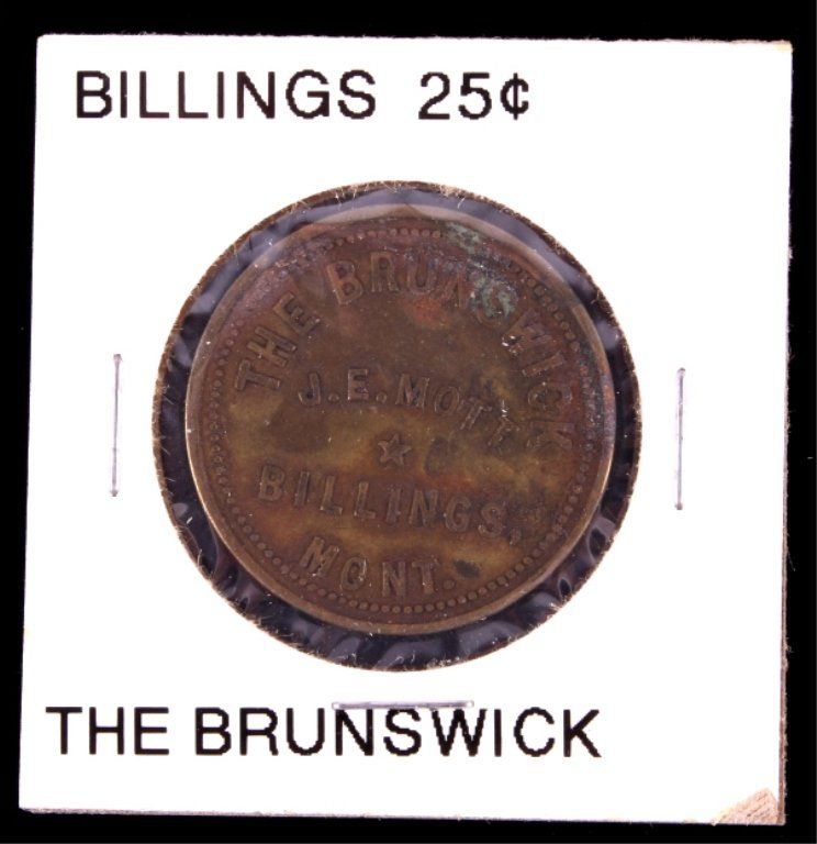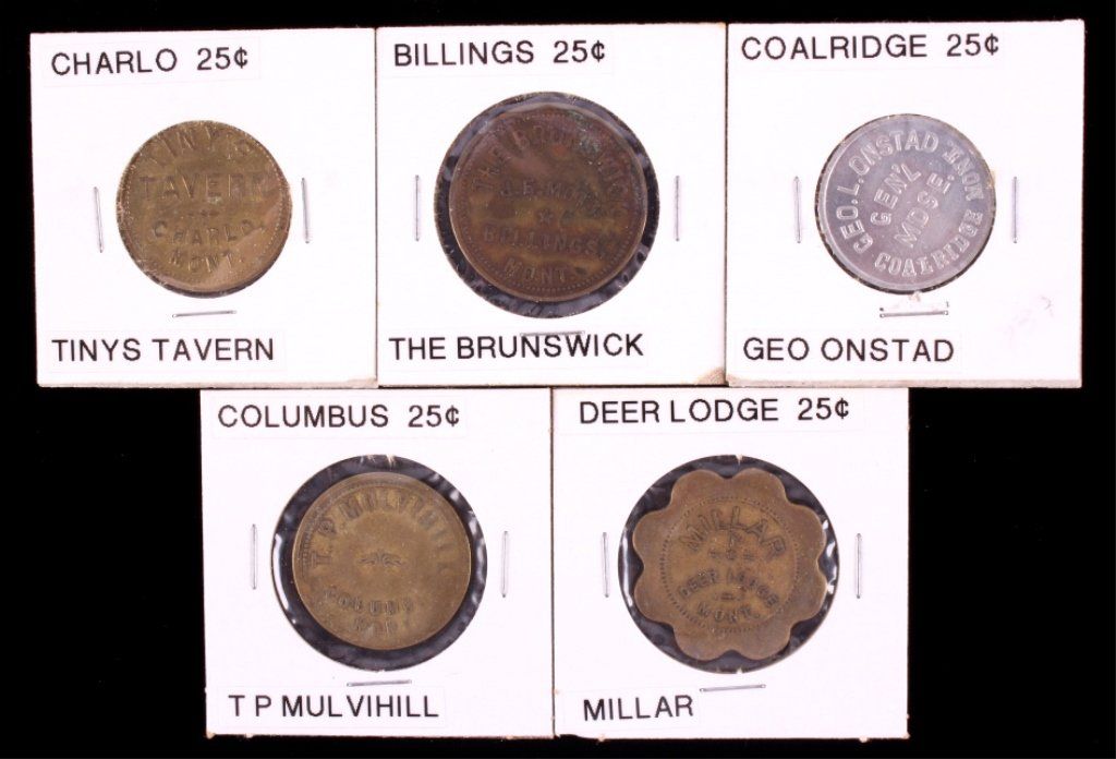 This lot includes 5 Montana trade tokens. This set contains tokens are all 25¢ denomination. Highly sought after by collectors, these tokens were widely used in Montana in the late 1800's to the mid 1900's. Tokens were often given as "change" when purchasing a beer or shot of whiskey in bars, saloons, and billiard halls. Each of the tokens is in very good condition.
