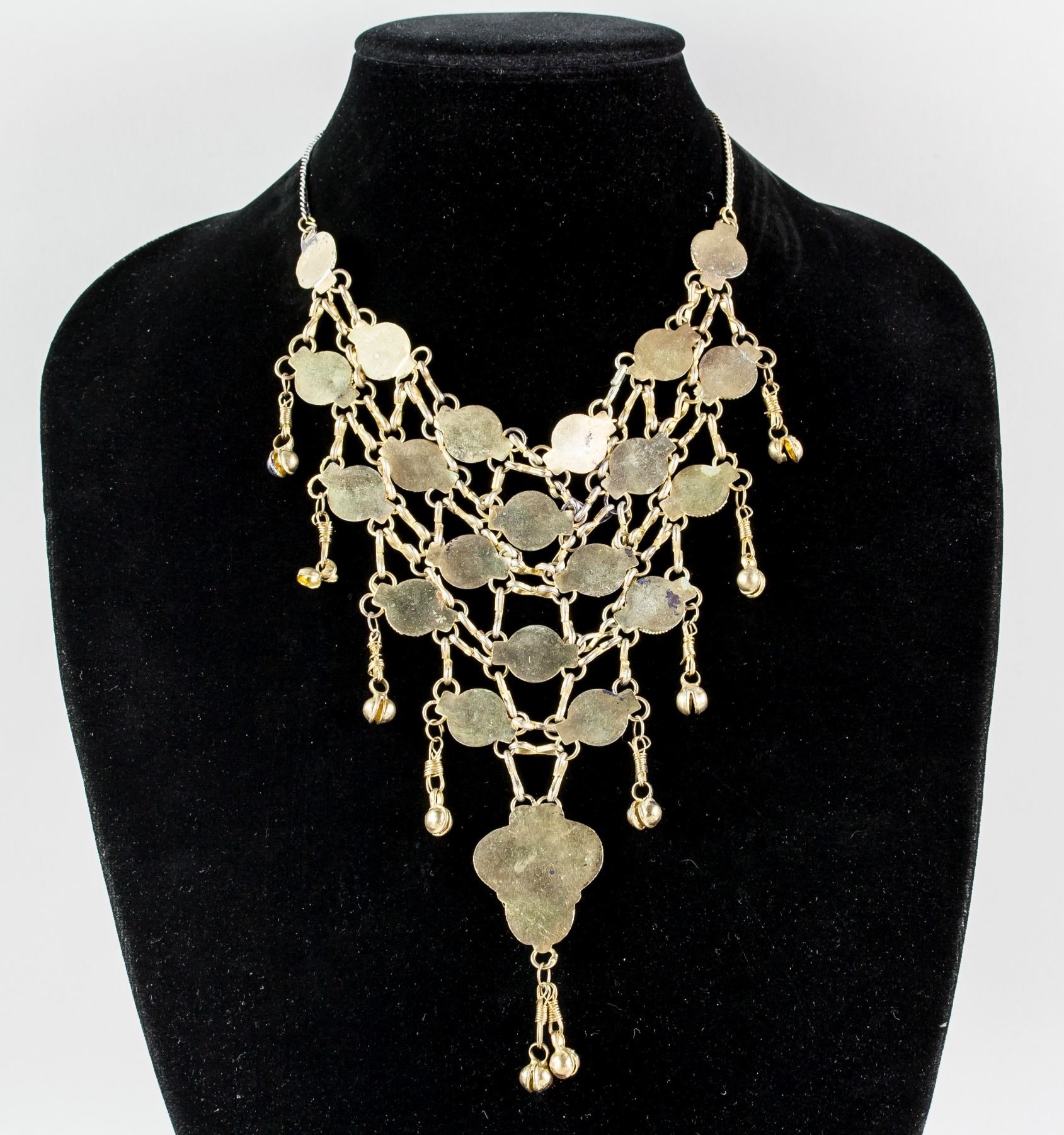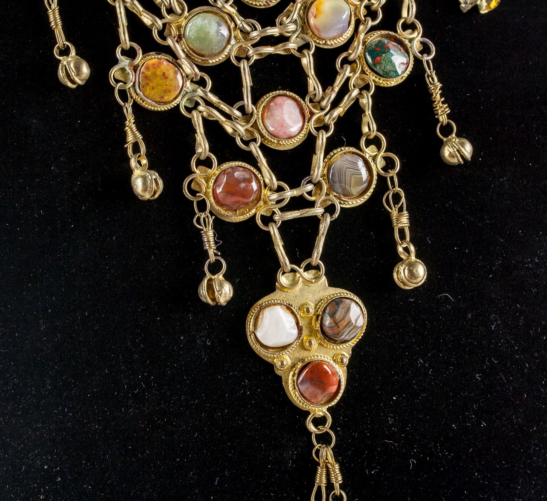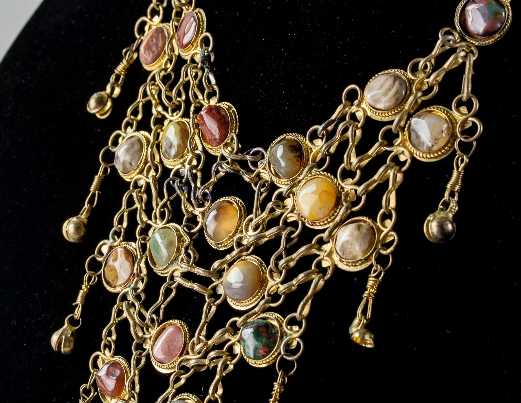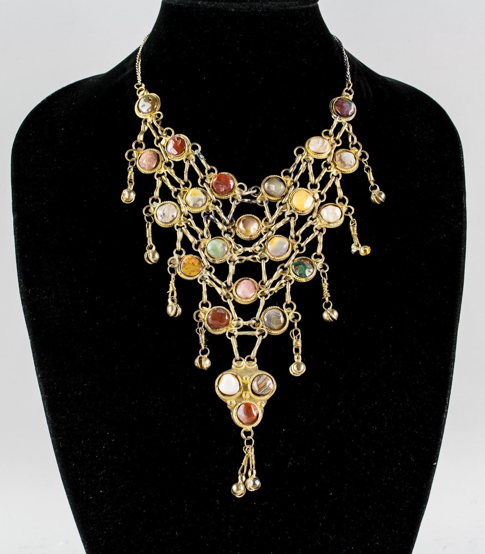 Antique gold colored necklace set with assorted cut stones. 34 cm, 91 grams