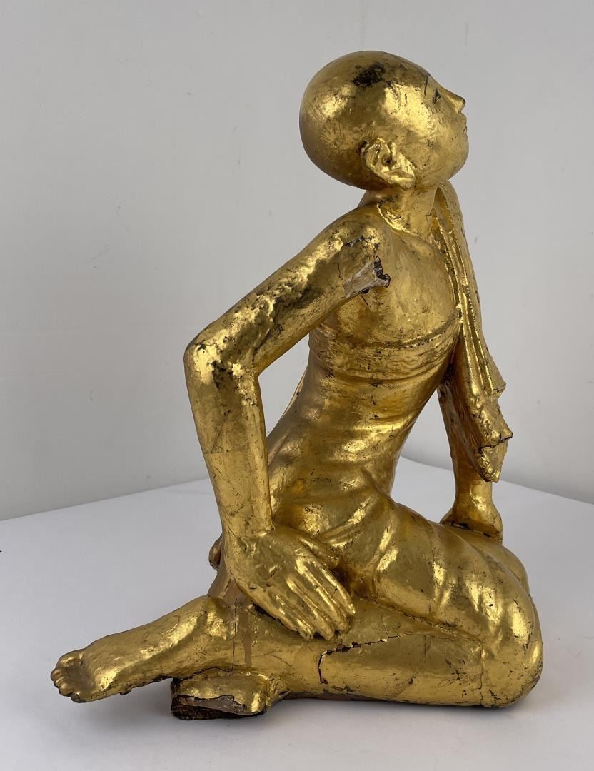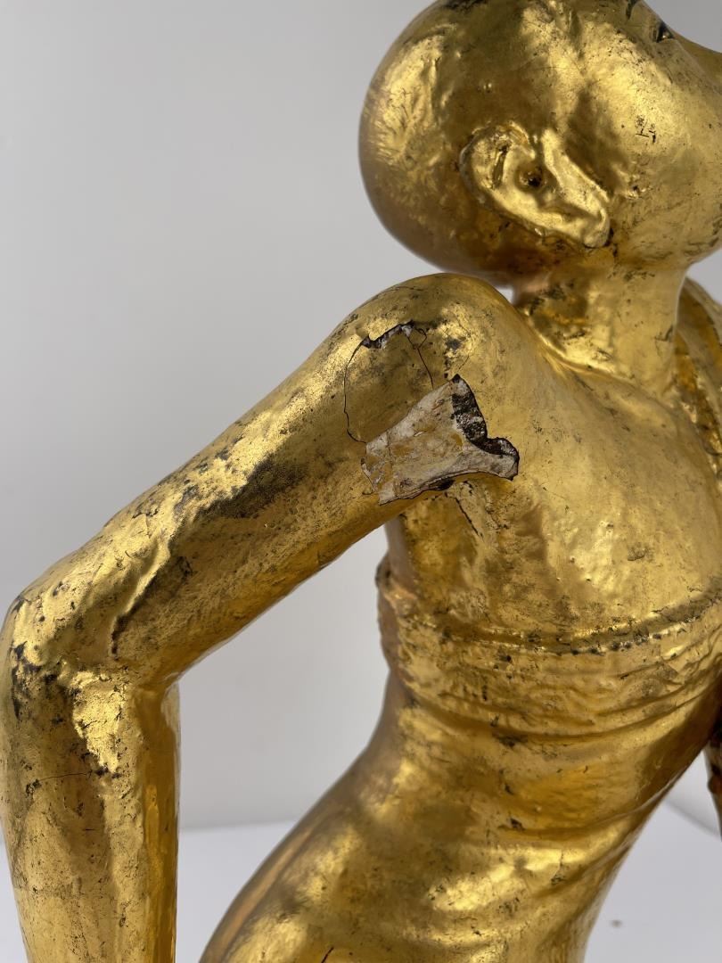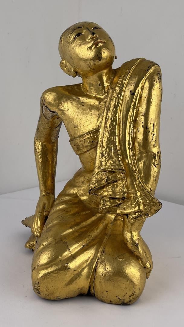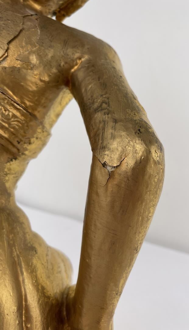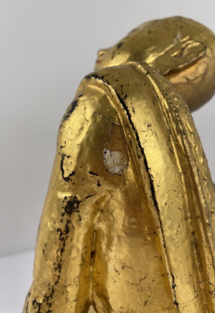 Gold Gilt and Lacquer over wood. 17 1/2" tall, 12 3/8" long.