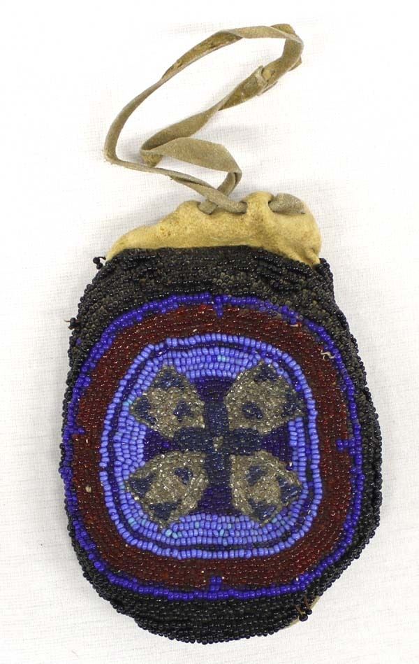 Antique Native American Beaded Leather Pouch, measures 4'' x 6'', drawstring closure, some loose beads
