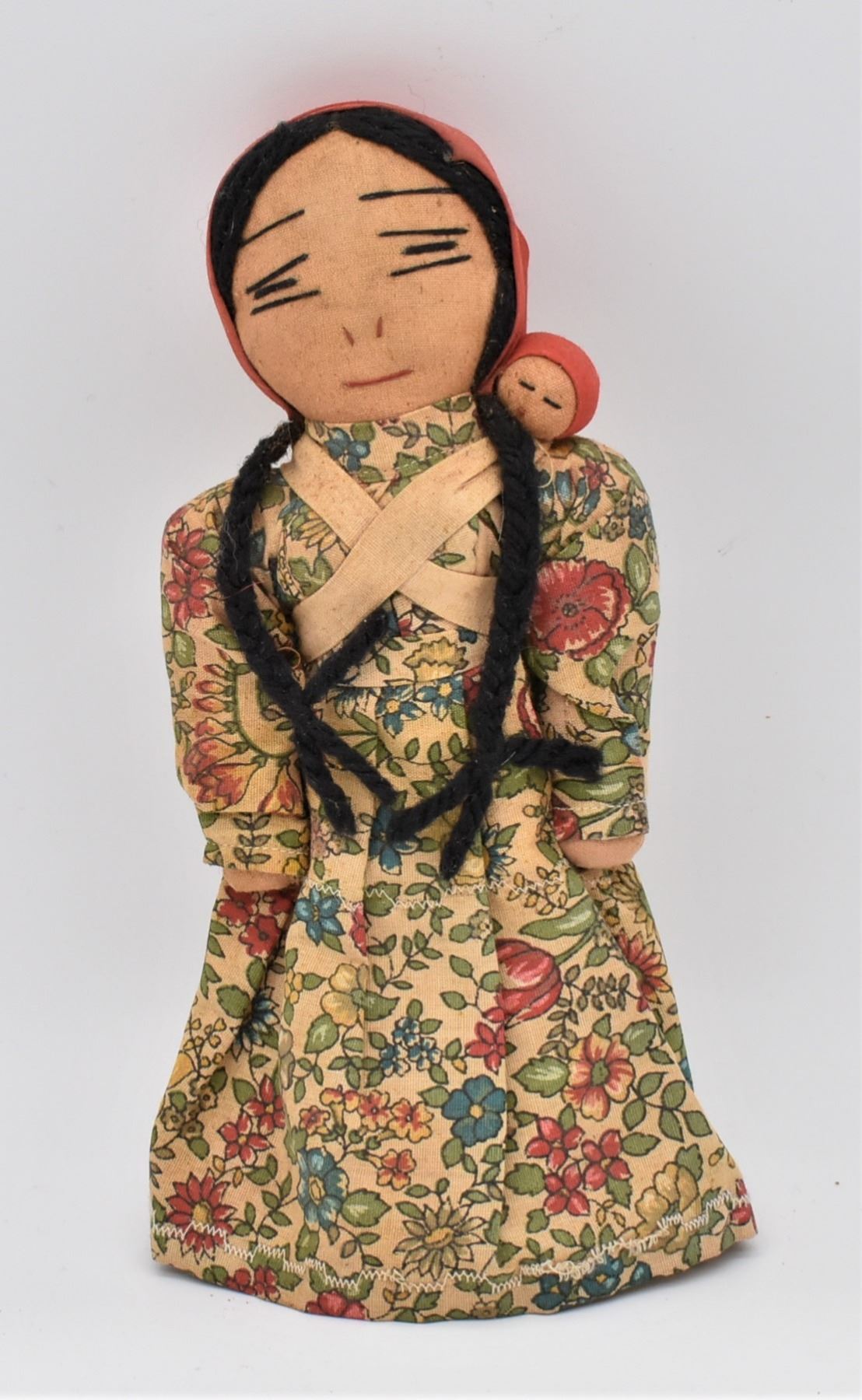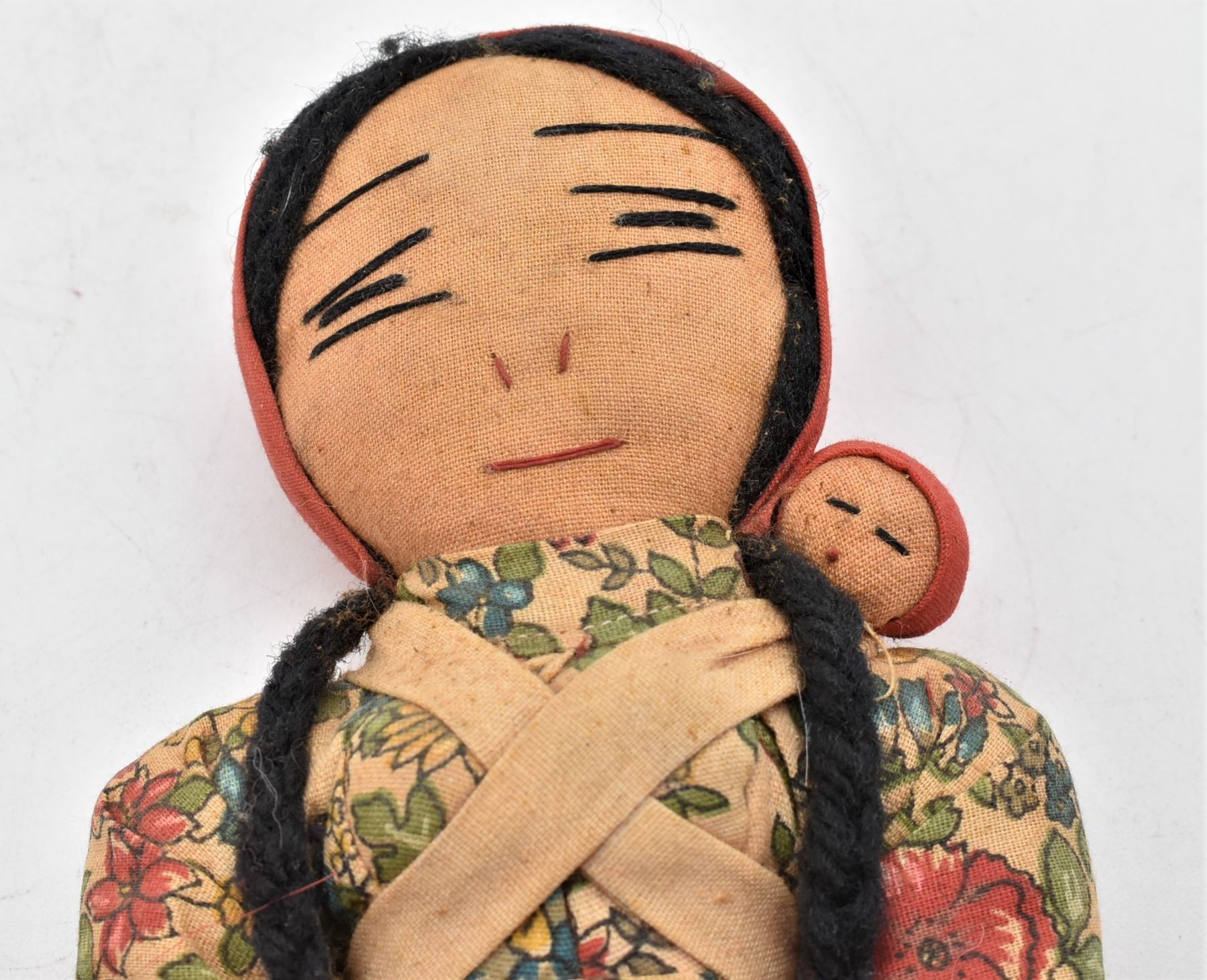 Antique Native American Navajo Cloth Doll with Baby, measures 4'' x 10'', Sweet, hand sewn face