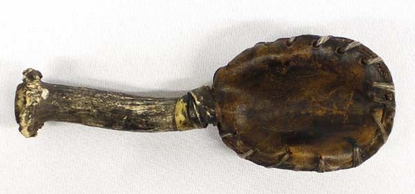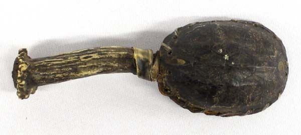 Antique Native American Rattle, handle is a deer antler, measures 6''L x 2''W