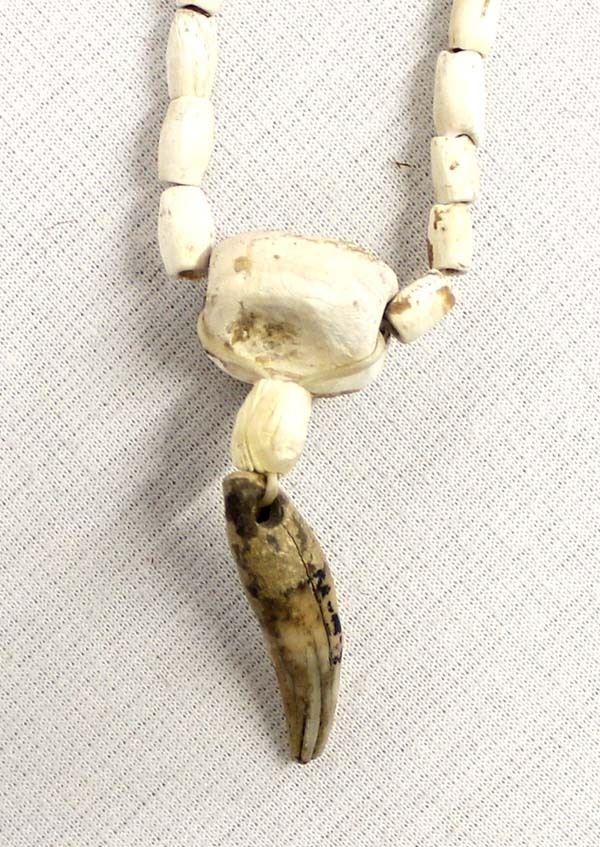 Antique Native American Shell Trade Bead Necklace, from Roanoke County, VA, necklace measures 29''L, tooth pendant measures 2''L