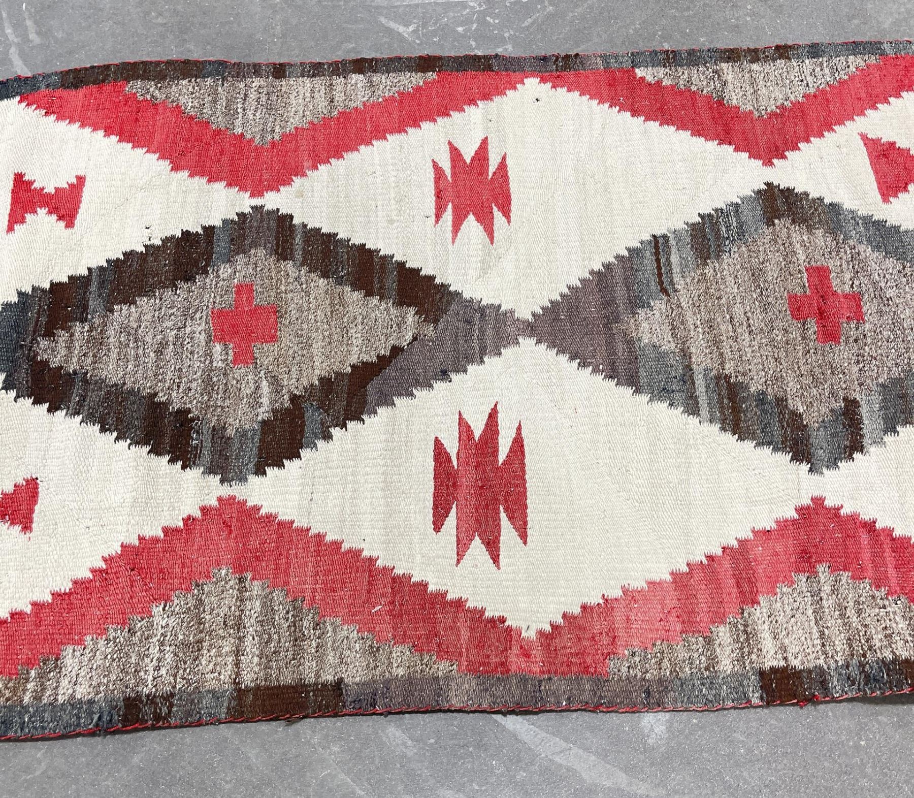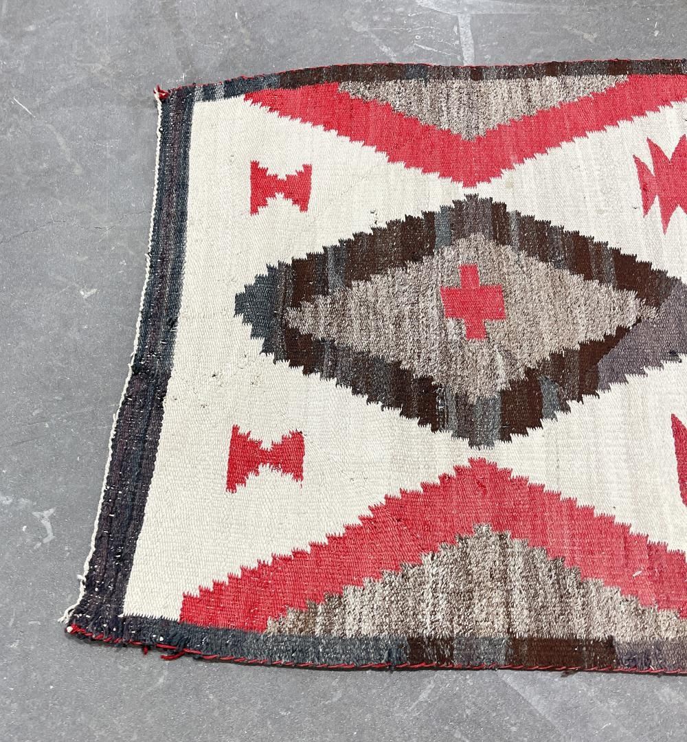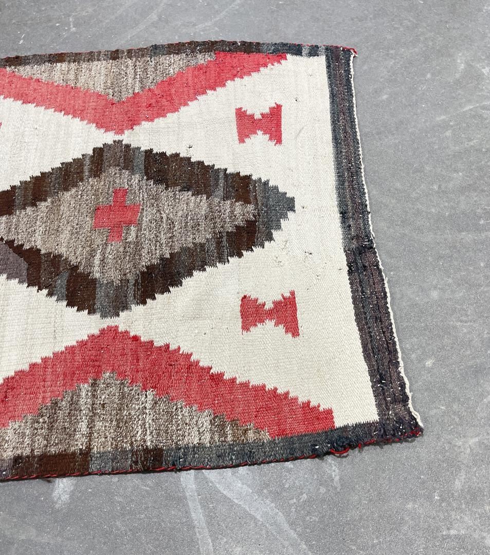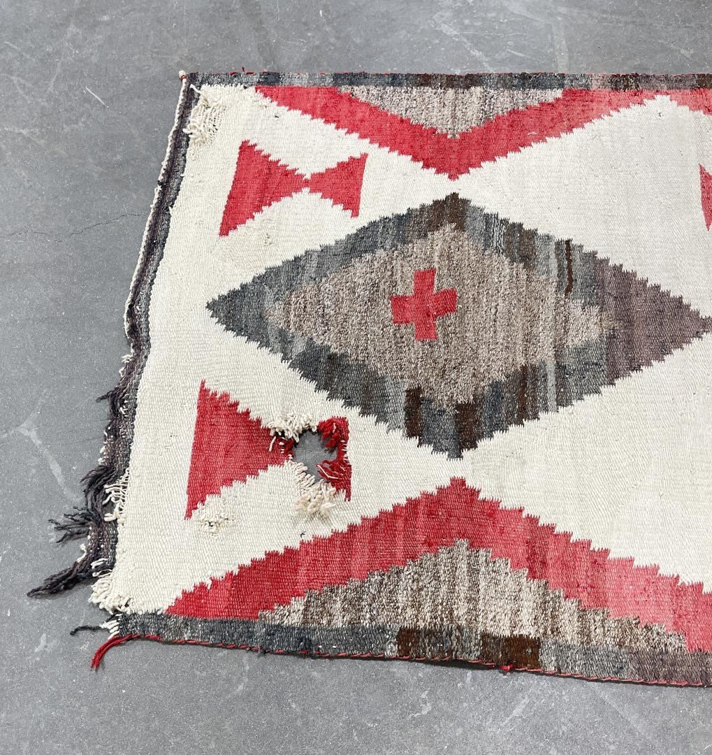 Nice old rug. Has a hole as shown. 34.25" by 58".