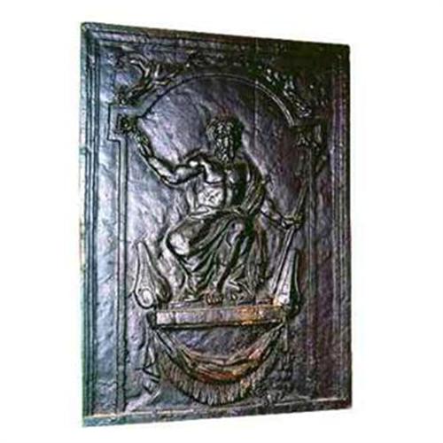 One totally great late 18th or very early 19th century cast iron Fireback. It has a full body relief of Neptune. The detail is impeccable and the mythological subject matter will just give you goose bumps. The Fireback is so well done and the color so rich, wonderful and rare. Never over painted ? it is in its original condition and in a remarkable state of preservation. It is great art work deserving to be framed or displayed in a major fireplace hearth. It measures 25 ½?h x 10 ½?w x ¾? deep. I may add that this Fireback weighs approx 50 ? 70 pounds. I can?t lift it by myself ? so I can?t tell you the exact weight!