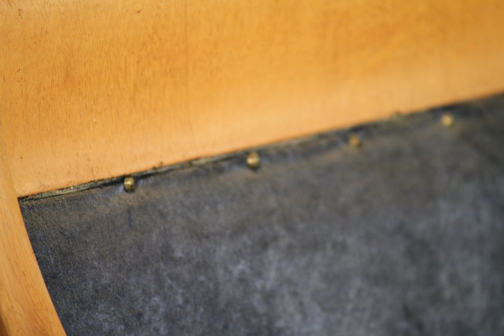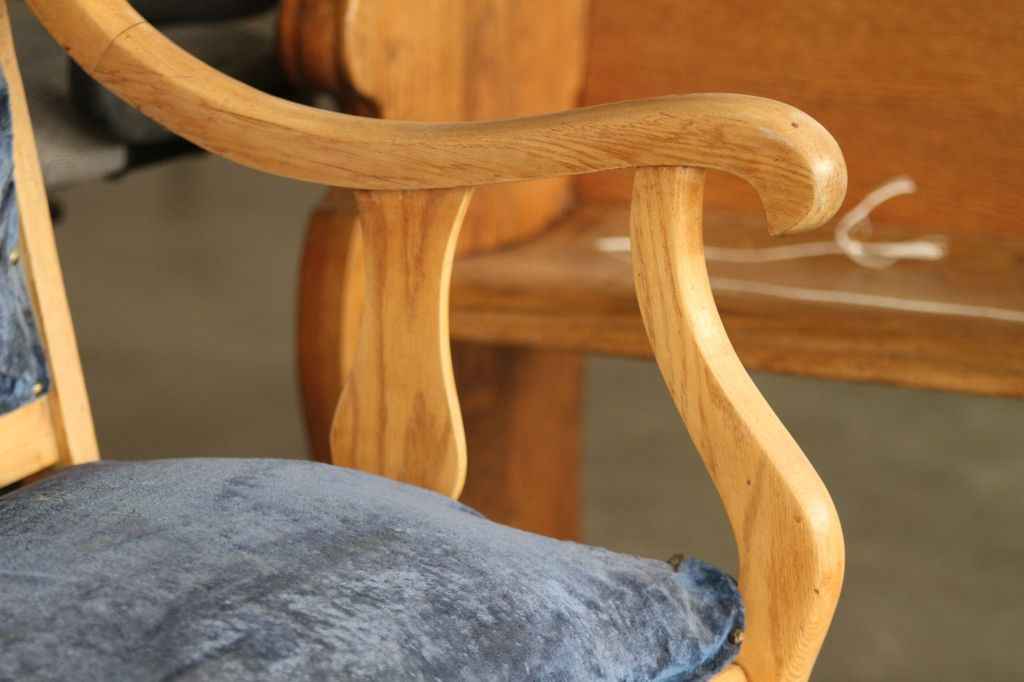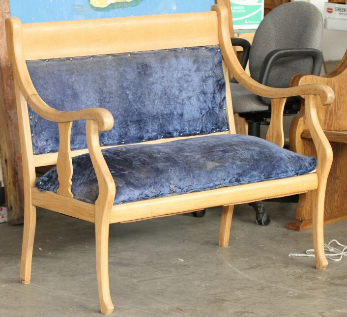 Antique Oak Bench Made with quarter-sawn antique oak. Has modern upholstery. Meausures 26"d x 43"w x 39"h.
