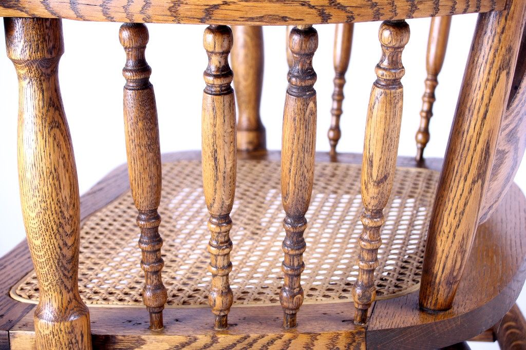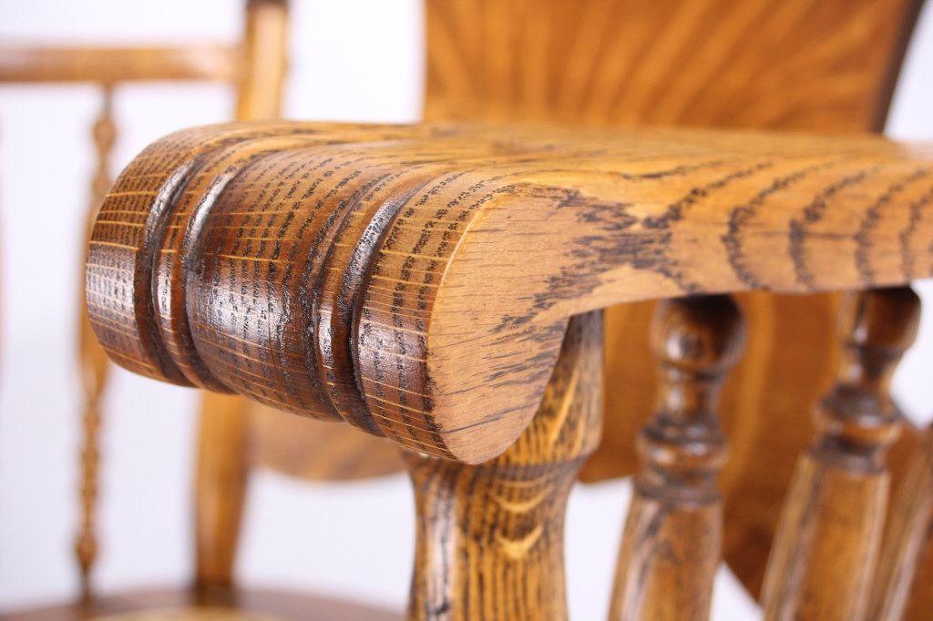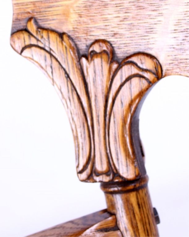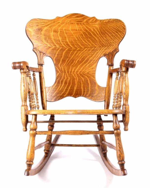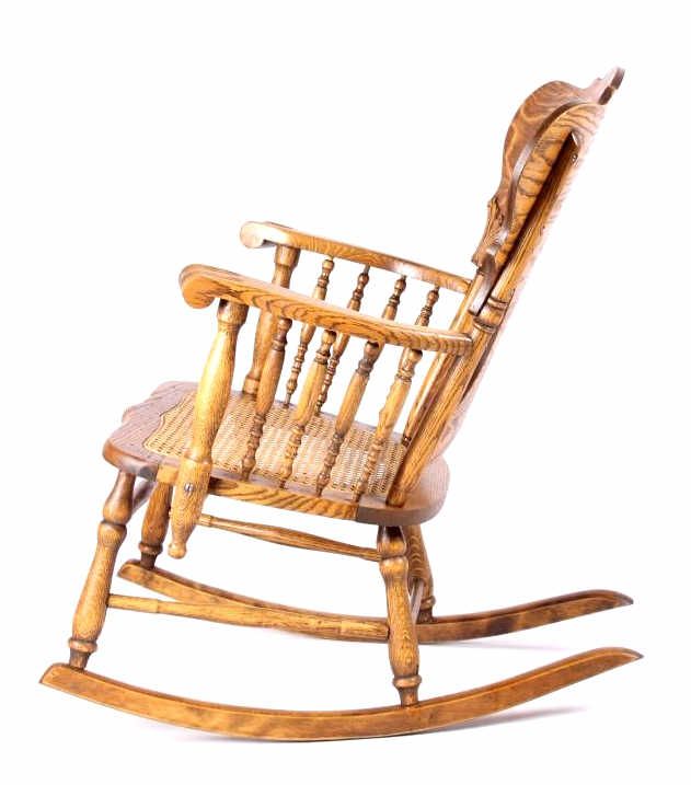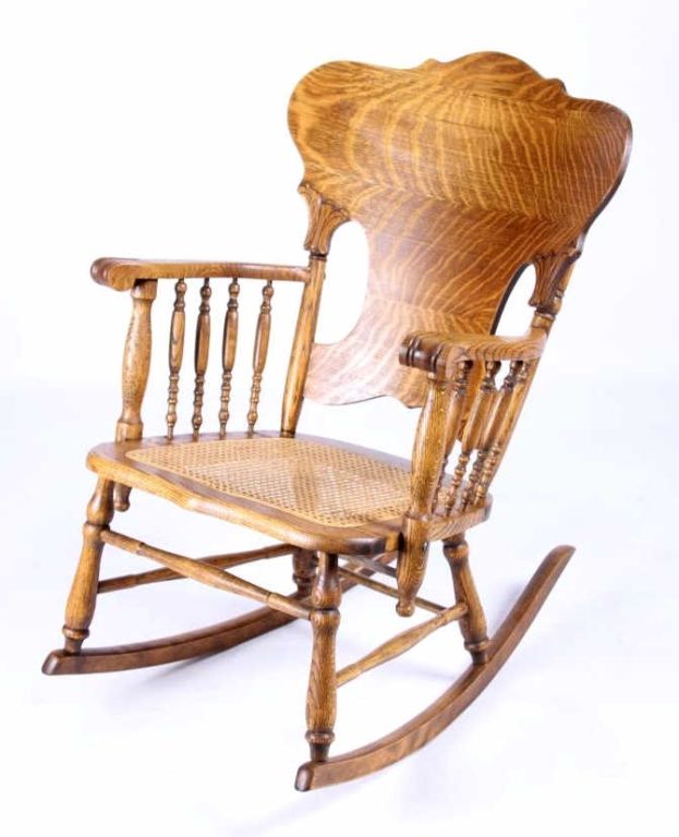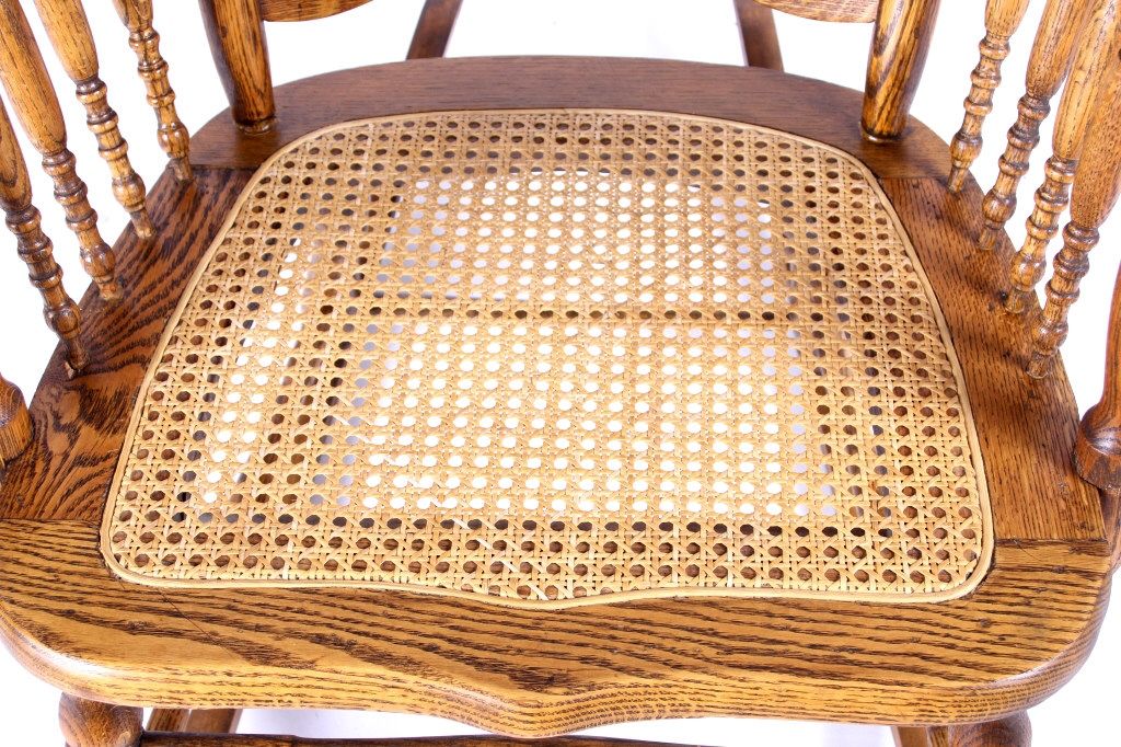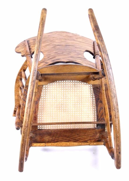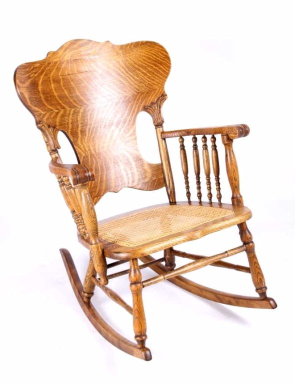 This is a great condition original antique solid oak rocking chair. The chair has cane seating and carved accents. Measures 25.5"x32" and 34.5" tall.