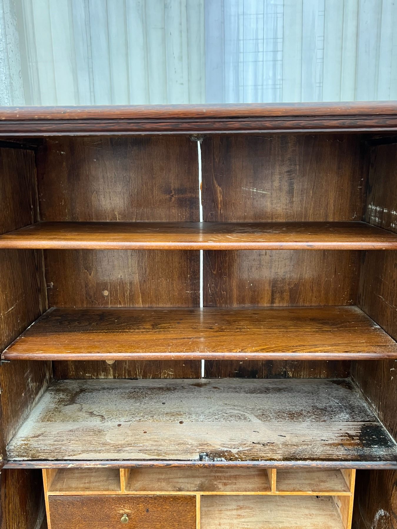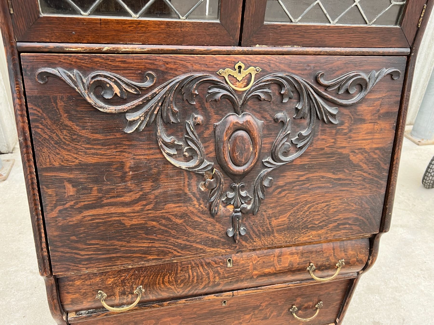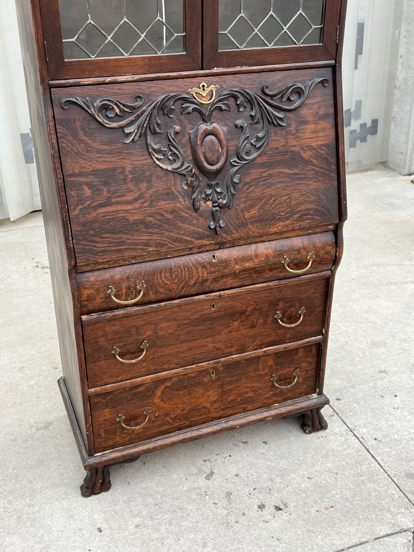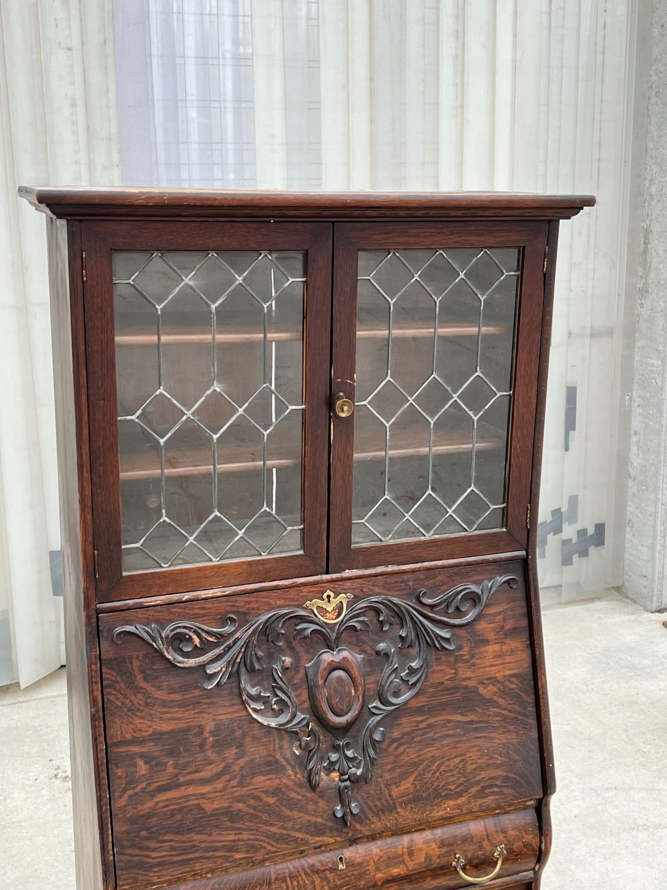Antique Oak Drop Front Secretary Desk / Cabinet - Approx: 32x16.5" & 67.5"T see all photos