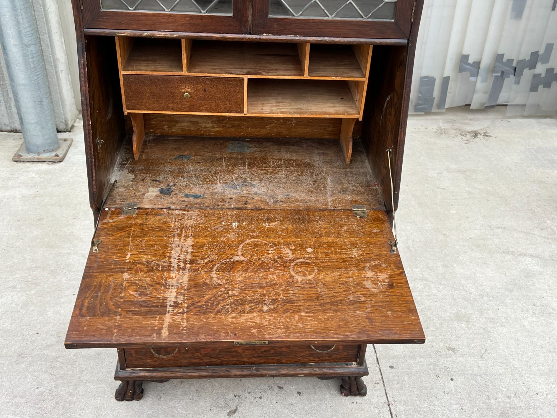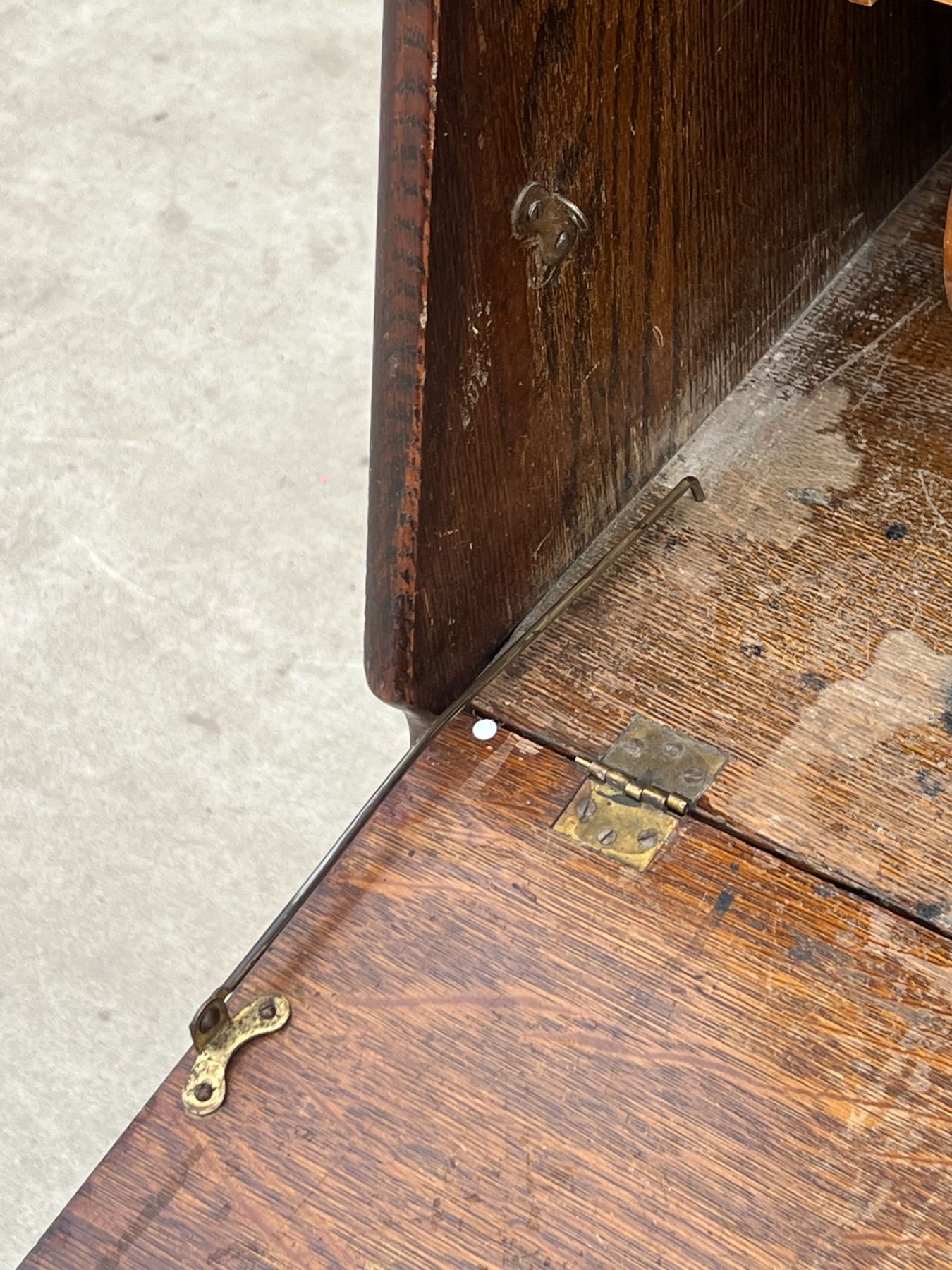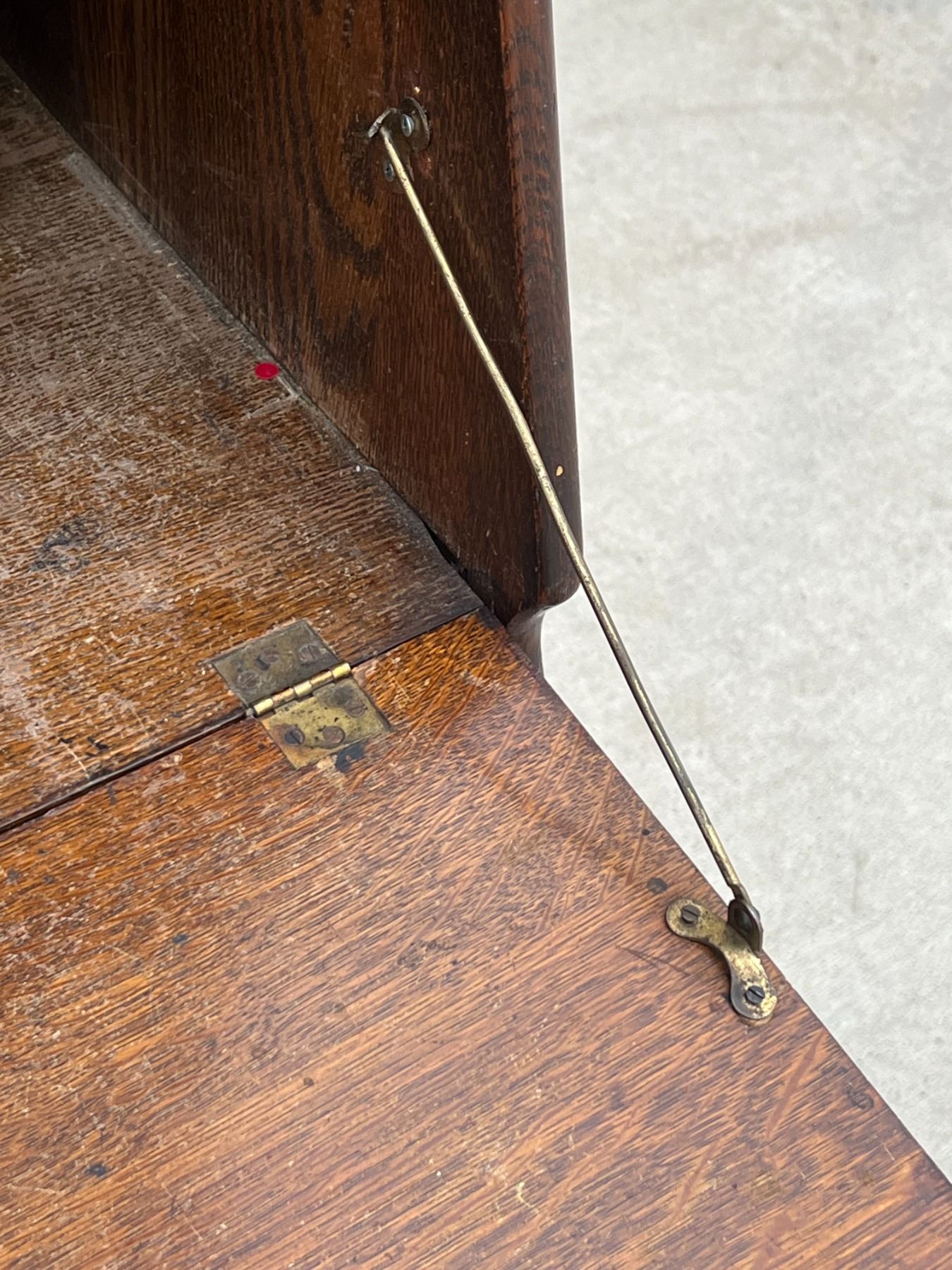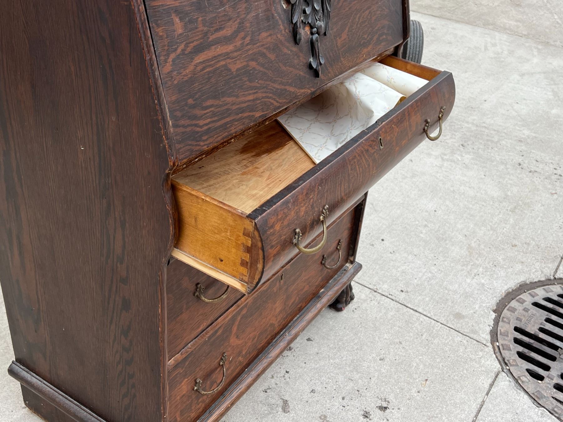 Antique Oak Drop Front Secretary Desk / Cabinet - Approx: 32x16.5" & 67.5"T see all photos