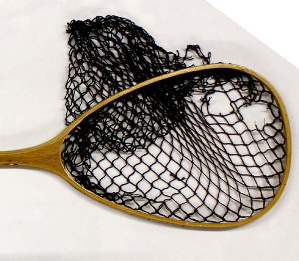Antique Oak Landing Net, measures 63''L x 11''W x .75''Thick, netting is torn