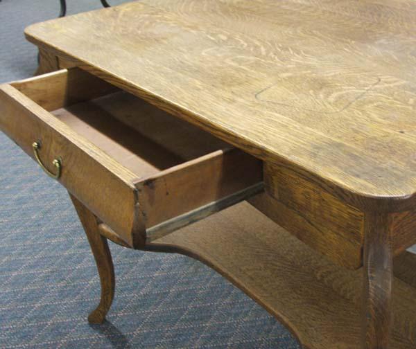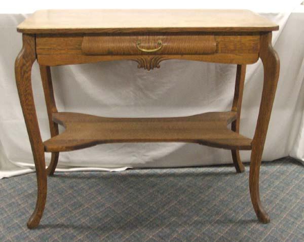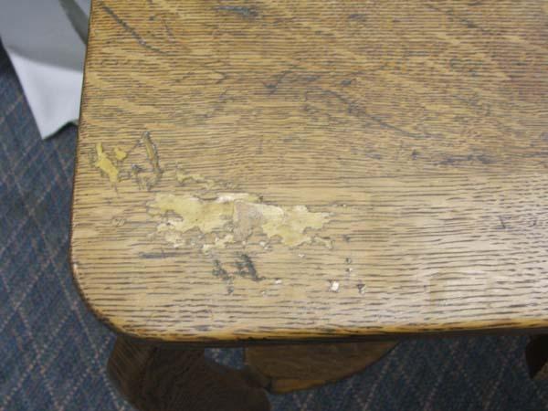 Antique Oak Library Table. One leg is loose and needs to be repaired Must be Picked UP. Measures 30''x37''x25.5'' MUST BE PICKED UP