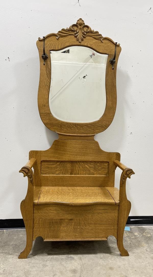 Very nice piece. Has been fully restored and is ready to go into your home. Mirror is easily removable if you desire to use each piece individually. 78 1/2" tall, 35" long, 16" deep.