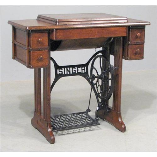 <tr><td>Title:Antique Oak Singer Sewing Machine with Wrought</td></tr>
