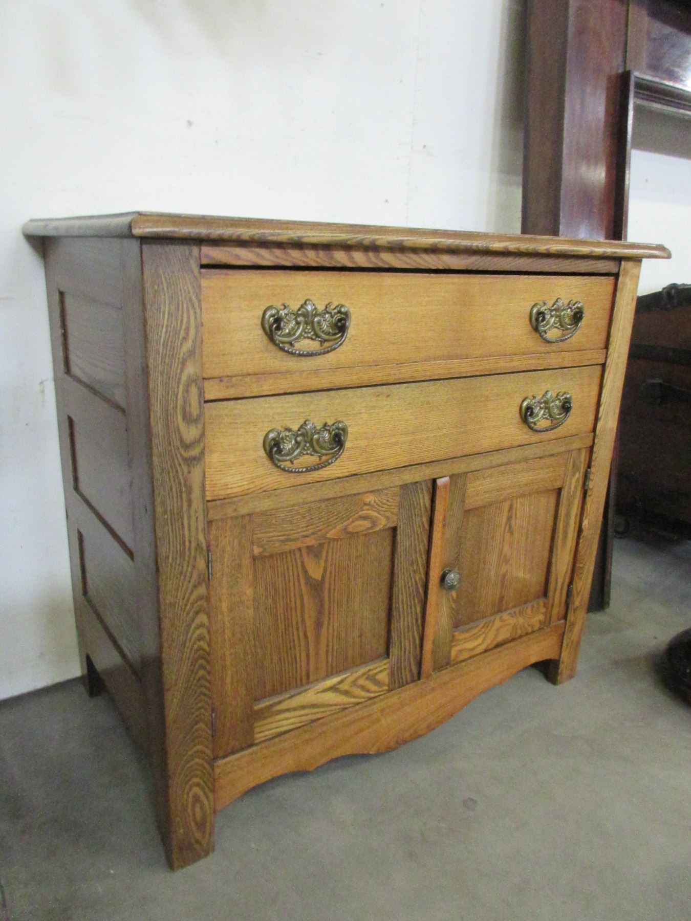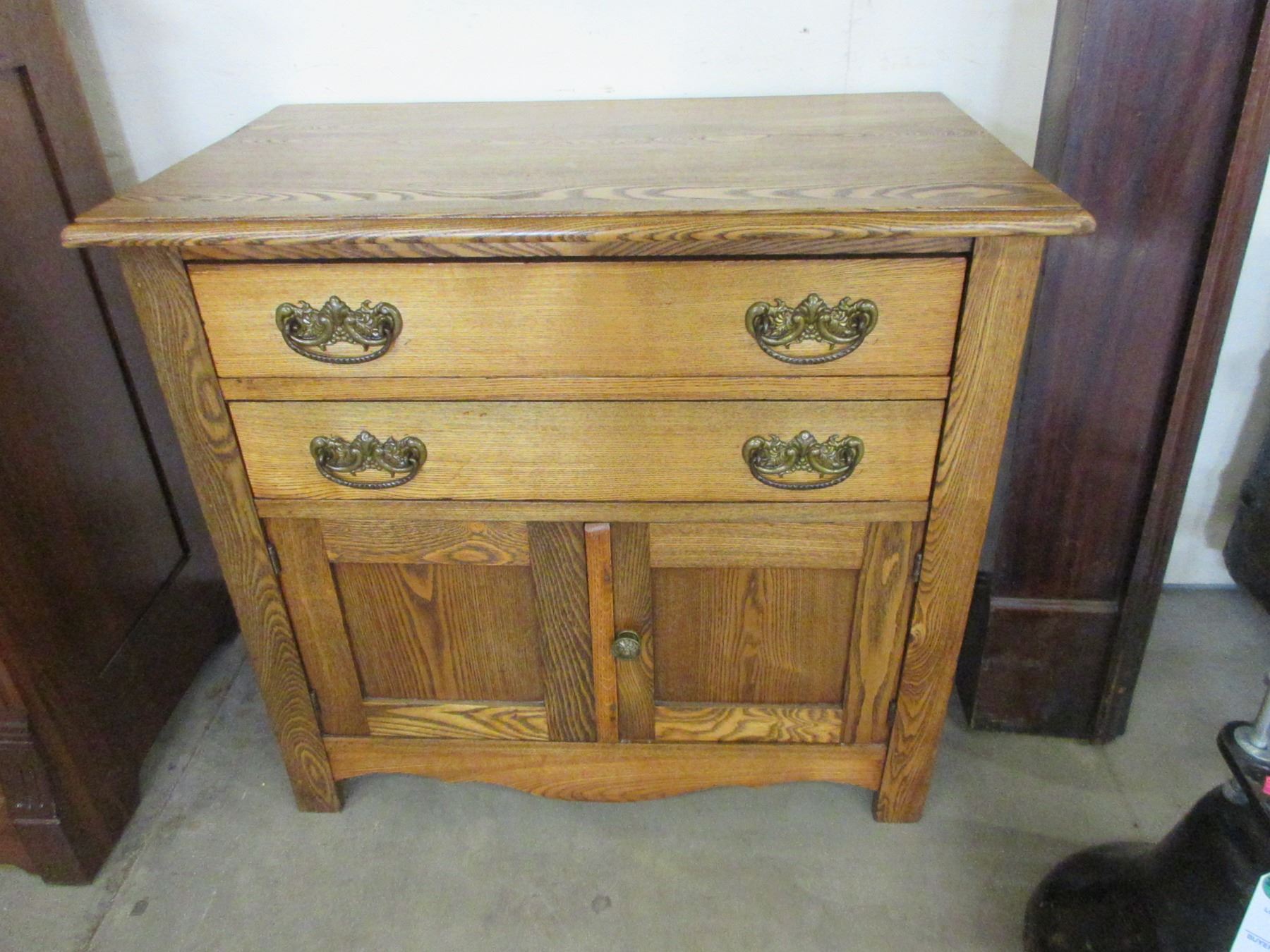 Antique Oak Washstand- Original Hardware- Refinished- 28"H X 30" X 18"D