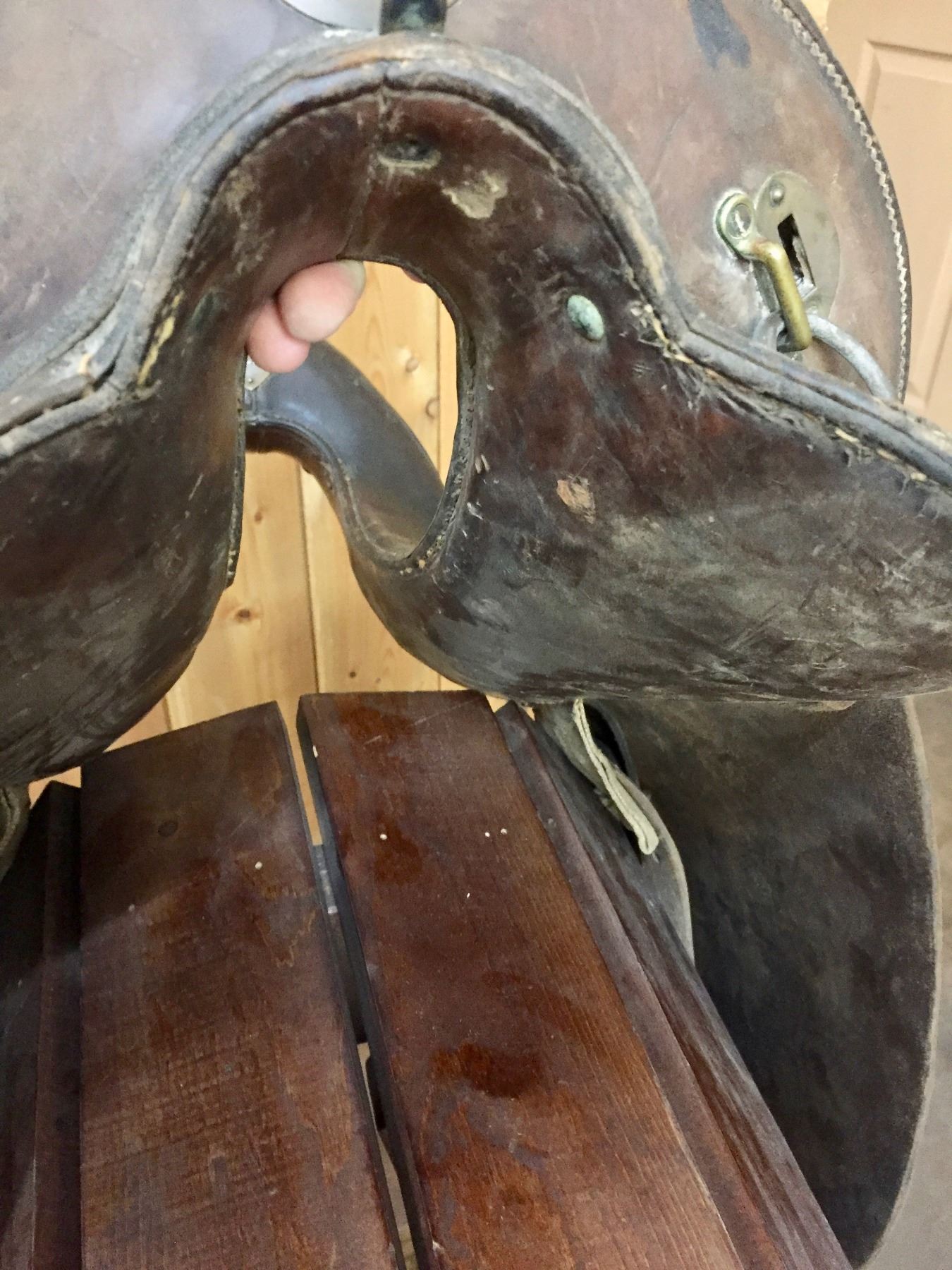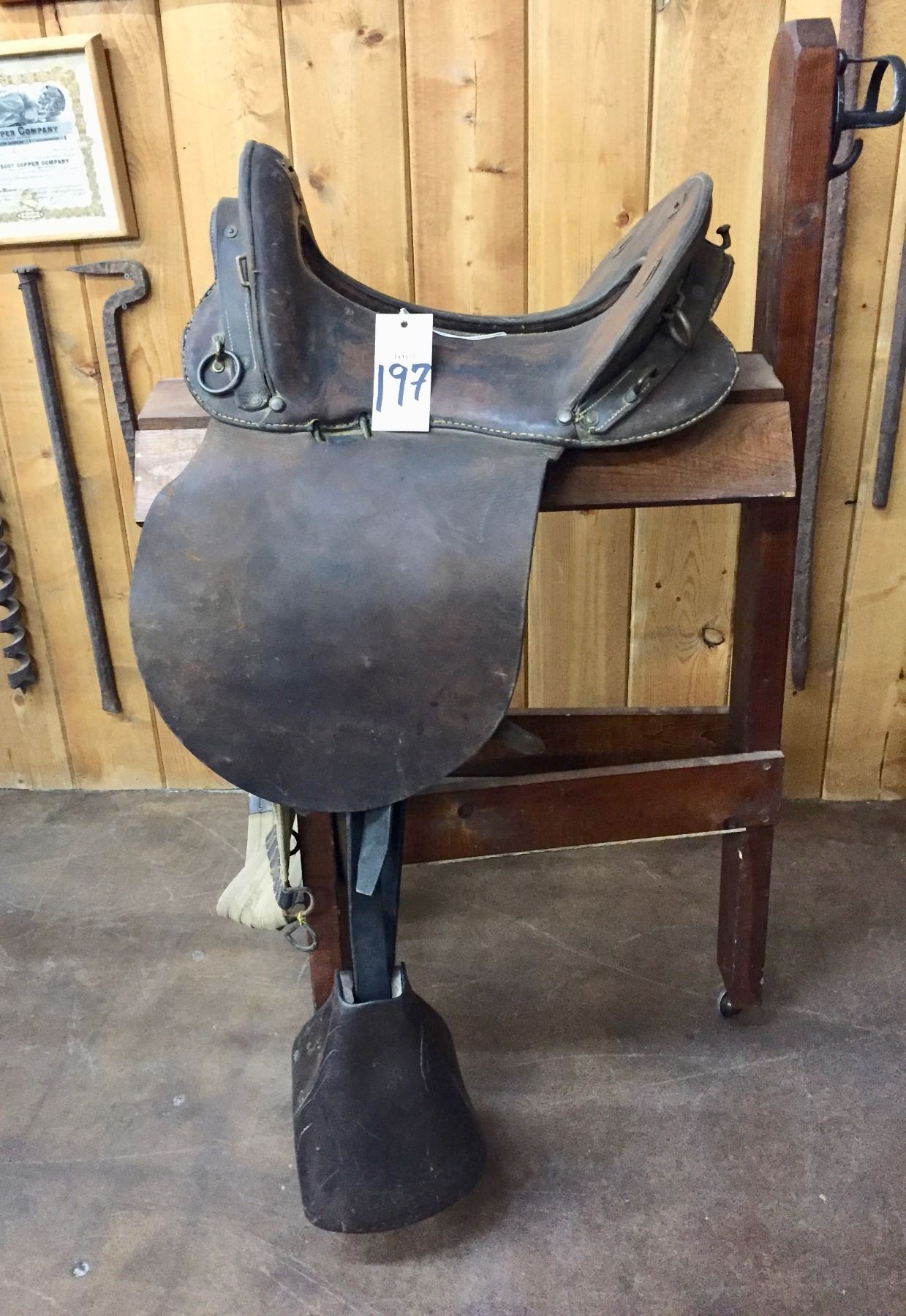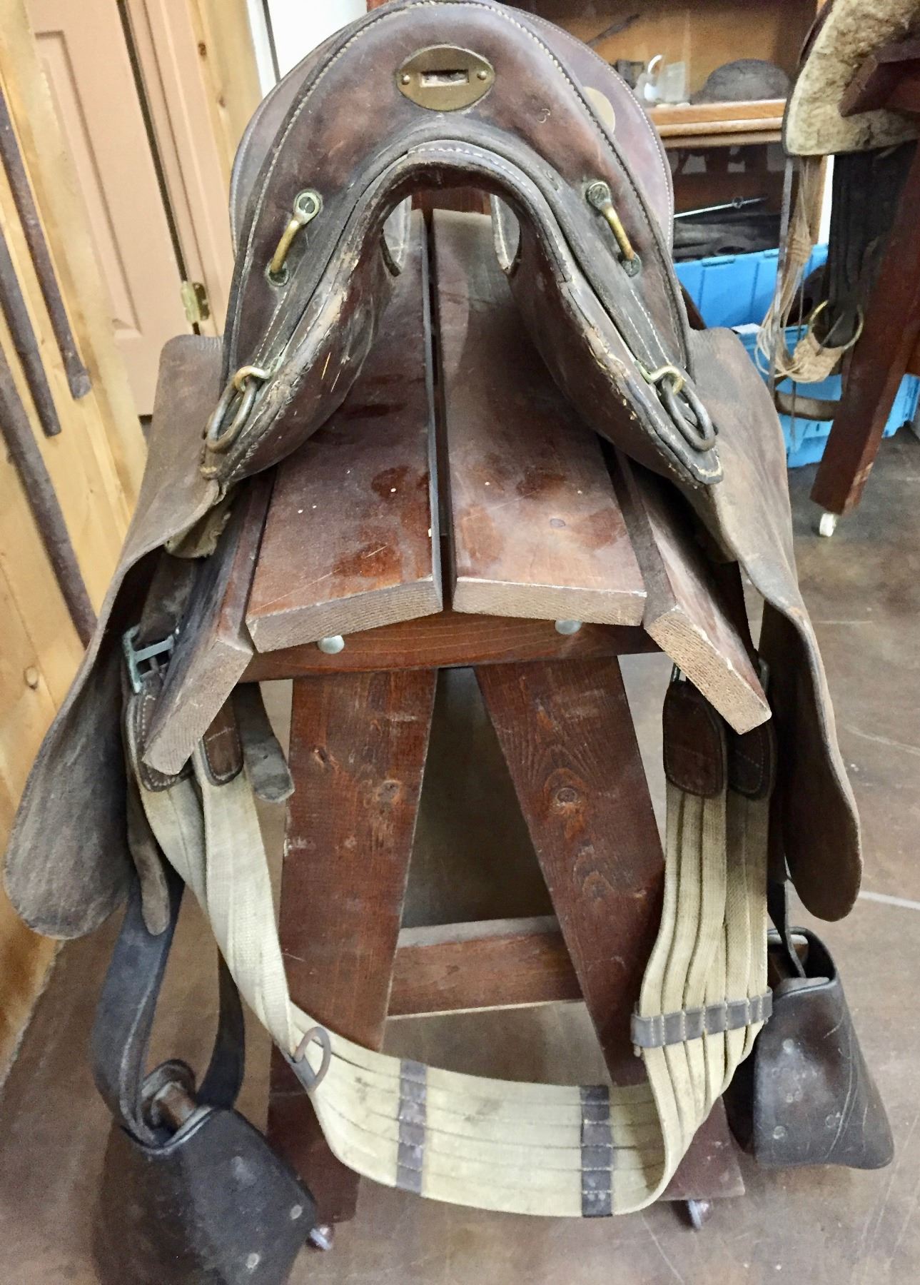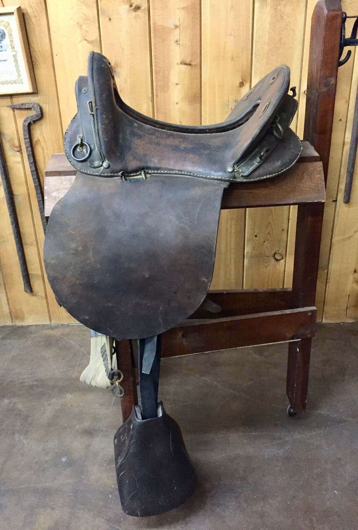 Description: Offered for sale in this lot is an antique Officer’s style McClellan saddle, The McClellan saddle was a riding saddle designed by George B. McClellan, a career Army officer in the U.S. Army, after his tour of Europe as the member of a military commission charged with studying the latest developments in engineer and cavalry forces including field equipment. Based on his observations, McClellan proposed a design that was adopted by the US Army in 1859. The McClellan saddle was a success and continued in use in various forms until the US Army's last horse cavalry and horse artillery was dismounted in World War II. Maker: Unknown. Approx. Age: Antique, early 1900s. Size: 11-1/2” seat. Condition: Pretty good for its age, normal and use wear expected. Please look closely at the pictures - they are an important part of our description. Shipping: There will be a $10 handling / packaging fee for shipping this lot. The actual cost of postage will be added on top of that.