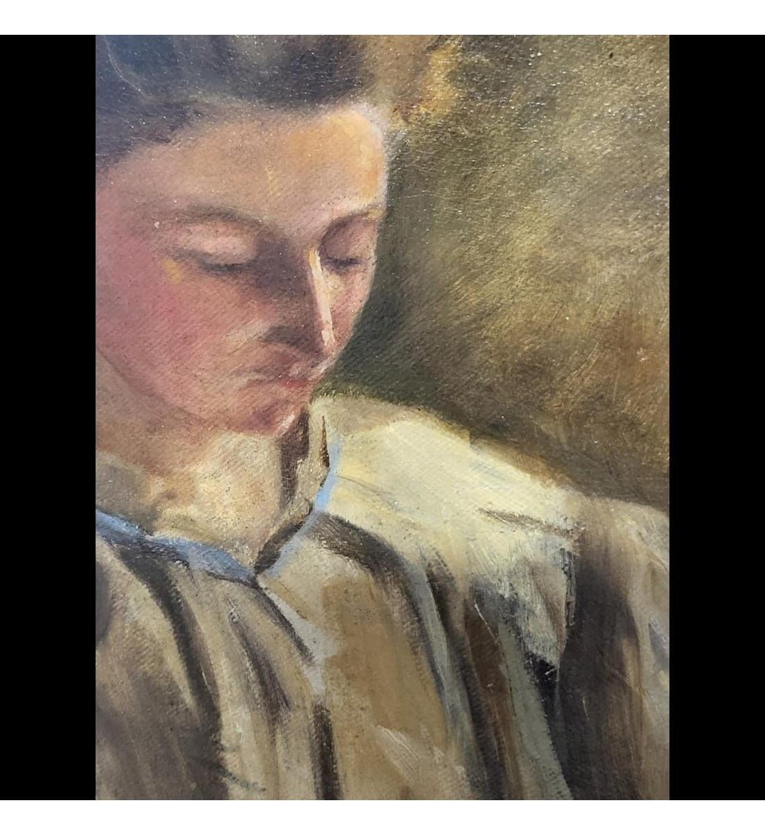 Antique Oil On Canvas Figural Painting Unsigned, Possibly 19th Century