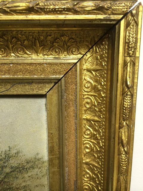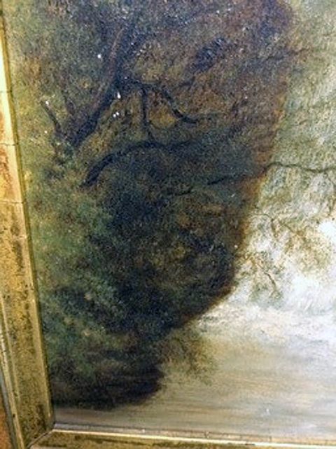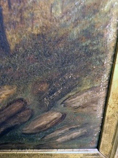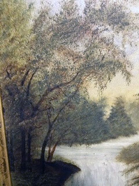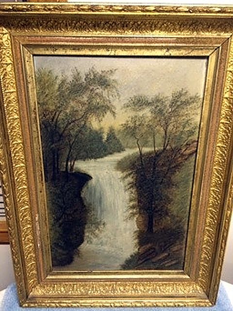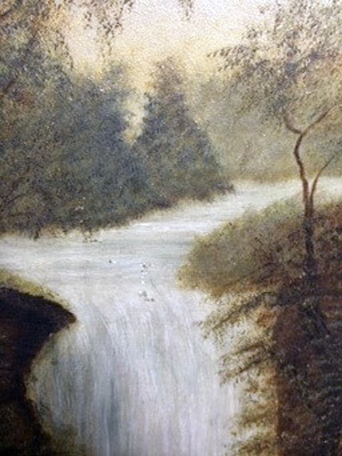 Well over 100 years old antique oil painting of waterfall, with antique gold gilt frame. This painting was attic stored and is being offered just the way we found them. Very nice painting for anyone who loves nautical / landscape themes.