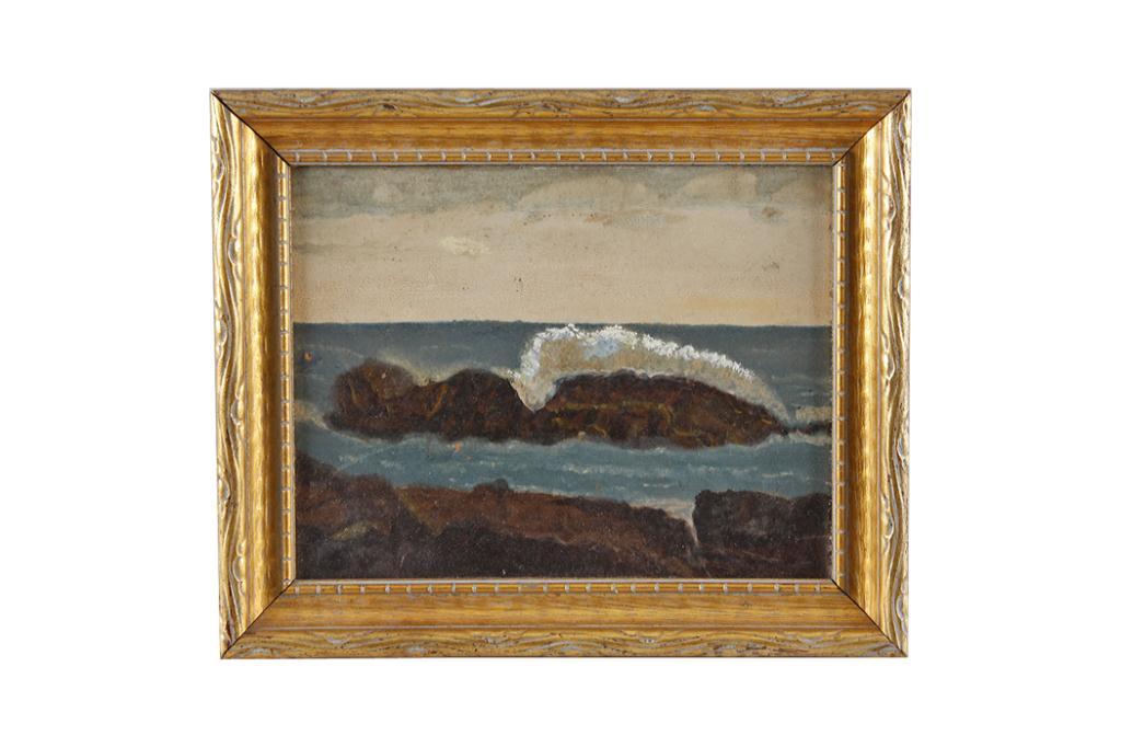 Antique Oil on Board Depicting a Seaside In original gold gilt frame, unsigned, early 20th century.In original gold gilt frame, unsigned, early 20th century.