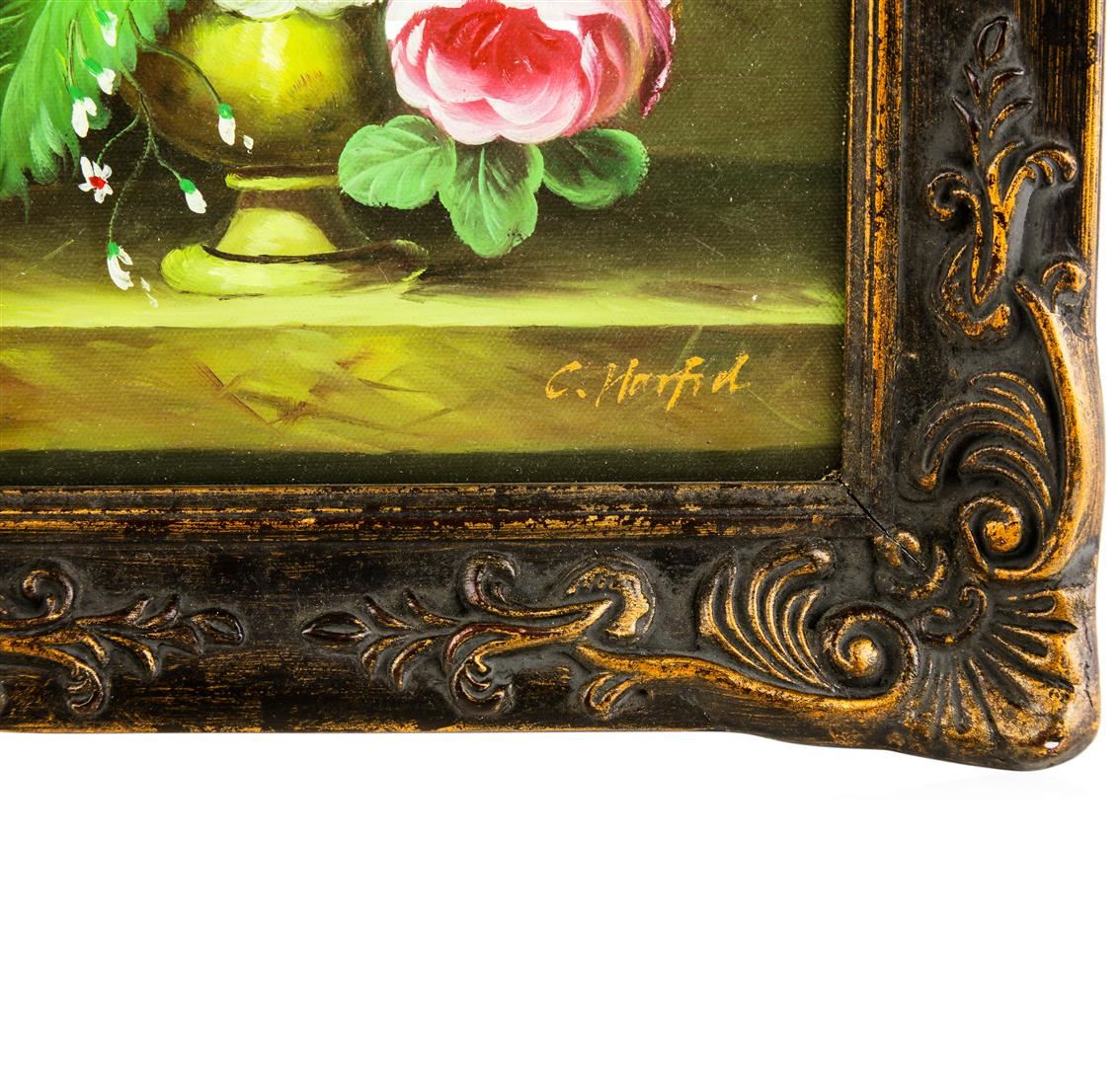 This is a beautiful small original oil painting with lovely frame. Signature is unknown. Subject is still life floral. Artwork measures 9.5" x 7.5". Frame measures 13" x 11".